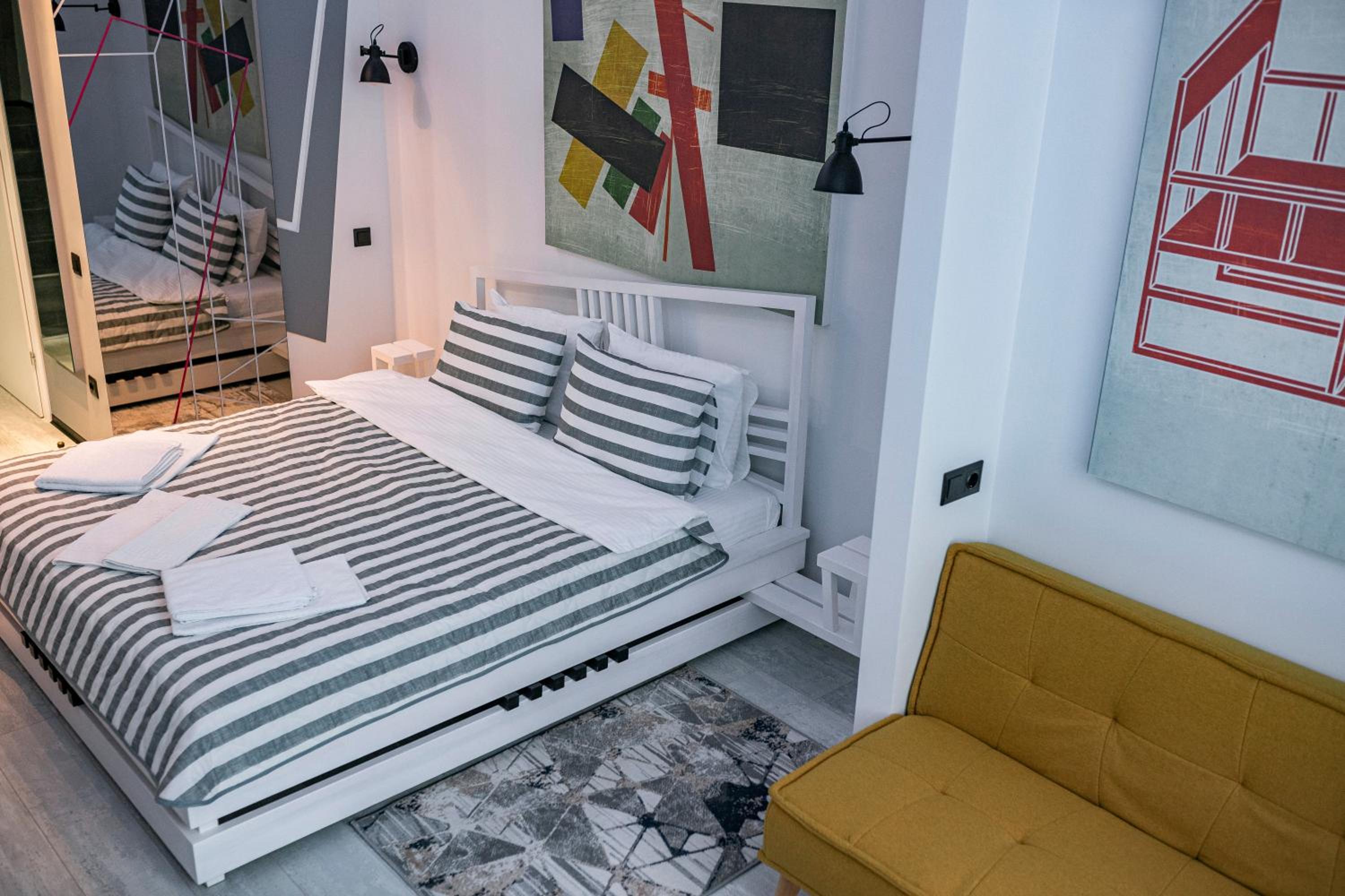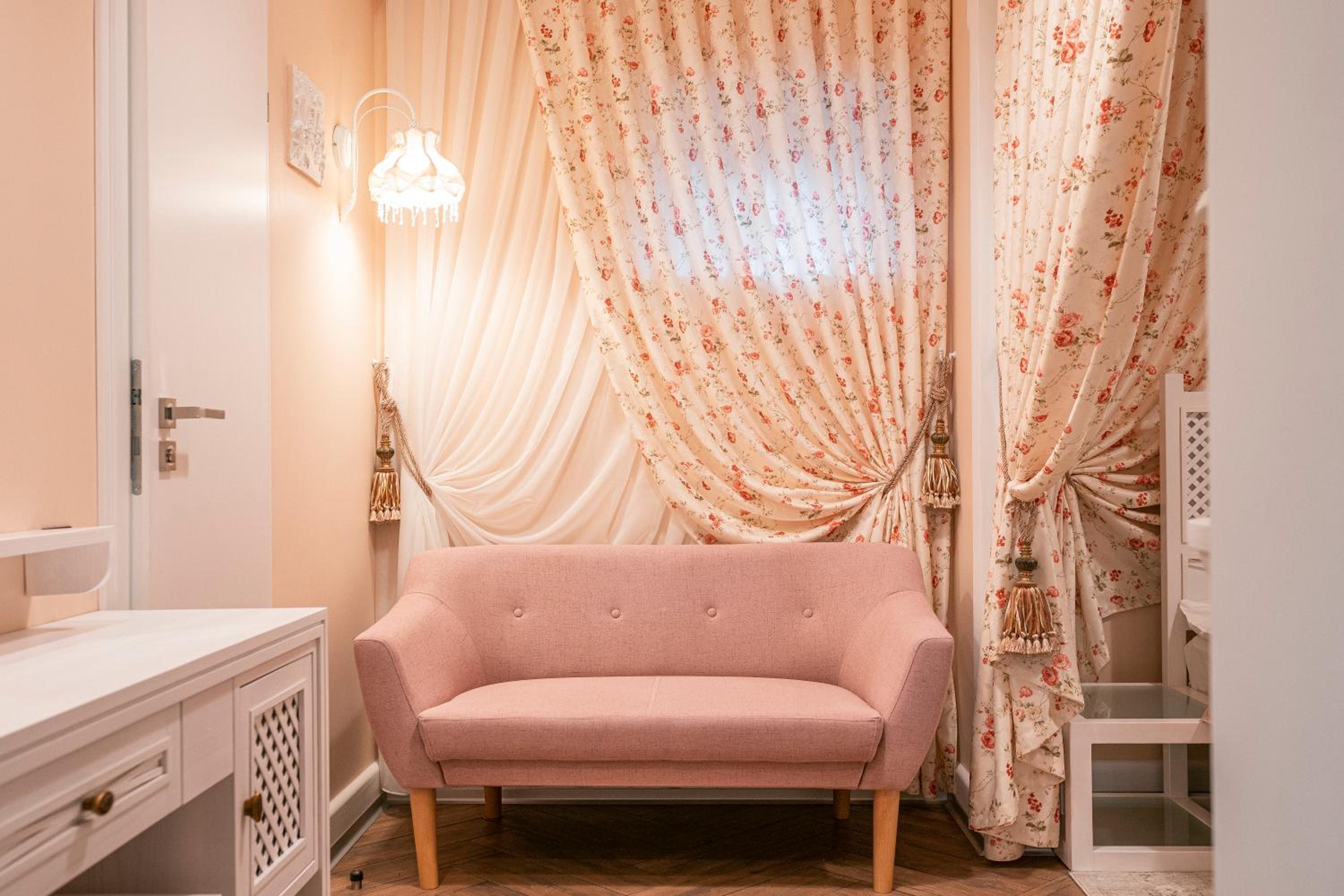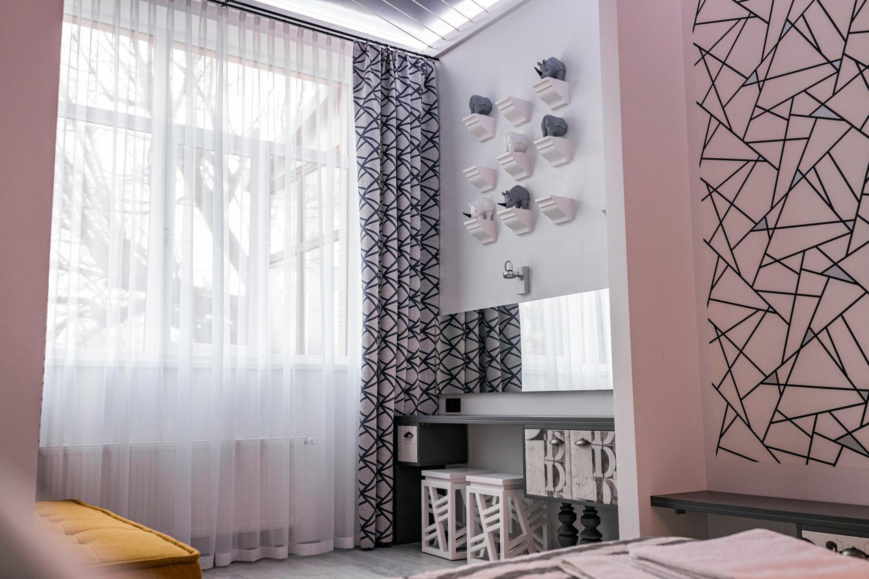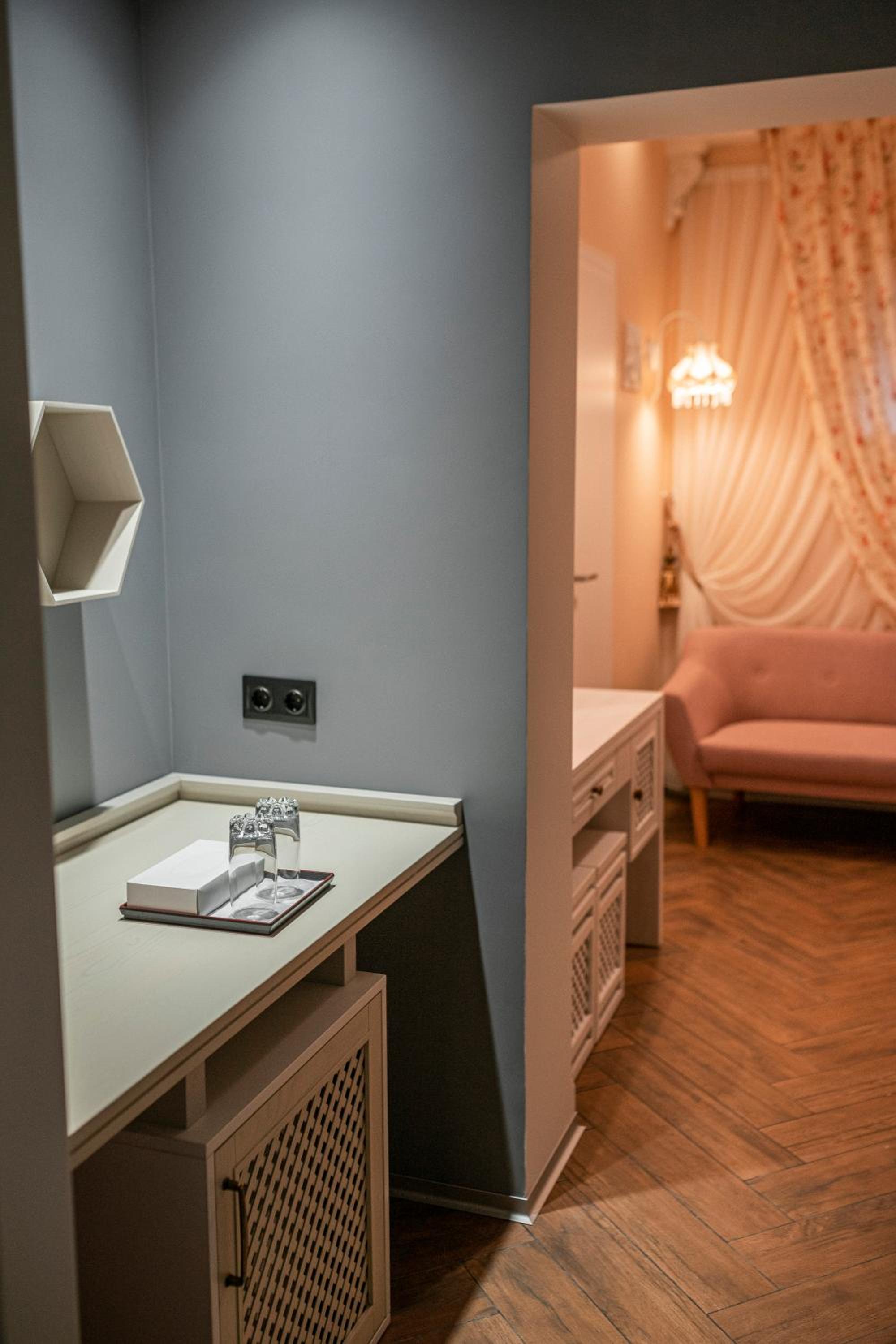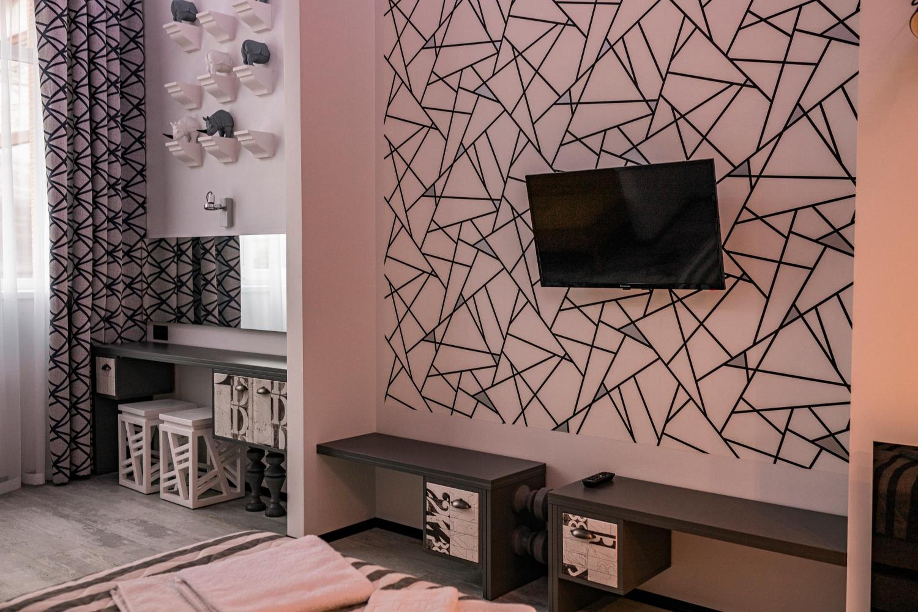 Le Каприз offers elegantly designed rooms with modern amenities, including flat-screen TVs and cozy bedding for a comfortable stay. Some rooms even feature convenient kitchenettes for added convenience during your visit.