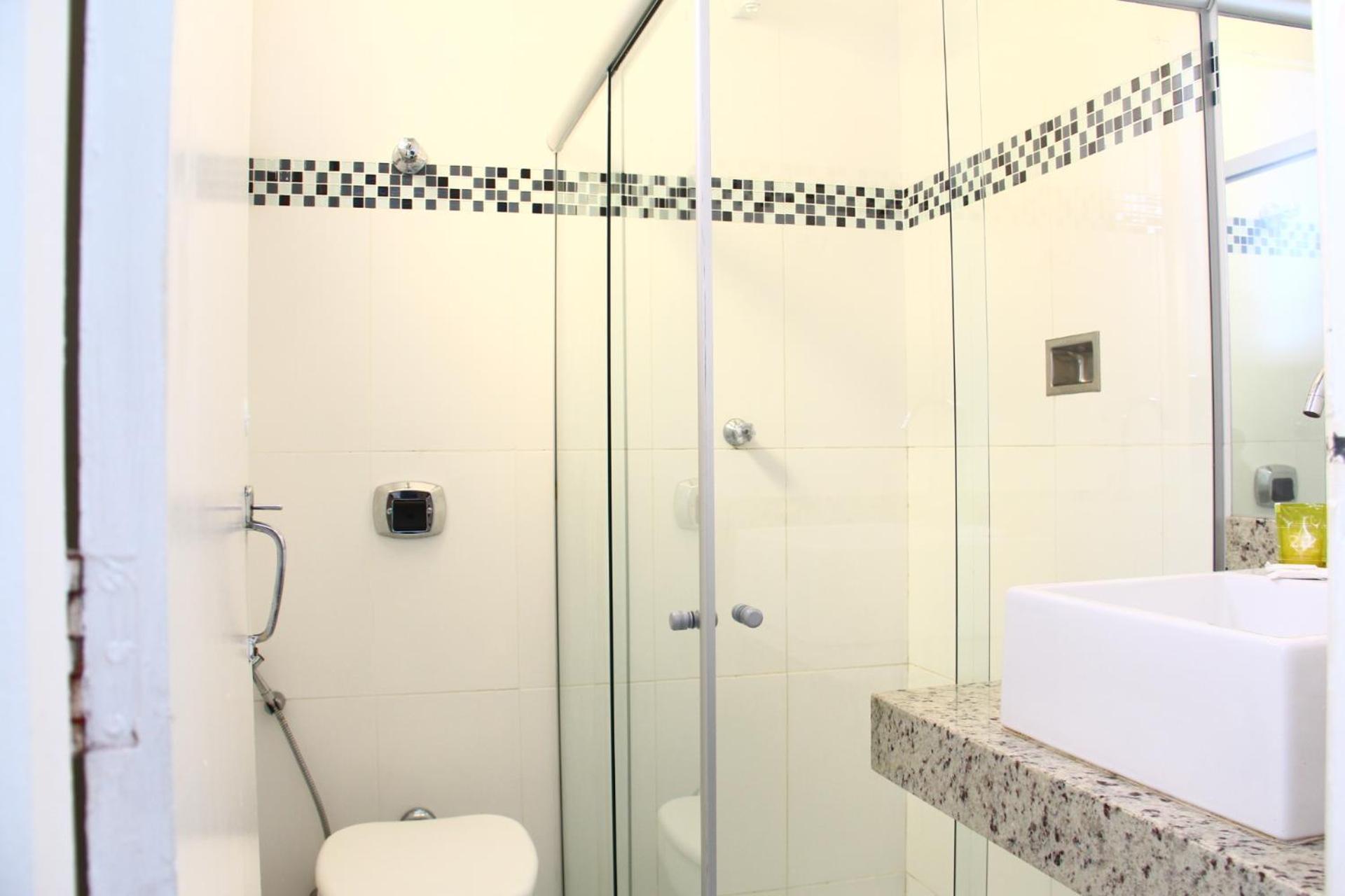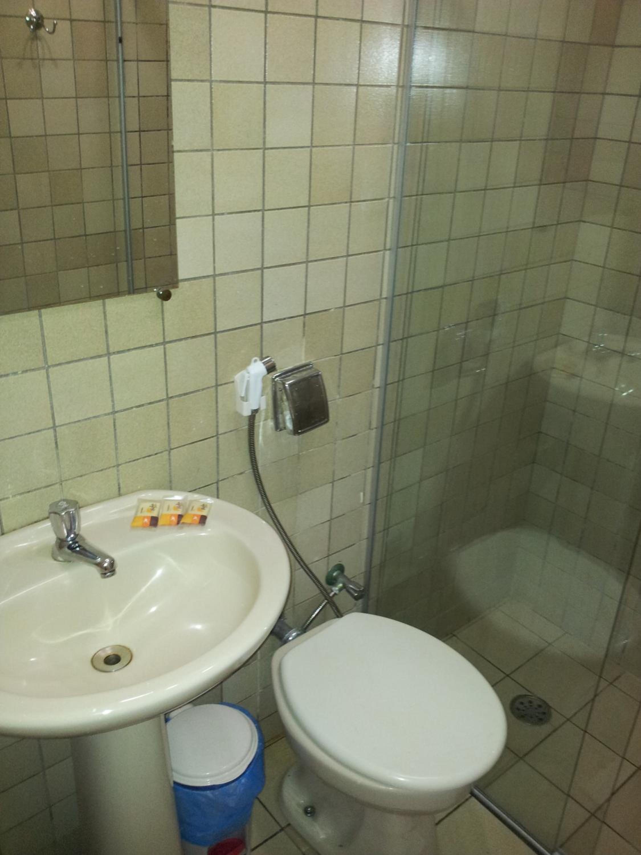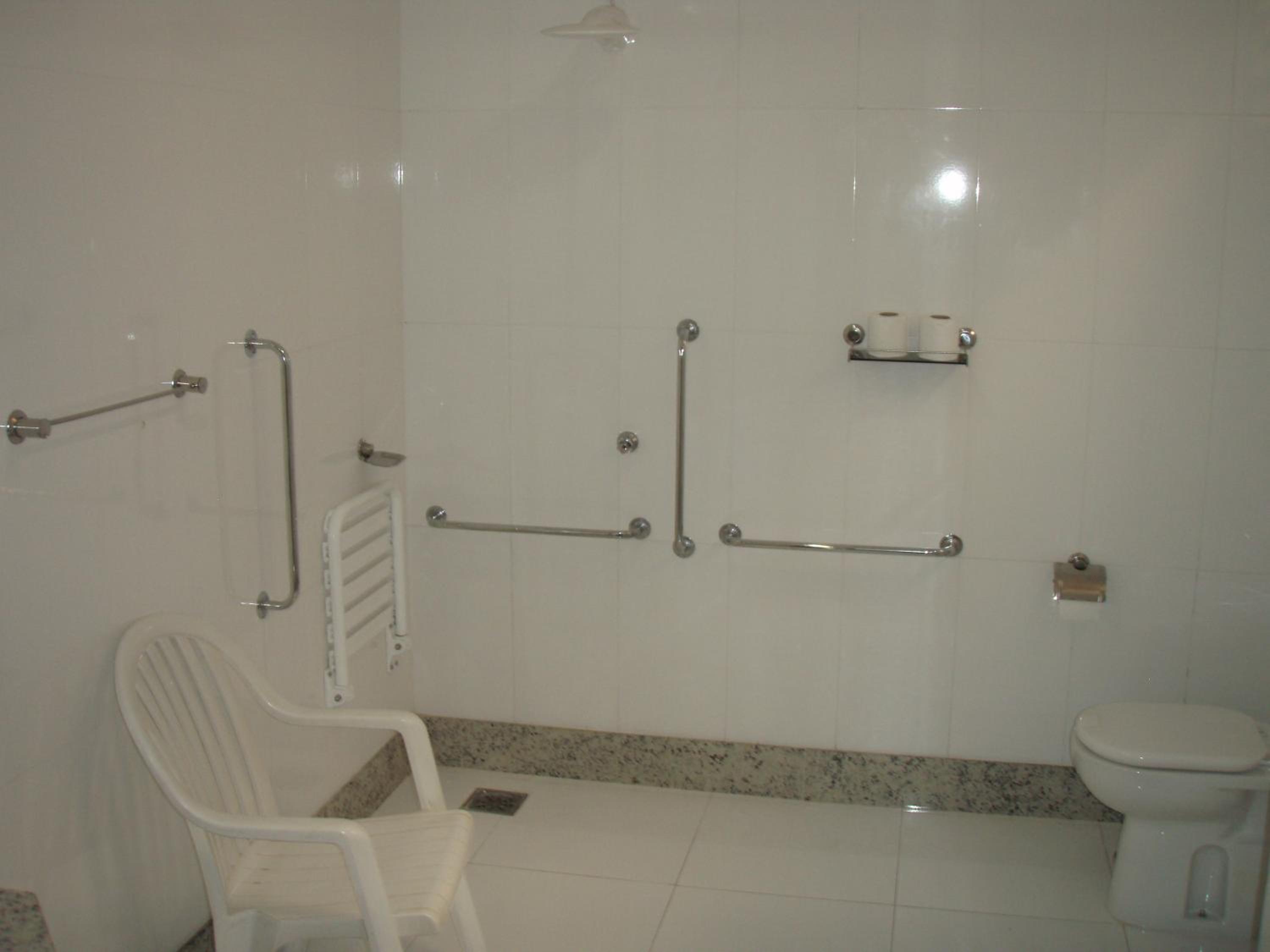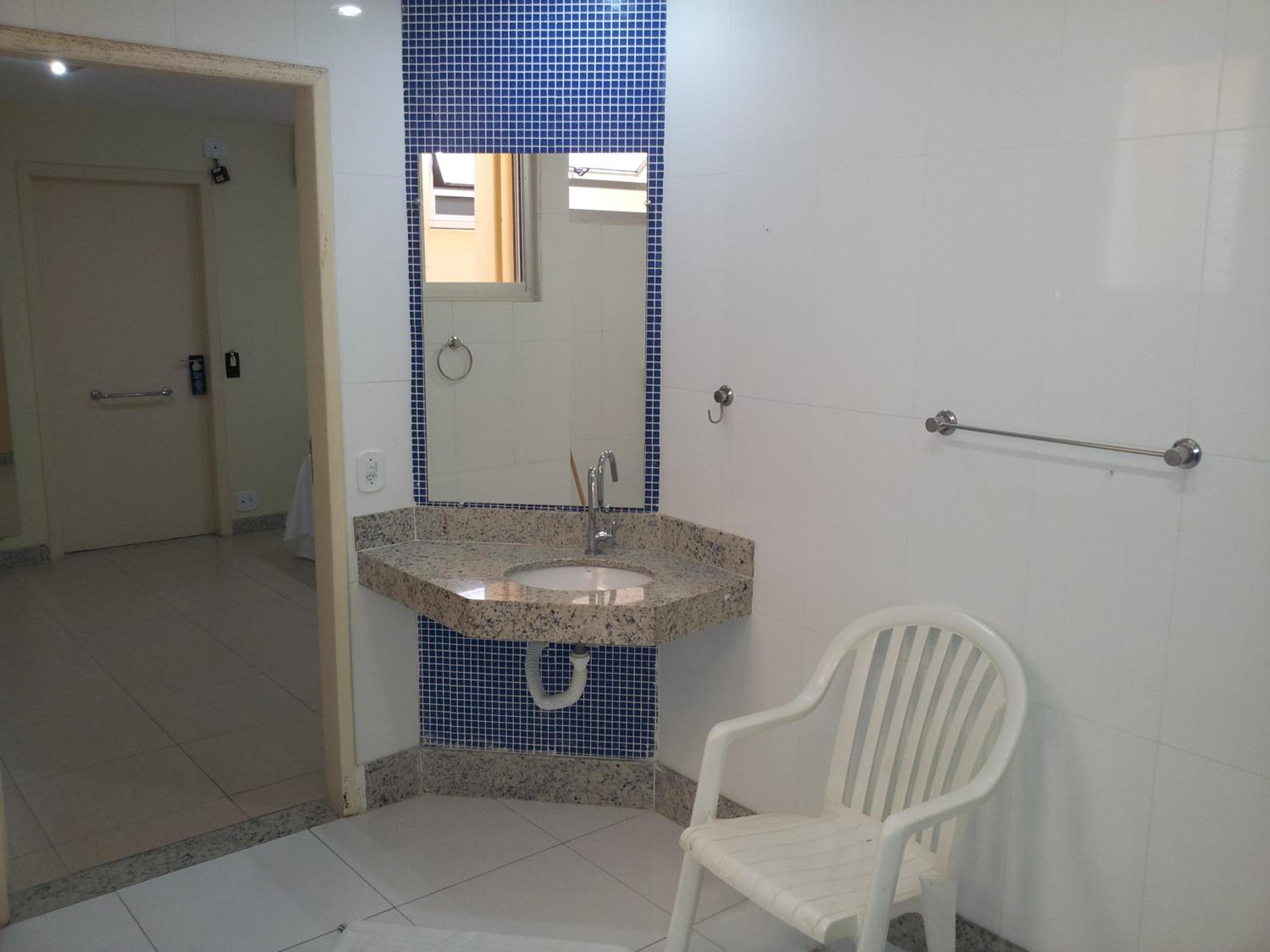 Tamanho quarto. Ausência de porta toalhas.
