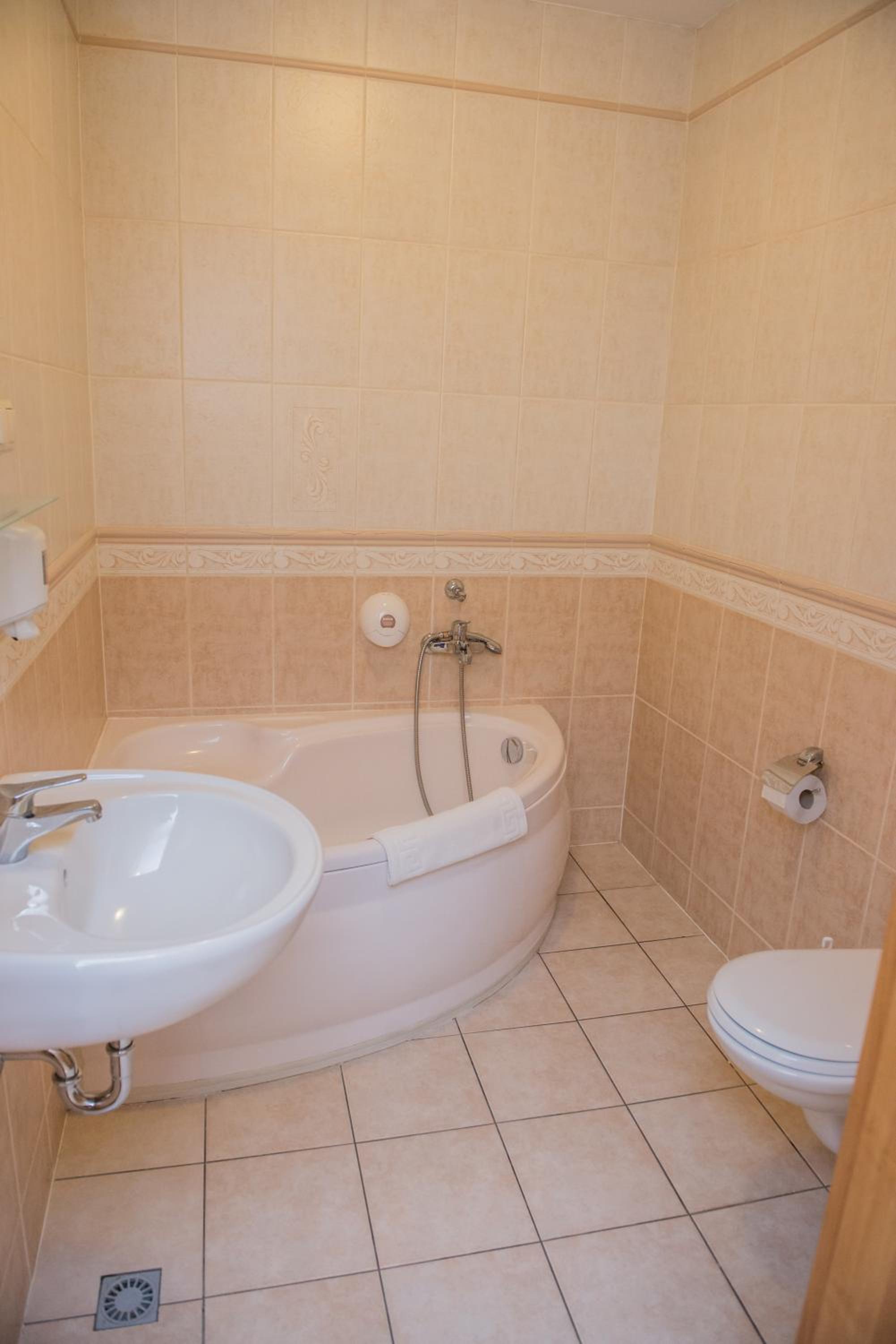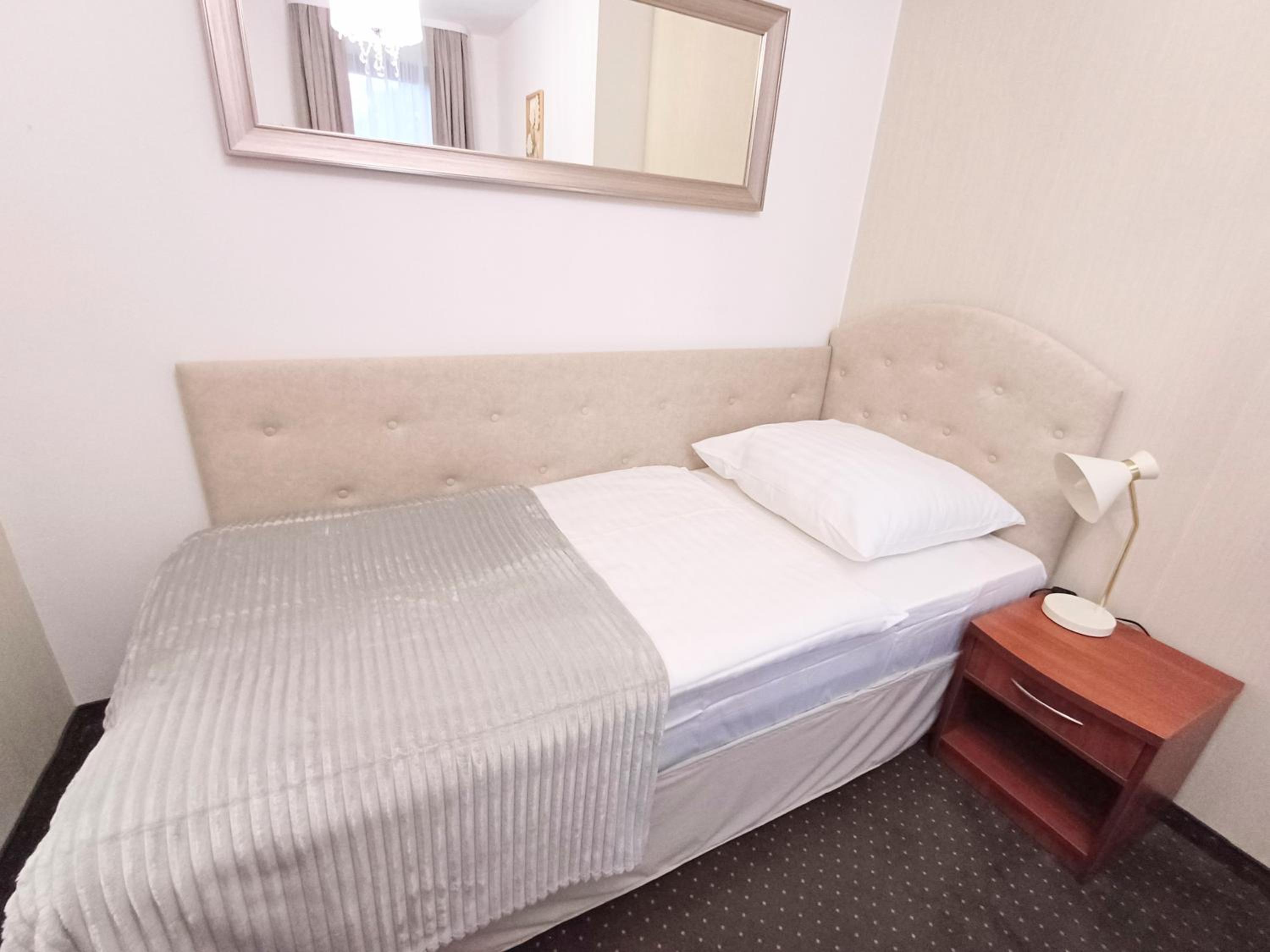 ogólnie ok. ale : w naszym pokoju telewizor wisiał na ścianie gdzie były zagłowia od łóżek, więc oglądanie z łóżka niemożliwe, bardzo słabej jakości drzwi wejściowe do pokoju - mocniej kopniesz i ... jesteś w środku, mała kabina prysznicowa chyba 70 cm . Na pewno pokoje potrzebują już liftingu.