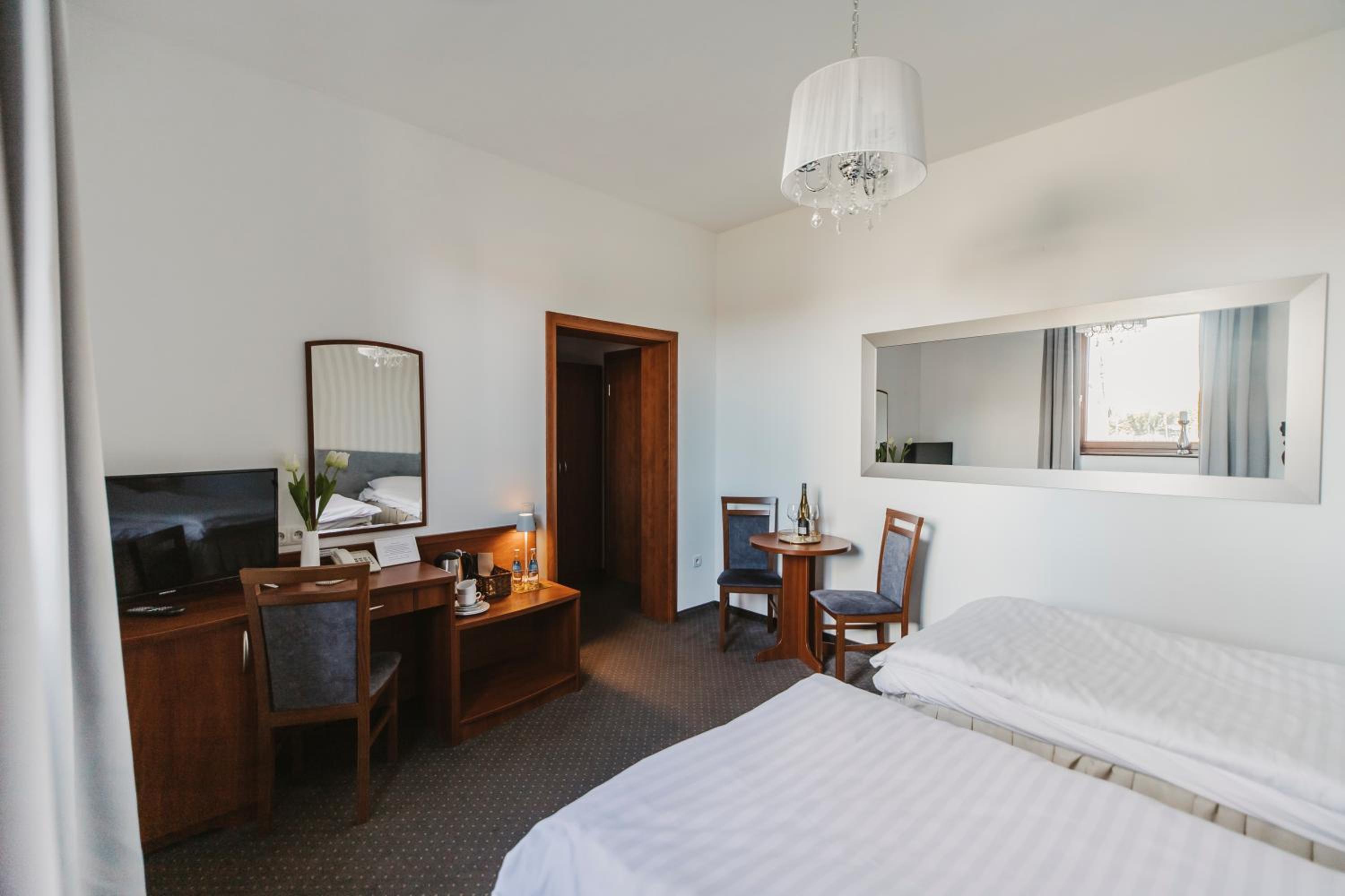 Świetna lokalizacja hotelu. Idealna przy pobycie z psem. Tuż obok przyjemny teren do długiego spaceru. Pokoje bardzo czyste.