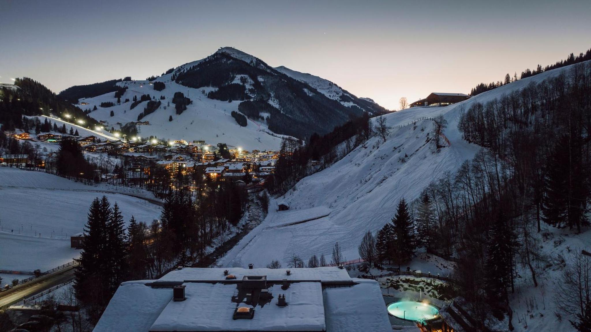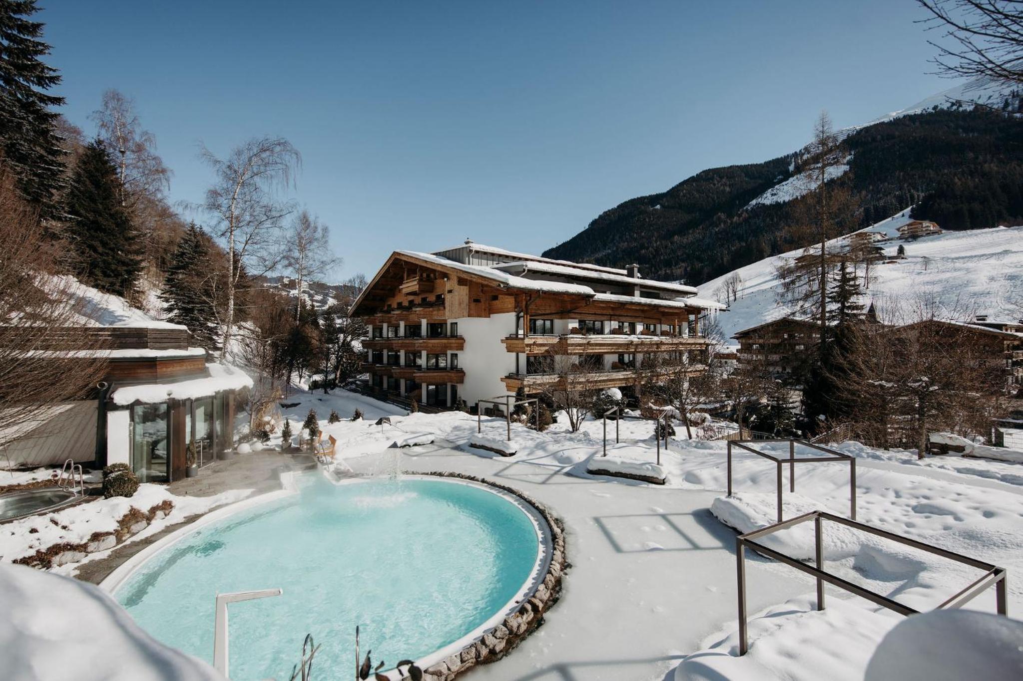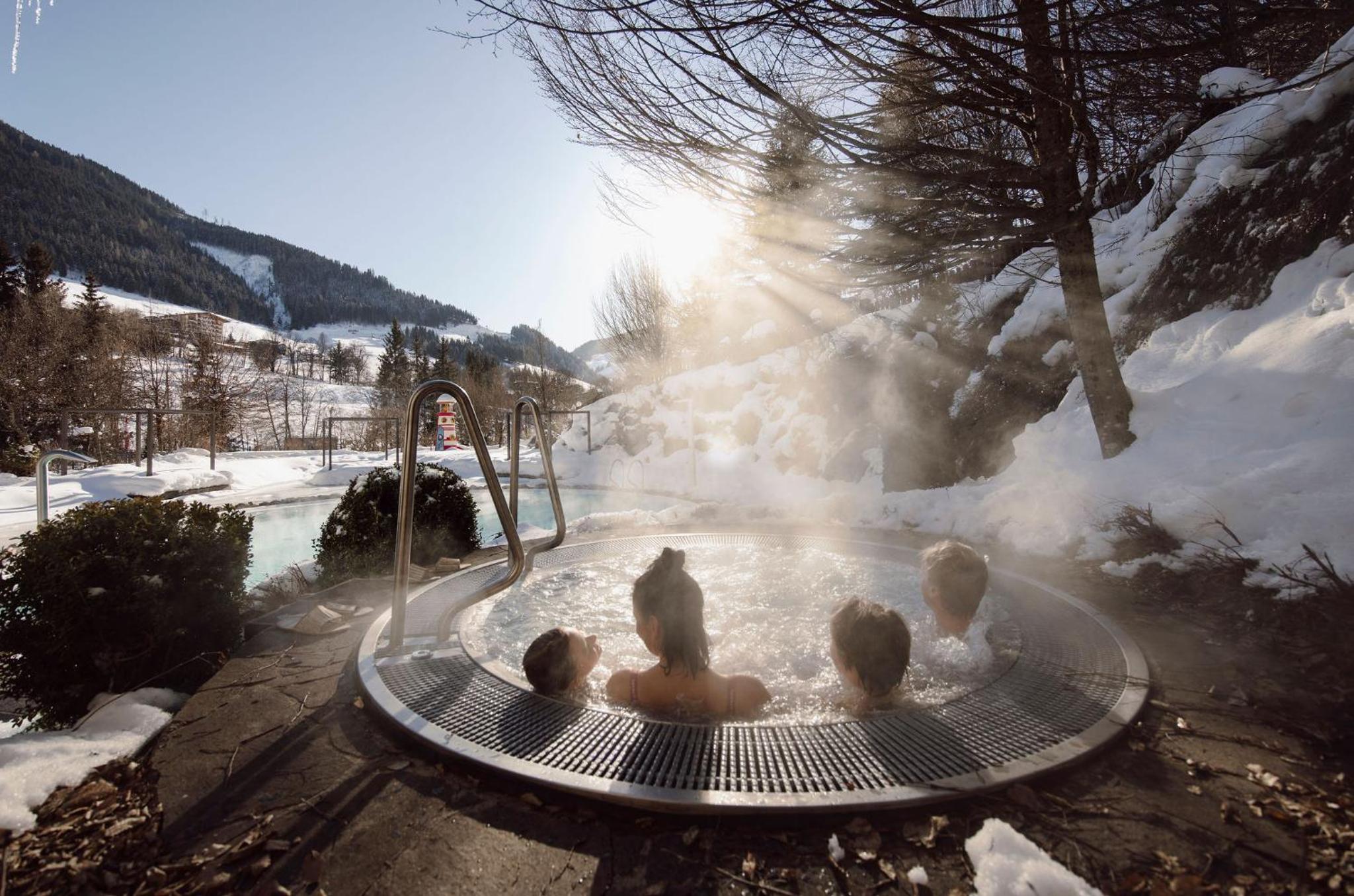 Indulge in relaxation at TheResi Appartements' spa center and hot tub, perfect for unwinding after a day of adventure in Saalbach Hinterglemm.