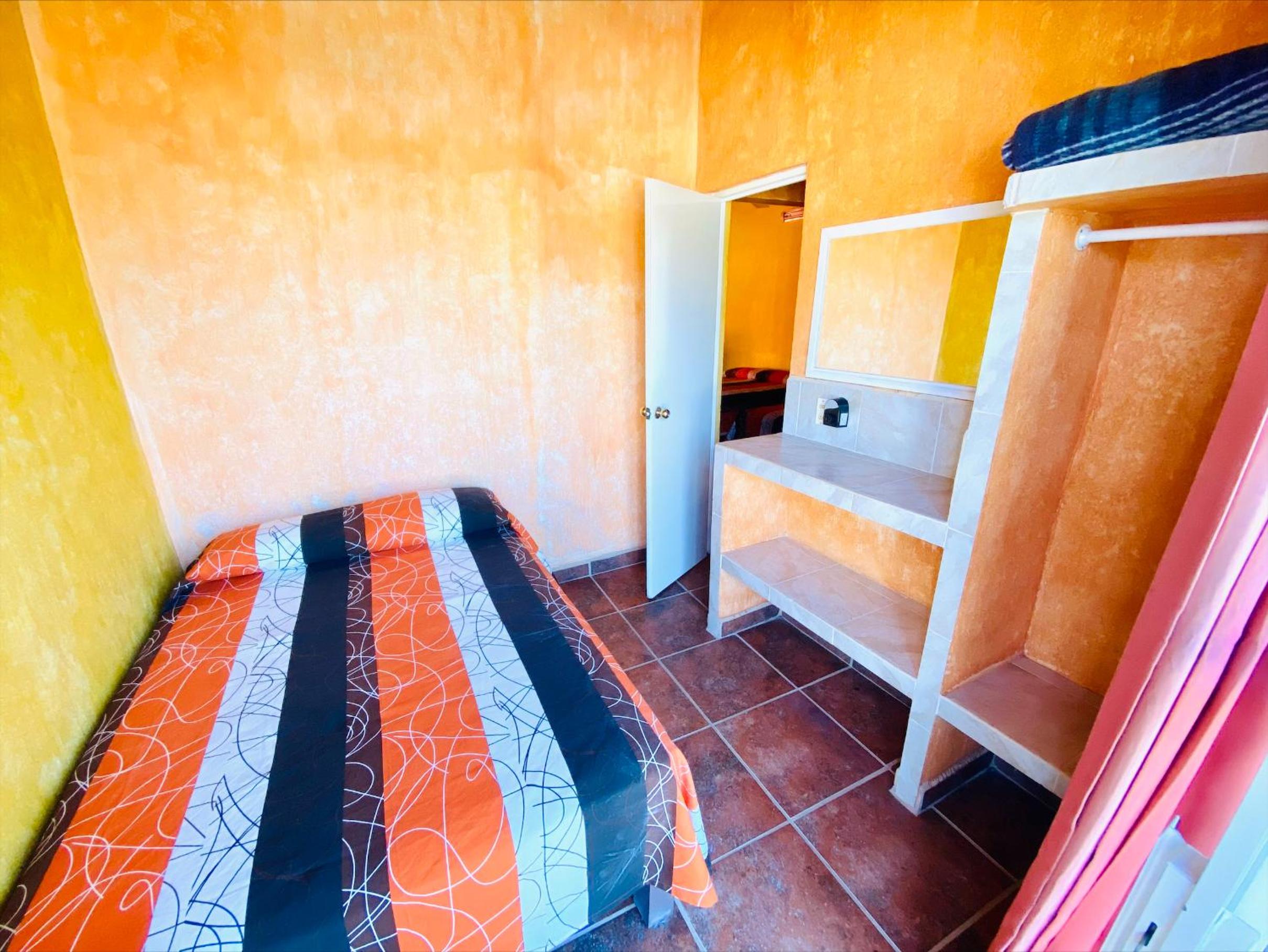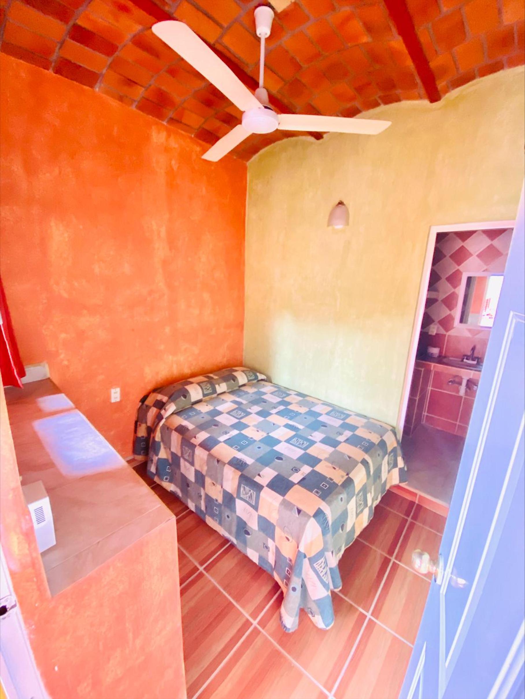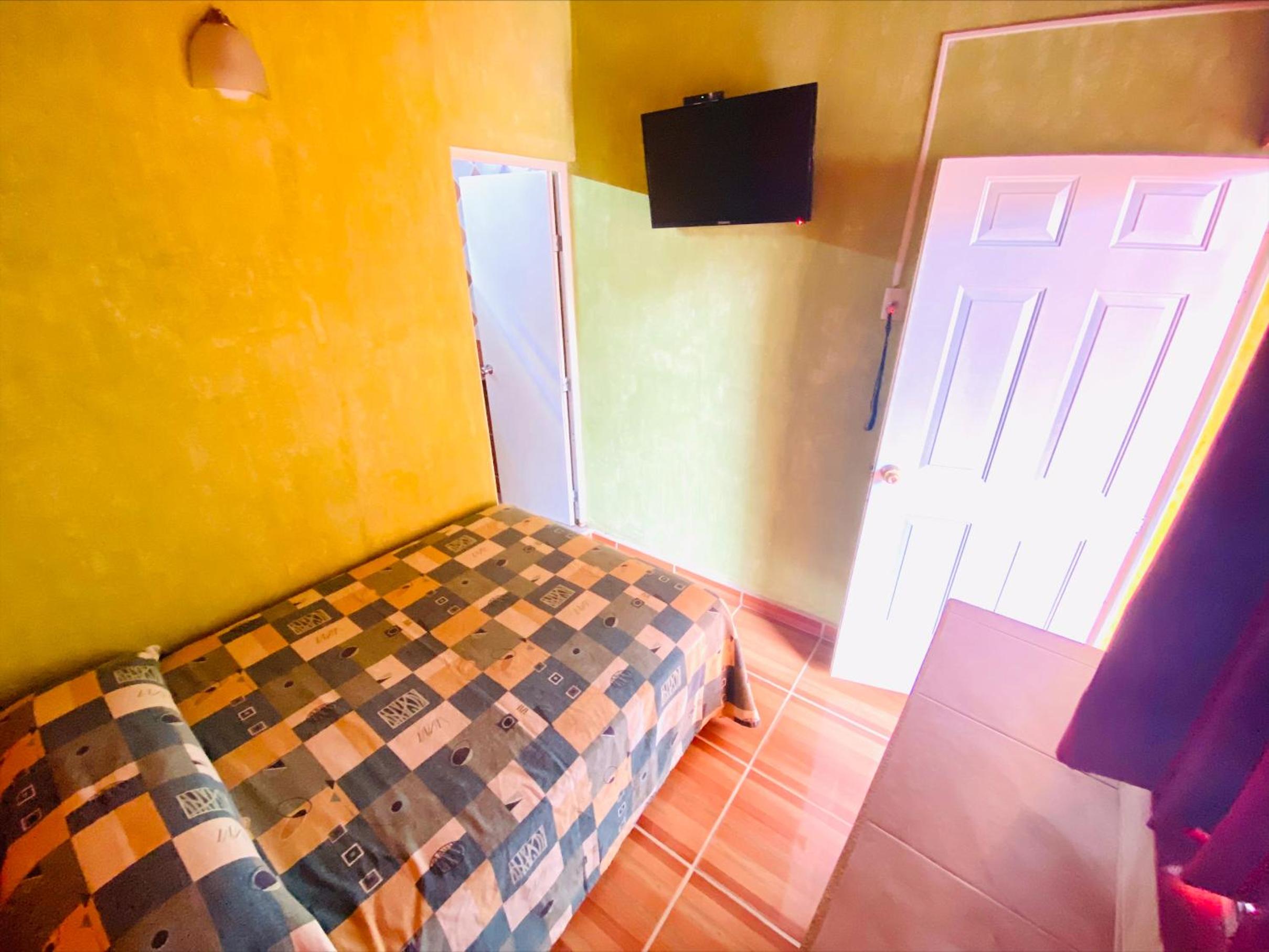 La habitación era muy muy austera y pequeña literal solo cabe la cama pero tenía baño y aire acondicionado, nunca me había quedado en una habitación tan pequeña.