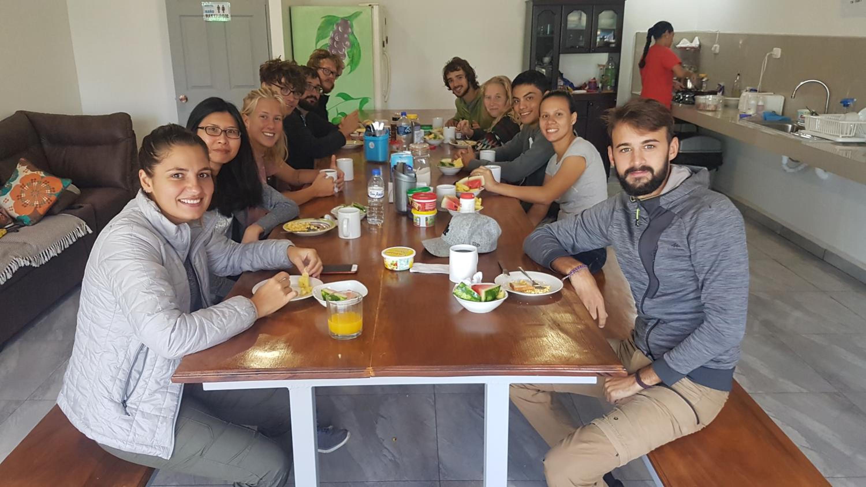 Ambiance conviviale de backpackers multiculturelle, la grande cuisine commune où chacun y va de sa recette. Notre chambre avec salle de bain était parfaite pour une famille avec enfants, bien spacieuse. Super rapport qualité prix et personnel adorable qui a su répondre à toutes nos demandes.