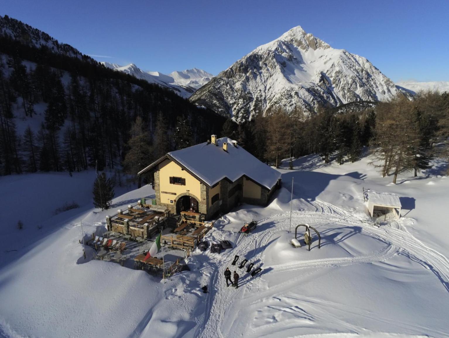 The location on the slopes is exceptional… away from everything and beautifully isolated. Mariana and Mariano run a wonderful mountain refuge with a small but dedicated team. We enjoyed delicious breakfasts and dinners and lovely nights sleep… the skiing in Claviere was a wonderful surprise (I have not skied here since I was 18!). Lovely wide red pistes and quiet lifts. We will definitely be back. Pls the skidoo ride is exhilarating!