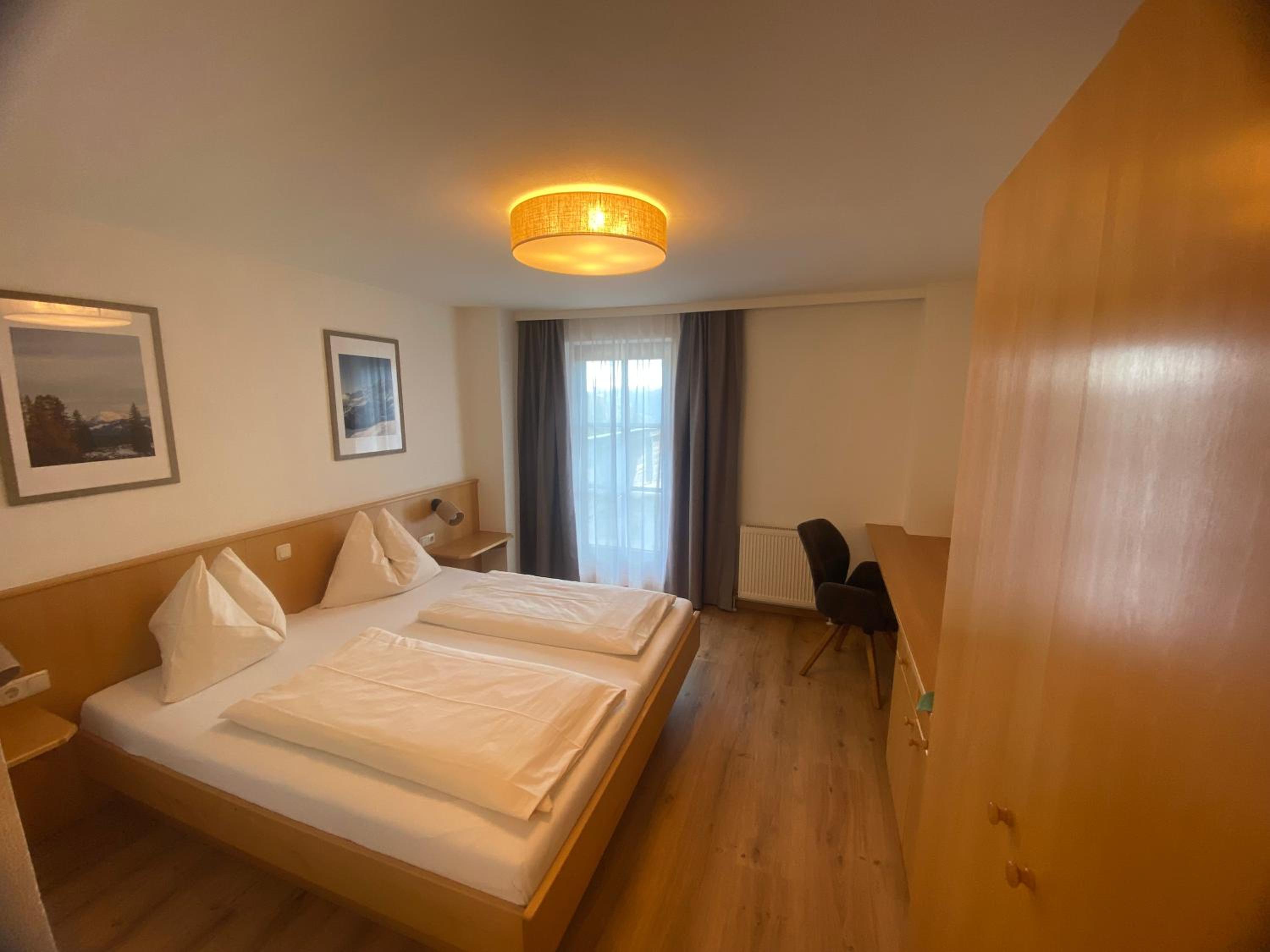 Úžasná lokalita, hory za okny, všude okolo pastviny s krávami. Hochkönig card v ceně, úžasné snídaně. Skvělý přátelský personál, úžasně tvrdá matrace na přistýlce. Non stop selfservice bar s alko, nealko nápoji. K večeři dva druhy polévek a saláty. Možnost AC dobíjení elektromobilu