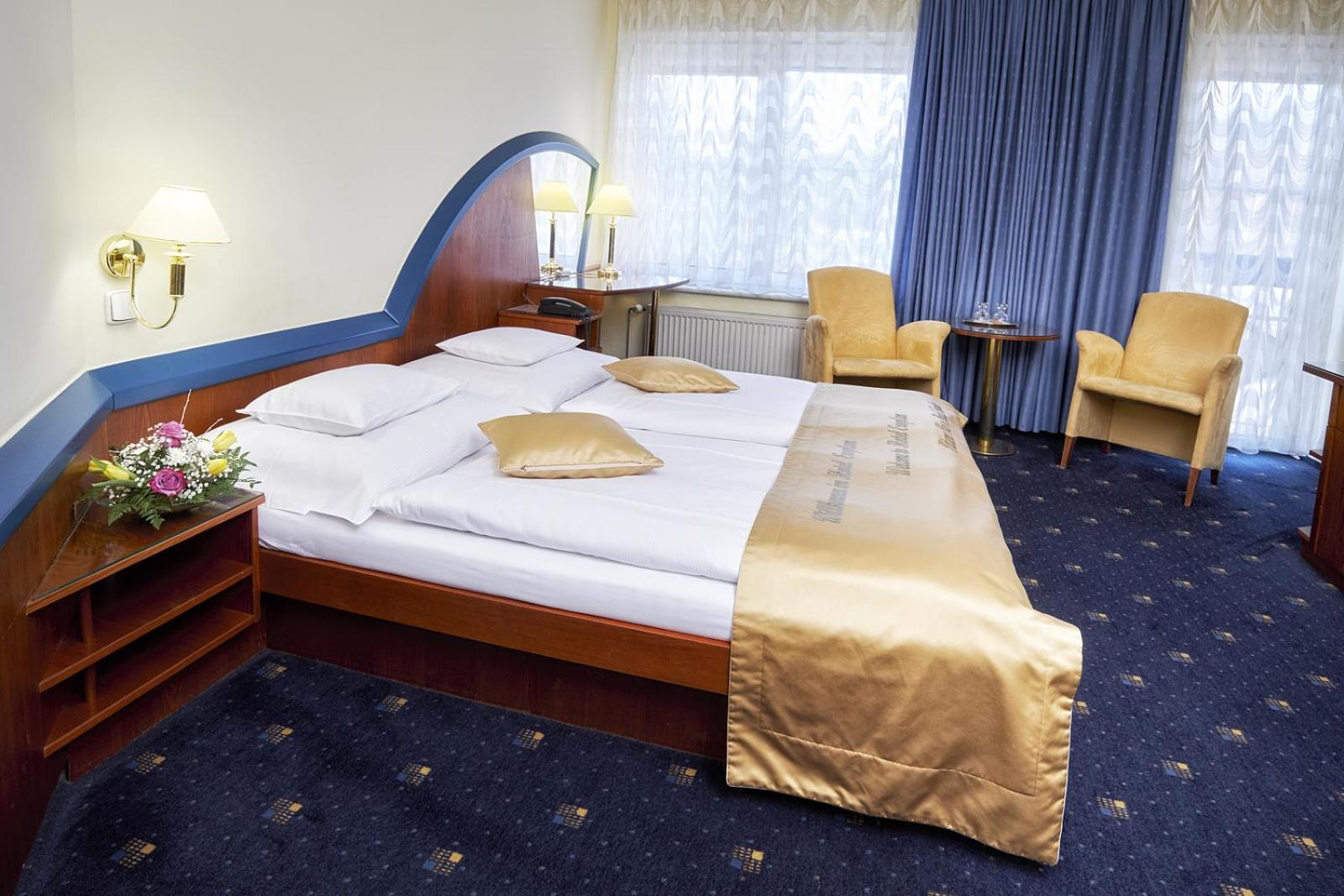 Pokoj prostorný, pěkně vybavený - stolek s křesílky, psací stůl, dostatečné pohodlí. Ve sprše i sedátko, to se téměř nevidí. Velice ráda přijedu znova.