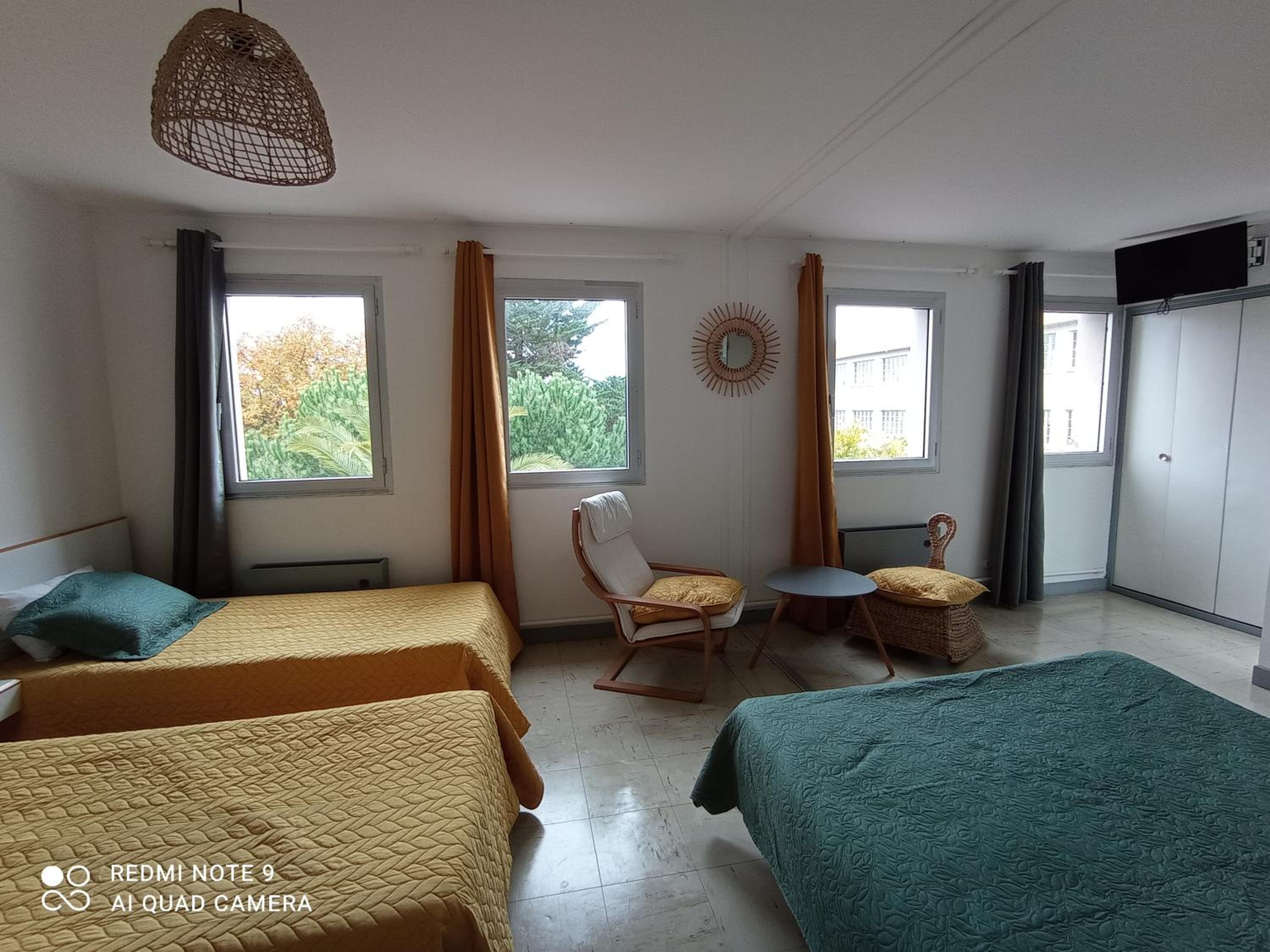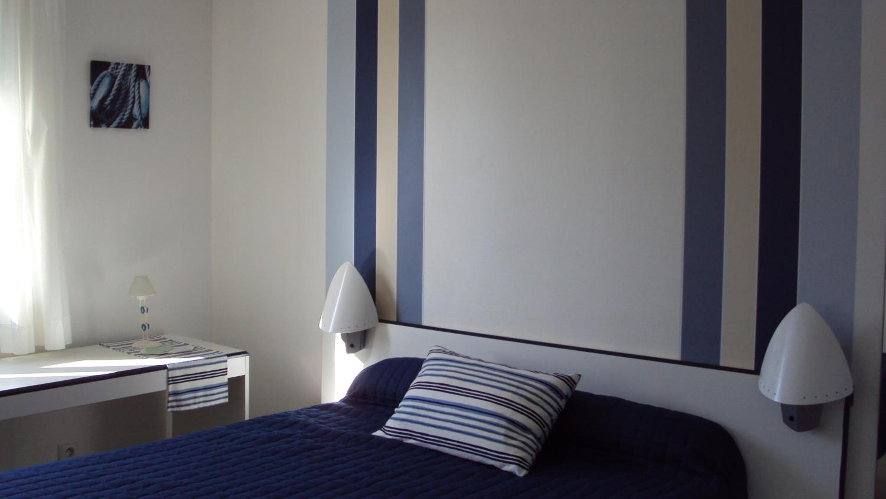 La chambre reste lumineuse dans la nuit car il n’y a pas de volets mais seulement des rideaux opaques aux fenêtres.