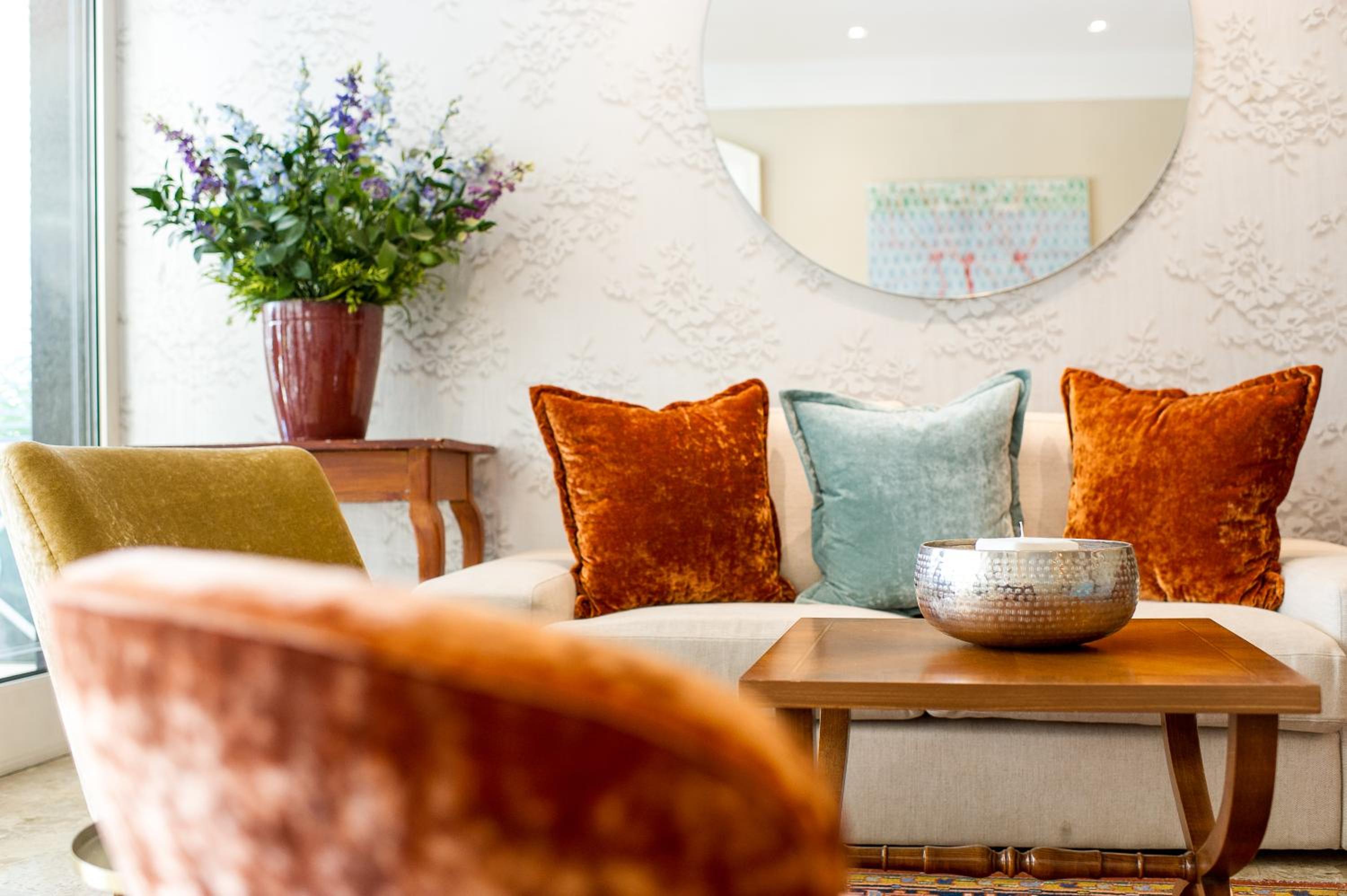 Immerse yourself in rooms adorned with floral motifs, all set against a backdrop of sunny yellow hues.