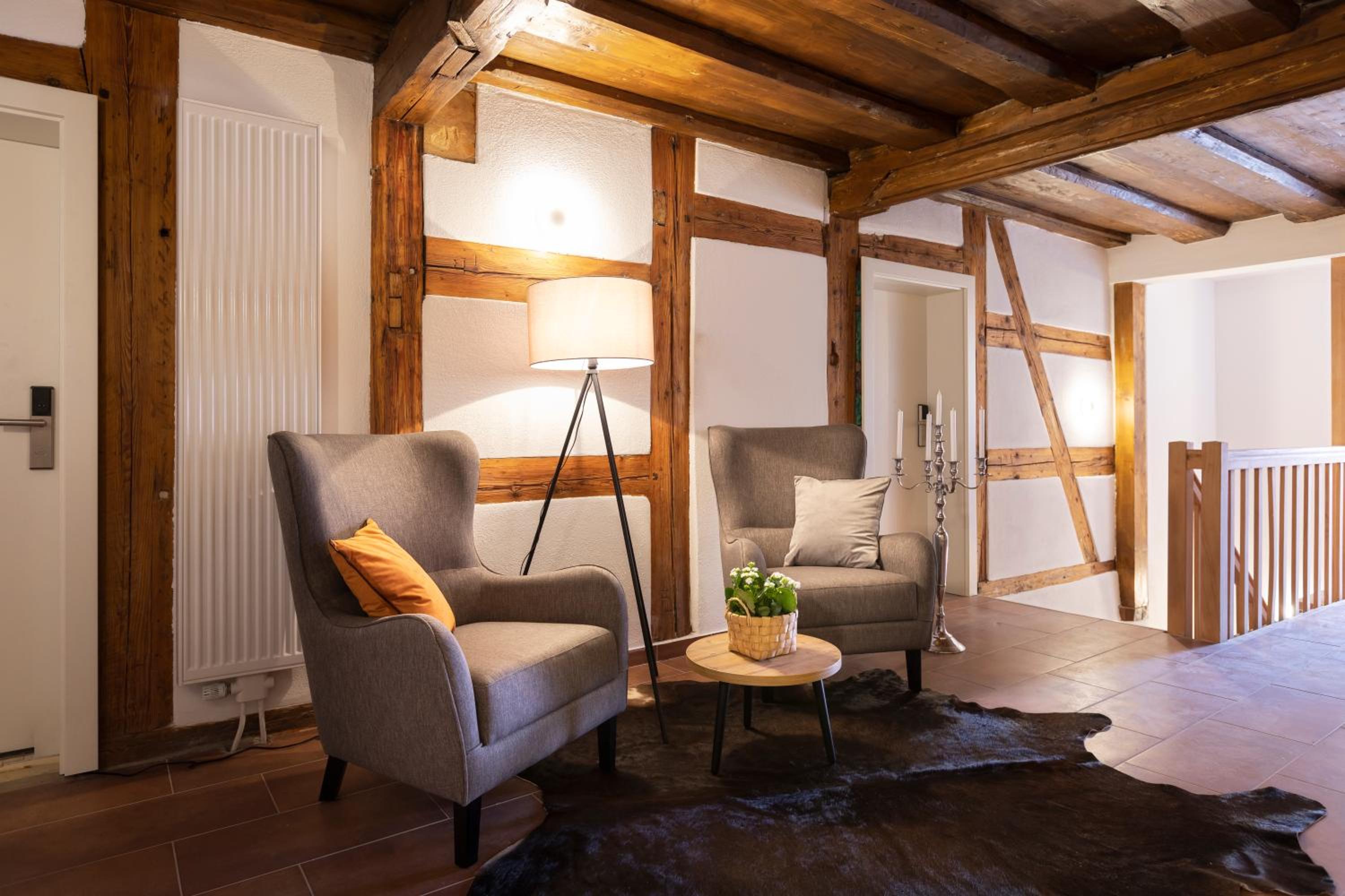 Schöne moderne Zimmer in einem alten Gebäude, großzügig mit viel Platz, großes modernes Bad, sehr gute Betten, super Frühstück in sehr gemütlicher Atmosphäre