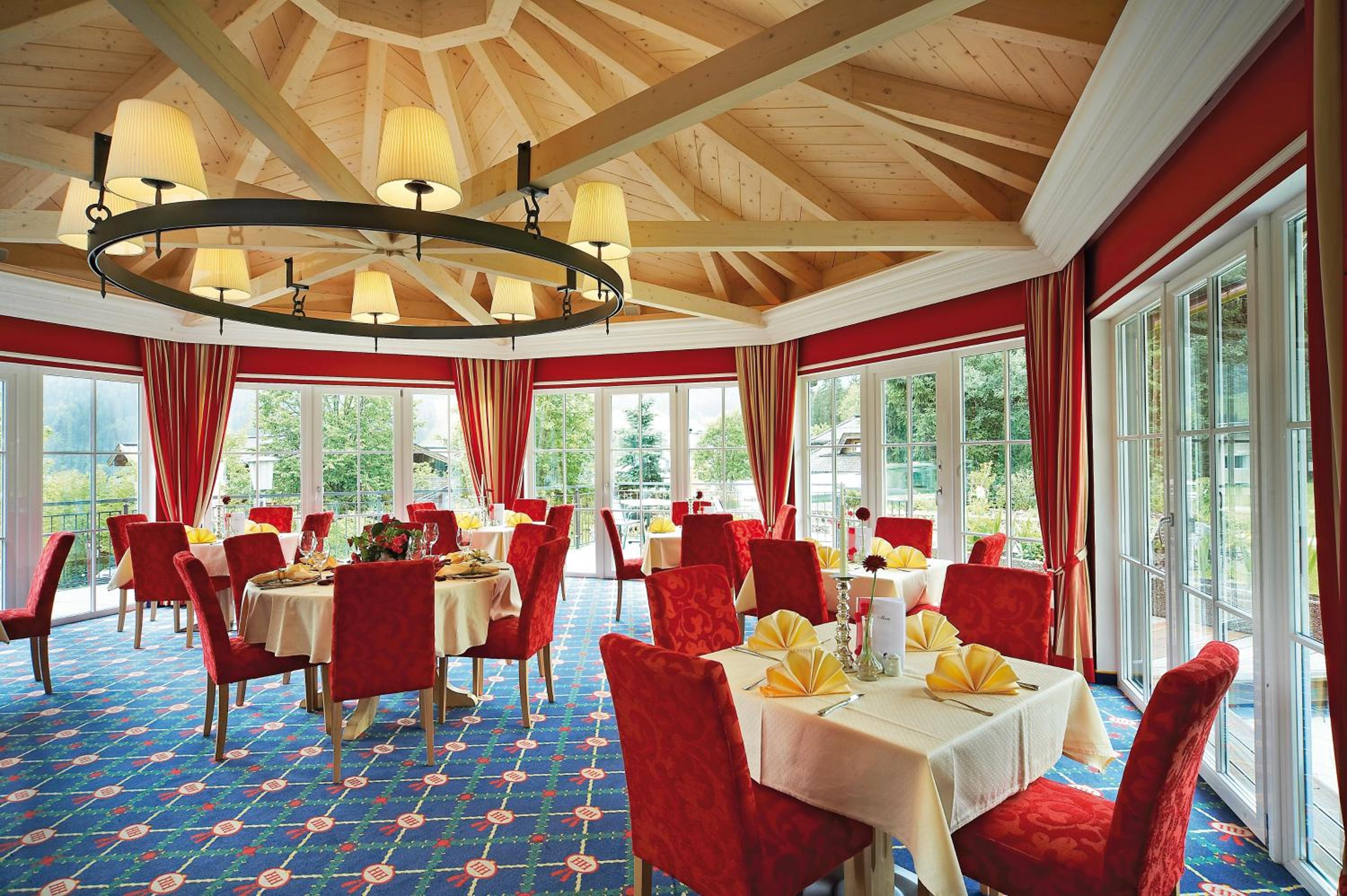 Indulge in Austrian and international cuisine at the on-site restaurant, sip on a variety of cocktails at the bar, and enjoy amenities like massages, a garden, a miniature golf course, and a playground for the little ones.