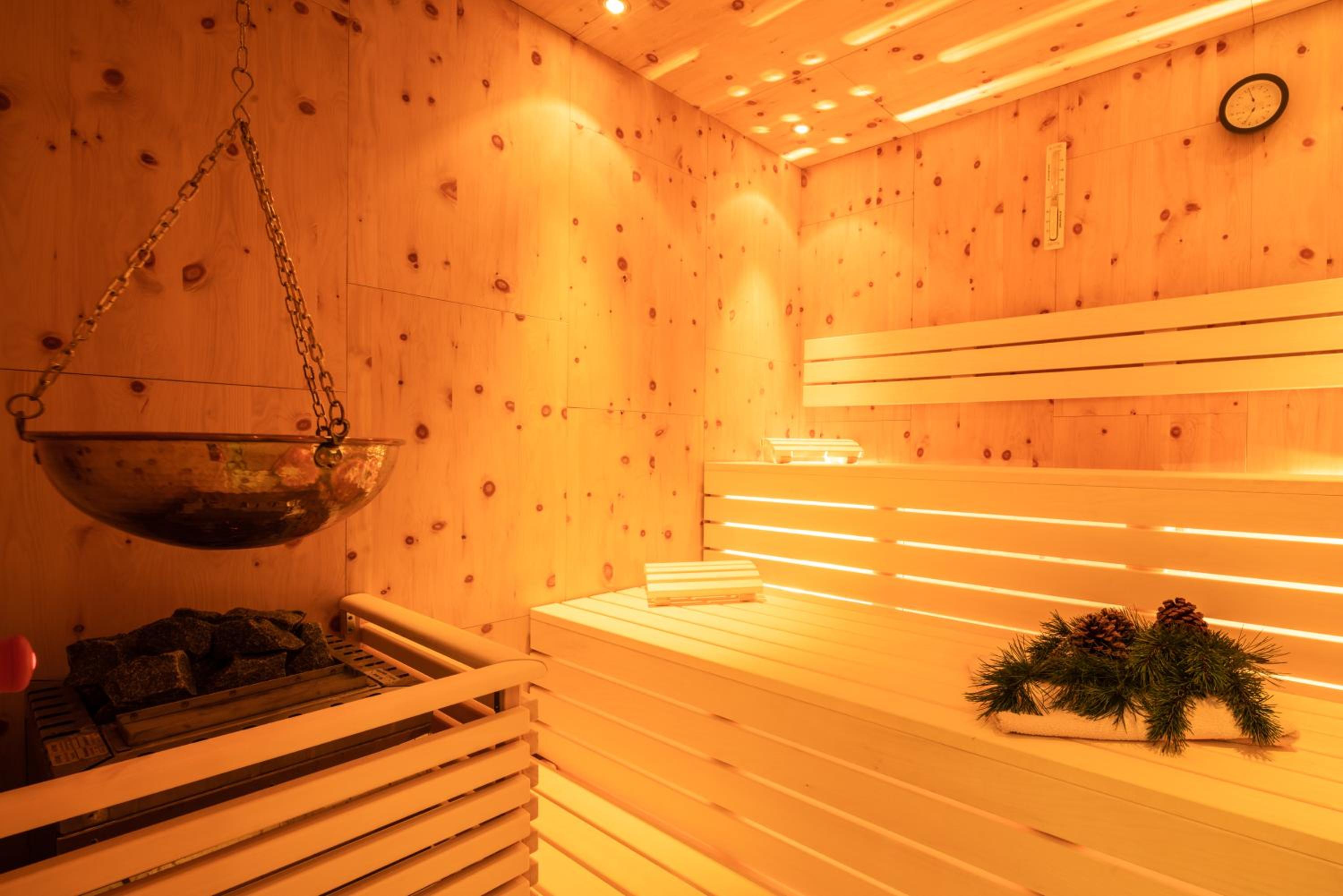 Zur Sauna muss man ein paar Schritte vom Untergeschoss über den Hof, ist aber nicht wirklich hinderlich, Massage-und Spabehandlungen waren ausgebucht, sollte man evtl. vor Anreise vereinbaren. Das Angebot ist sehr umfangreich inkl. Friseur.