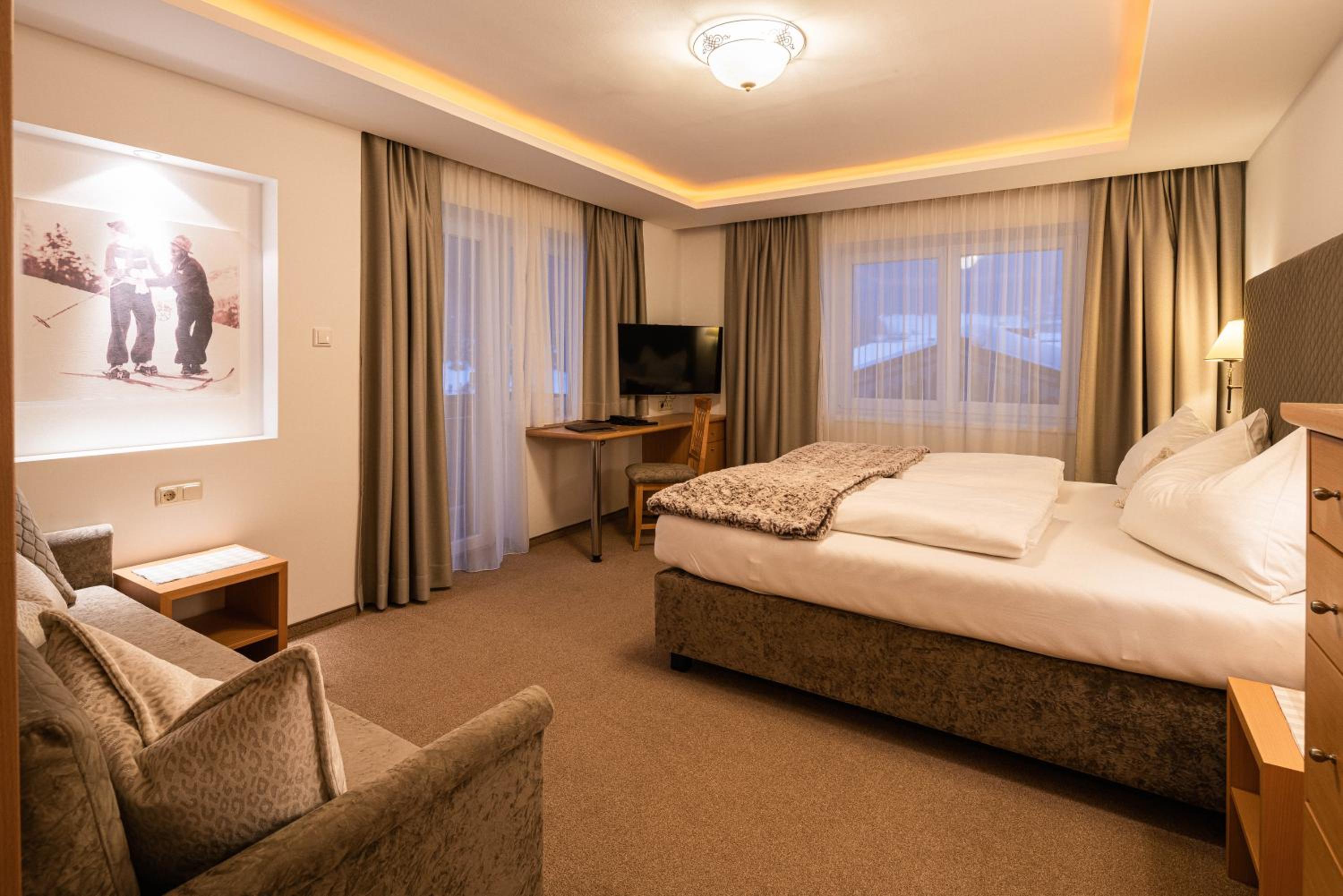 Sehr nettes, zuvorkommendes Personal. Super für Skifahrer, da das Hotel direkt an der Talabfahrt liegt und der Skiraum kostenlos nutzbar ist. Auch die Sauna kommt hier sehr gelegen. Neben dem Hotel ist eine Après-ski Hütte.