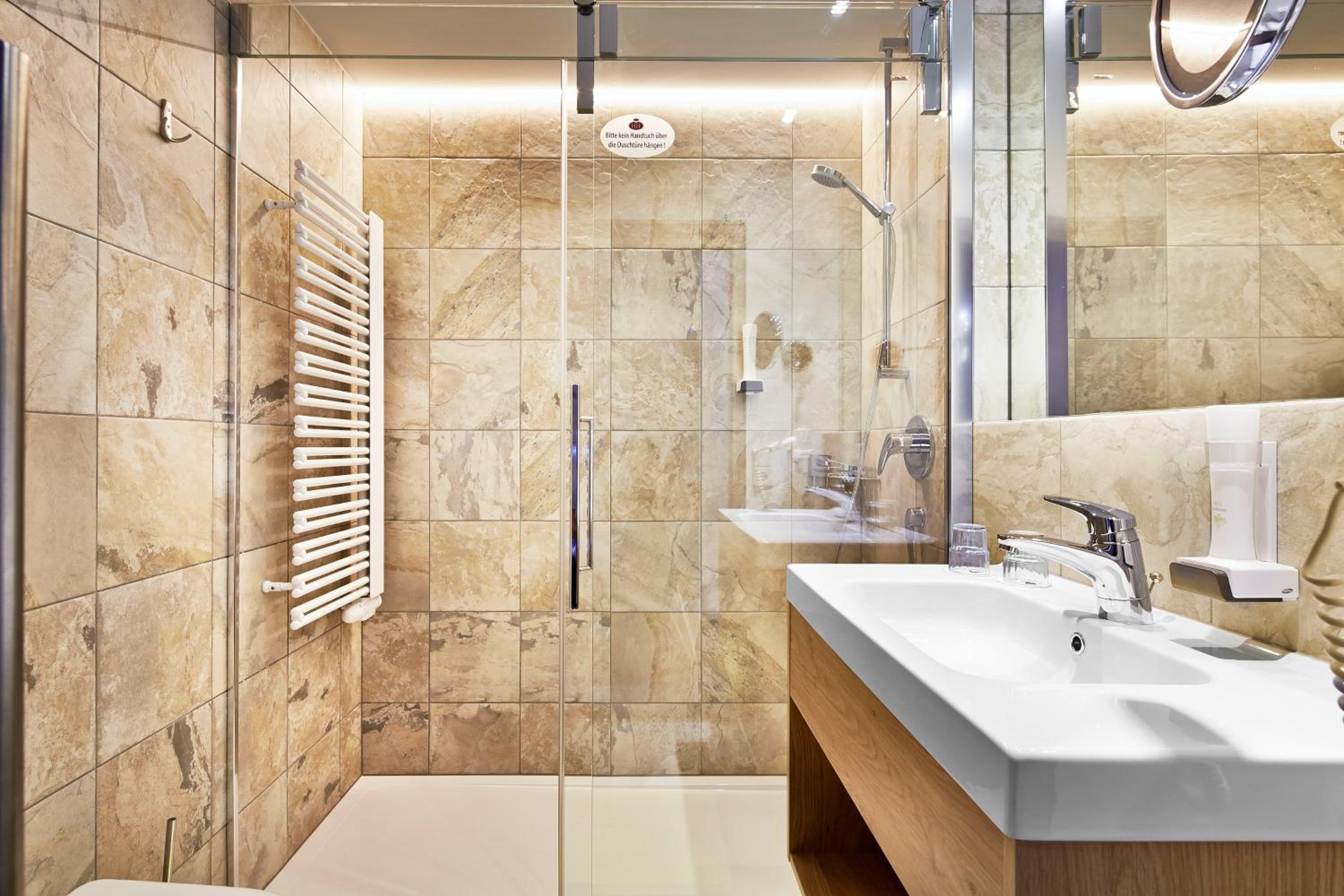 Mooi en comfortabel hotel. Grote kamer met super mooie badkamer en hele fijne douche. Wij hadden een gezinskamer en het was fijn dat er ensuite deuren in de kamer zaten. Een typisch Oostenrijks hotel met heel aardig personeel die rondliepen in dirndls.
