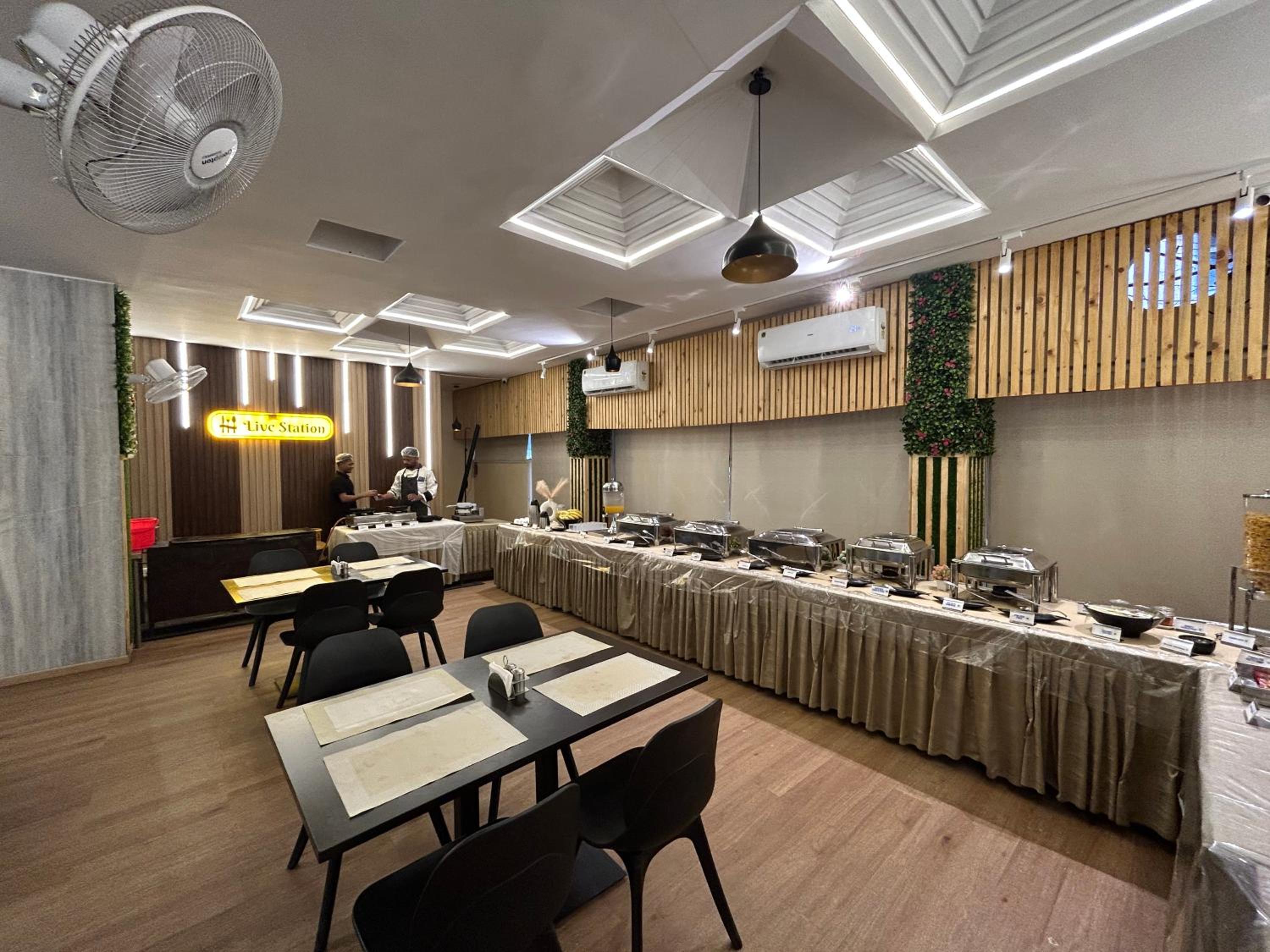The hotel is in a good location with cafes, bakeries and casual places to eat nearby. The breakfast was good value with a range of buffet options to suit Indian and Continental preferences in addition to made-to-order items. The hotel is in a quiet area and only a short tuk tuk ride from most places of interest.