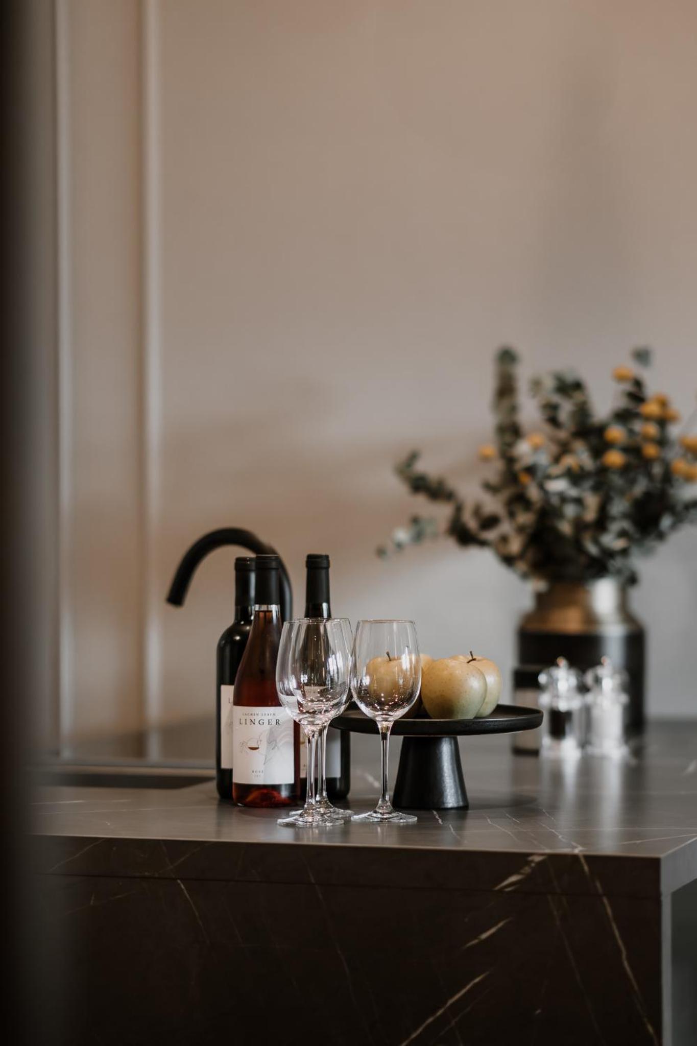 Super schöne Inneneinrichtung, modernes Design, schöne Farben. Großartig! Sehr sehr freundlicher Service. Großer Komfort, beispielsweise mit Honesty Bar. Das Ganze in wunderschöner Lage zwischen den Weinbergen mit Blick auf die Berge. Man hat das Gefühl, man ist in Südafrika.