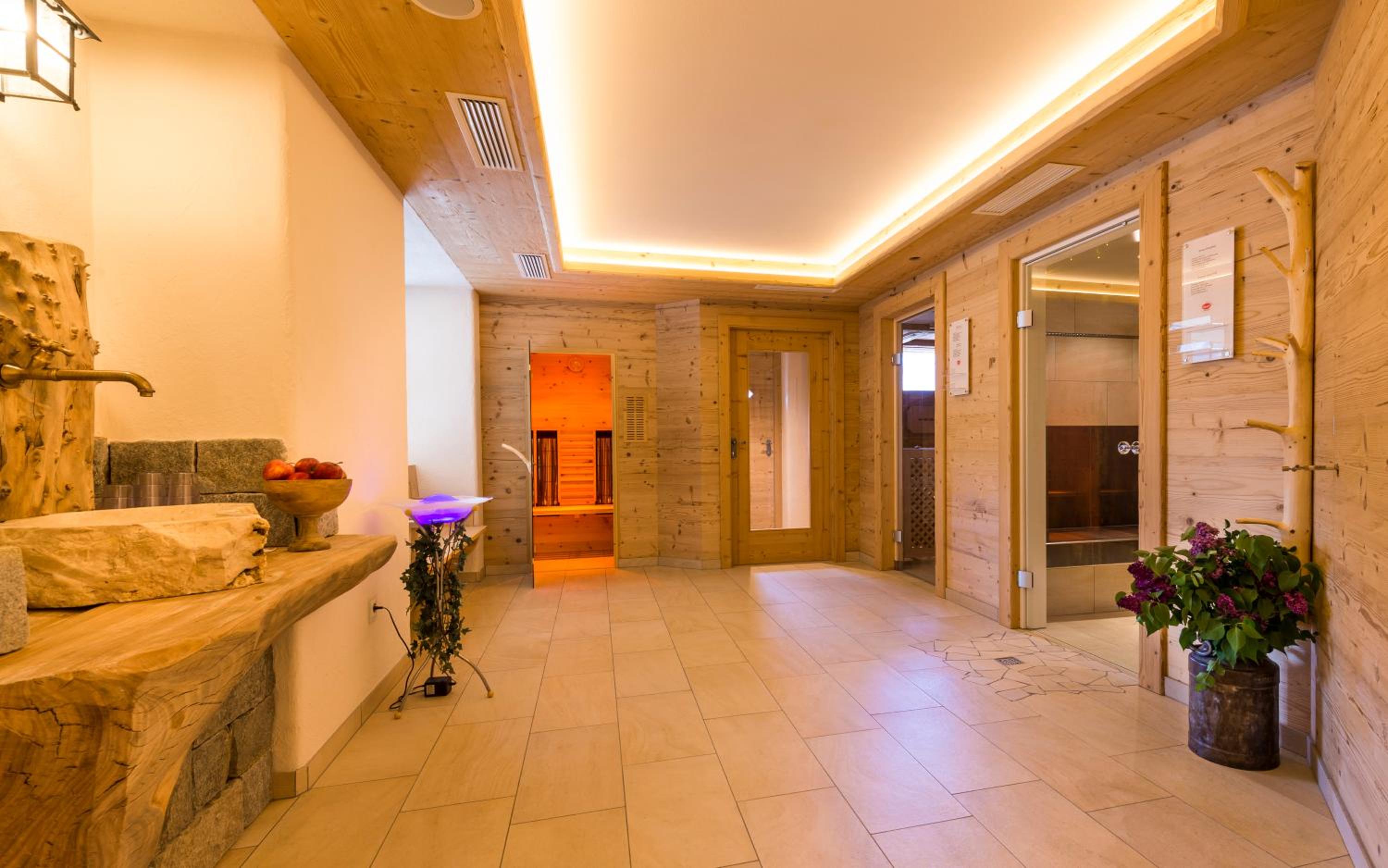 Please note that the sauna and wellness area are available free of charge during the opening times of Hotel Kompatscherhof. During this time it is also possible to book dinner. The opening times can sometimes vary, please ask at the reception.