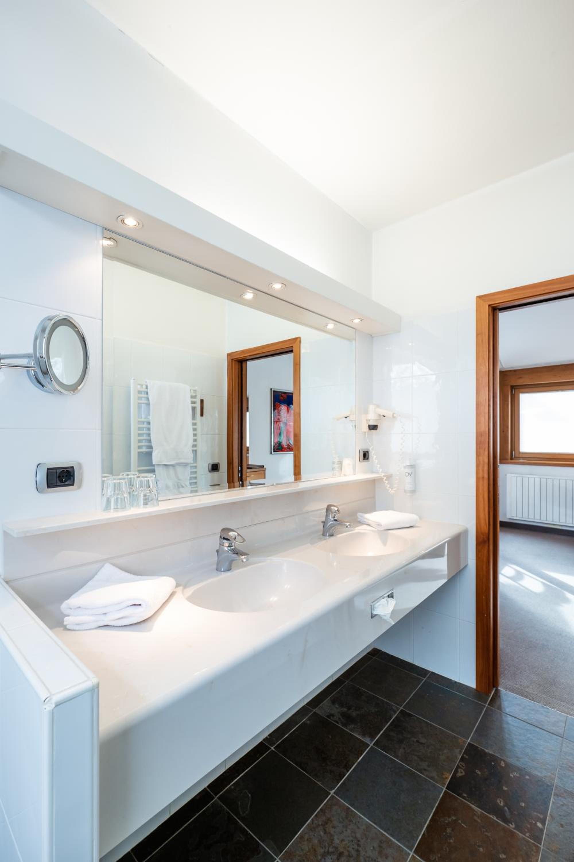 Ich hatte ein Standardzimmer gebucht und erhielt bei meiner Ankunft ein Superior-Zimmer. Das Zimmer war groß, ruhig und sauber. Das Bett war sehr bequem, und Badewanne und Dusche waren geräumig. Ich war mit meinem Aufenthalt in diesem Hotel sehr zufrieden. Das Personal war sehr freundlich, hilfsbereit und zuvorkommend. Der Wellnessbereich war komfortabel und bot vier Saunen, zwei Whirlpools sowie einen Innen- und einen Außenpool. Es war ruhig und friedlich, mit Bergblick und einer intimen Atmosphäre. Außerdem gab es ausreichend Parkplätze. Ich komme auf jeden Fall wieder.