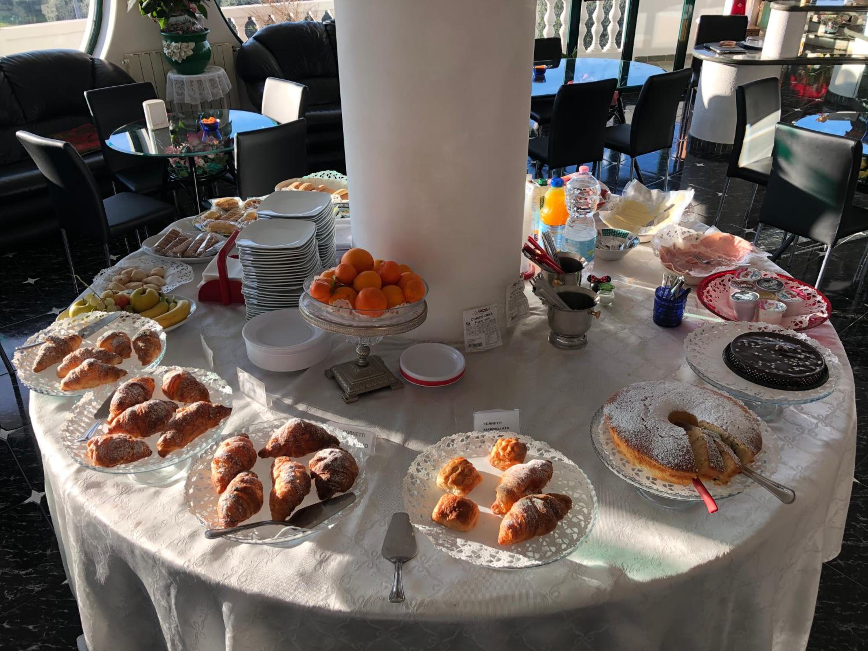 Colazione eccellente: tantissima varietà di dolci di produzione artigianale ma anche uova e diverse possibilità di colazione salata e frutta di stagione.