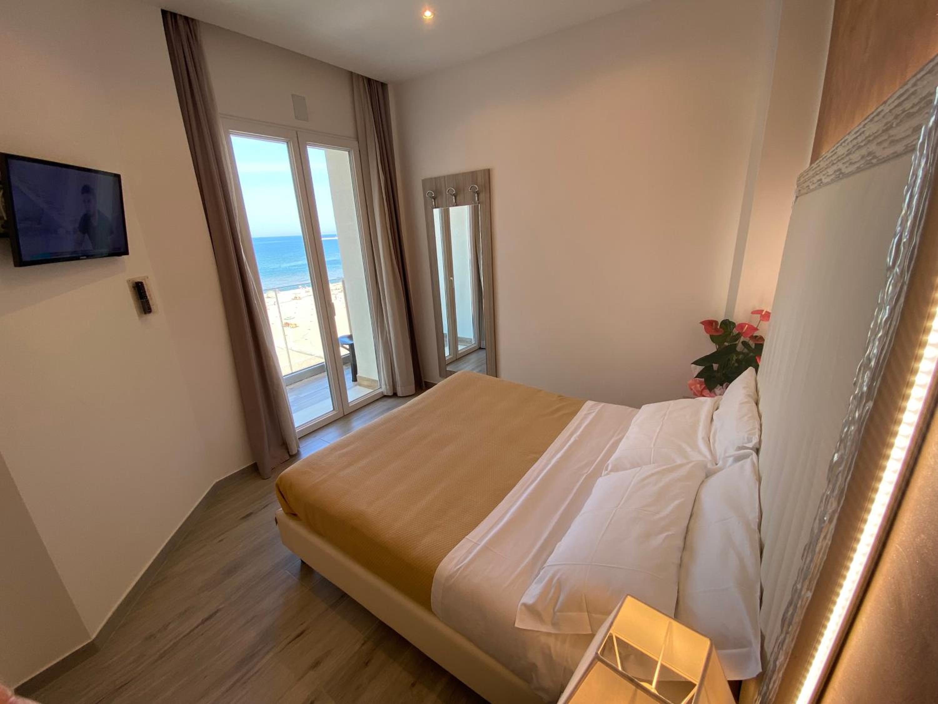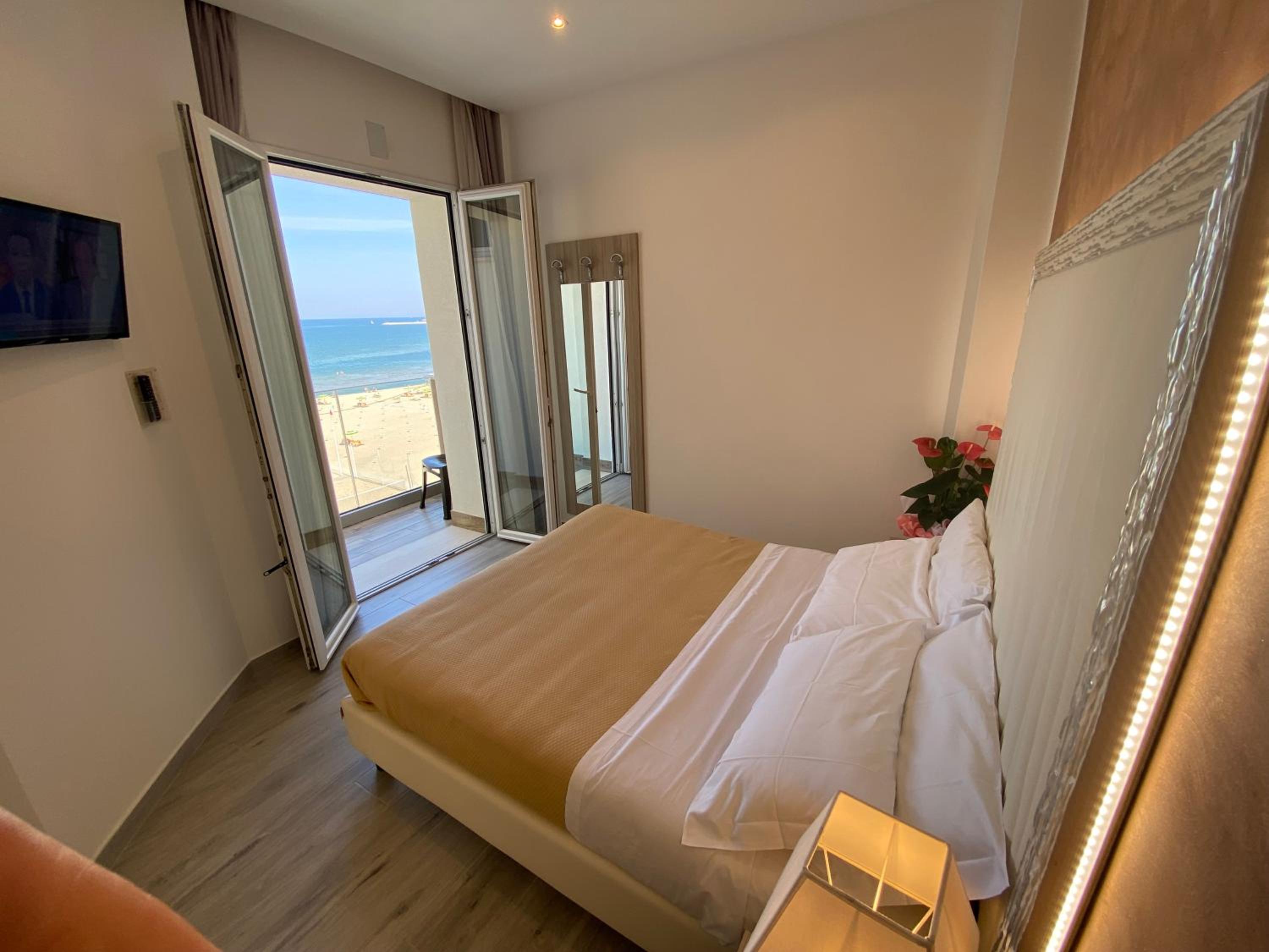 Struttura nuova,bella e soprattutto pulita. Centrale come posizione di fronte vari lidi, bellissimo balconcino con vista mare, tranquillo, silenzioso, rilassante. Letti comodissimi, stanza grande e confortevole e personale gentilissimo. Come posizione è in una zona con ztl ma stesso il personale dell'hotel vi farà il permesso per entrare nella ztl per tutta la durata del soggiorno. A noi è piaciuto tanto e lo consiglio vivamente
