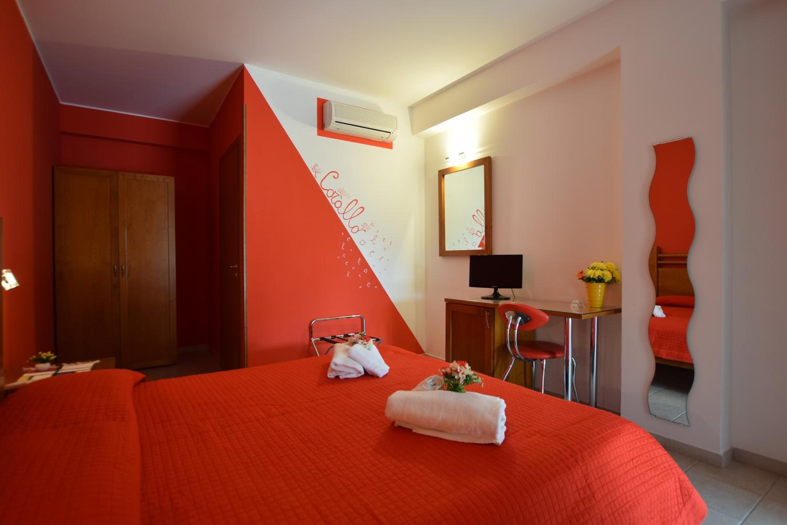 Indulge in comfort with uniquely decorated rooms in lively shades of red, yellow, and blue. Each room is equipped with modern amenities including a satellite TV, minibar, and a private bathroom with complimentary toiletries for a relaxing stay.