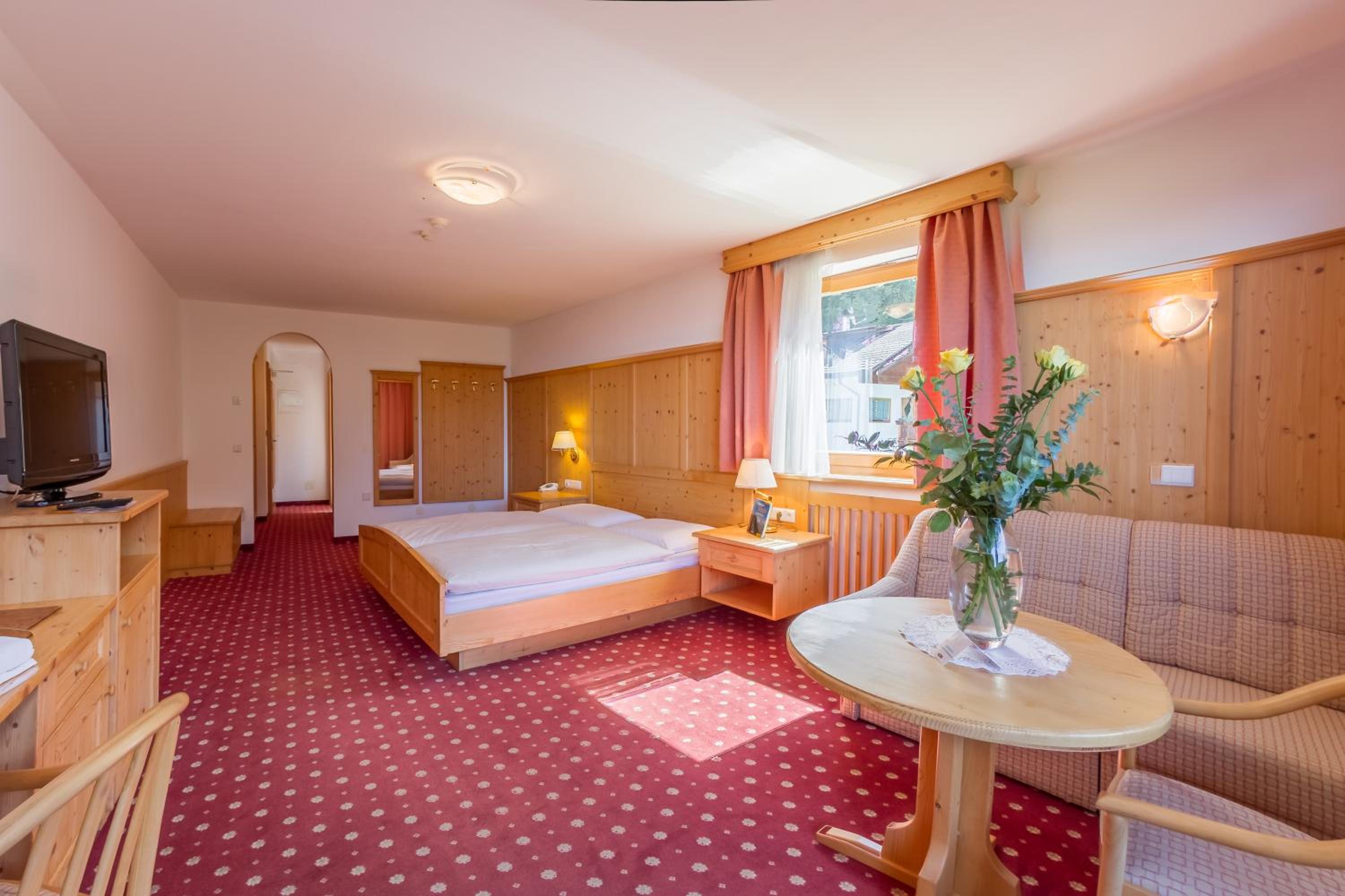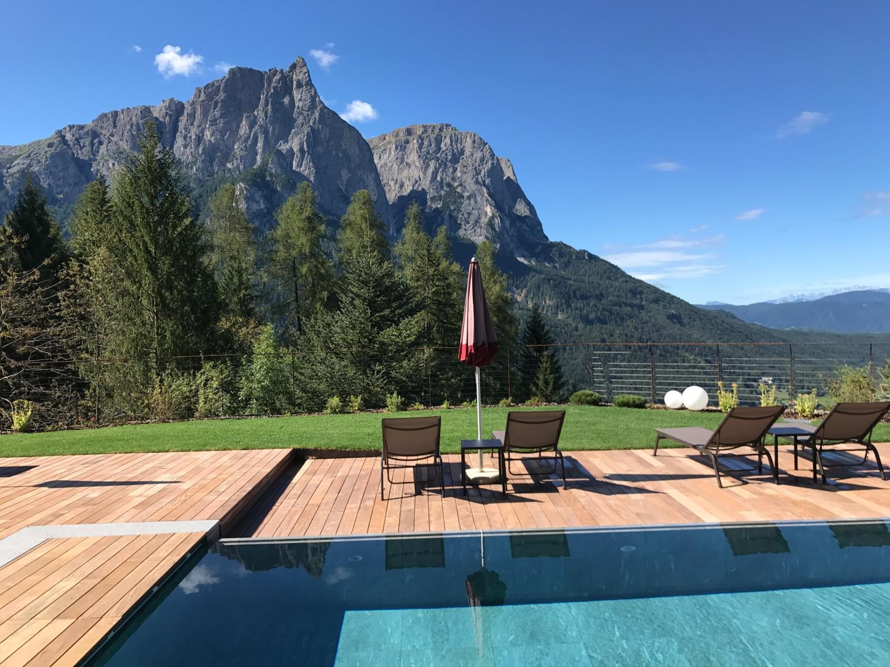 Where do I begin? Ingrid was attentive and warm. The view from our room was amazing. Housekeeping cleaned our room promptly while we had breakfast. As for breakfast it was great. The pool and spa were as immaculate. The hotel has 5 star amenities and service for 3 star price. It’s 10 min to Alpe di Suisi shuttle and 40 min downhill hike to Castelrotto. In fact a great loop trip if your up to it is to hike down to Castelrotto, bus to Ortisei, cable car up to Alpe di Suisi, hike to Compatsch and bus to entrance and 10 min walk back to hotel.