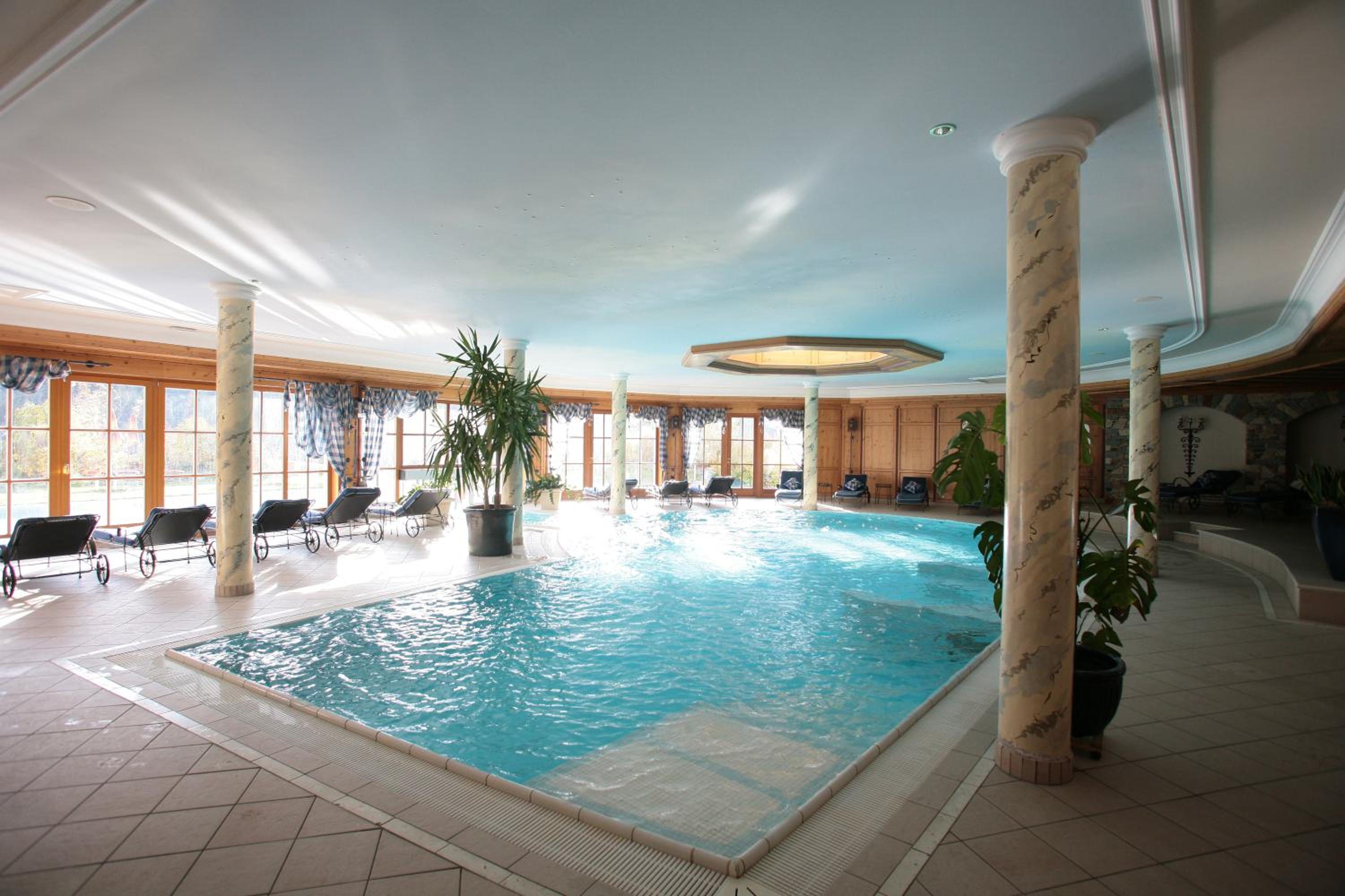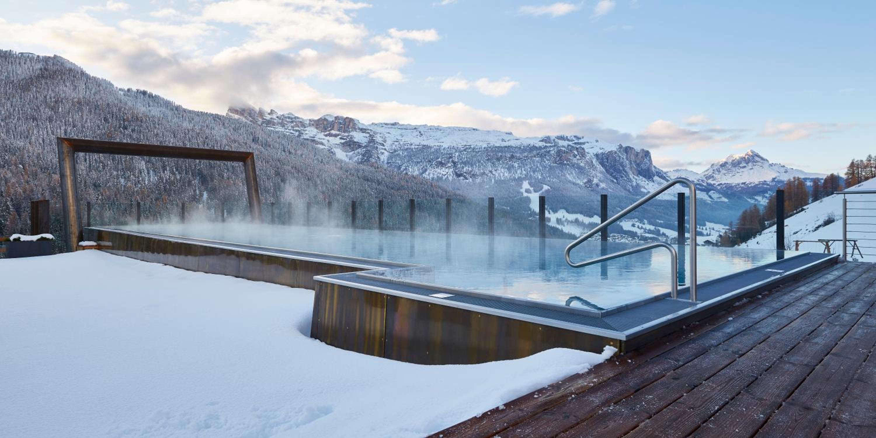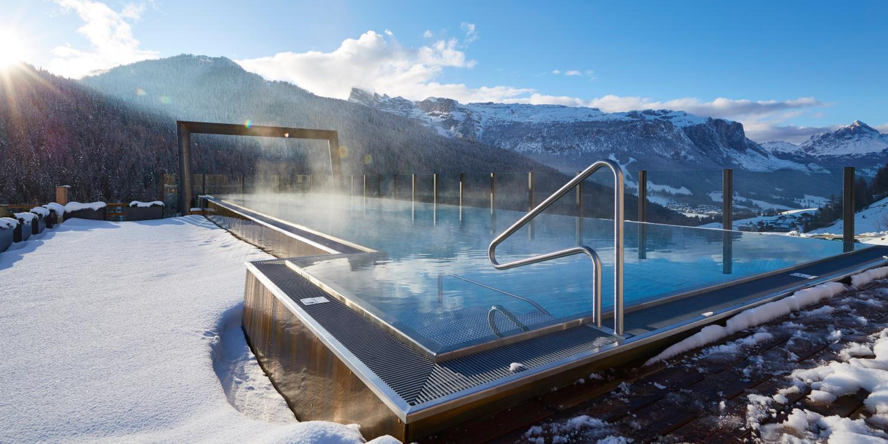Stunning Views of the Dolomites: Enjoy breathtaking views from the comfort of your room or while taking a dip in one of the hotel's 2 swimming pools.
