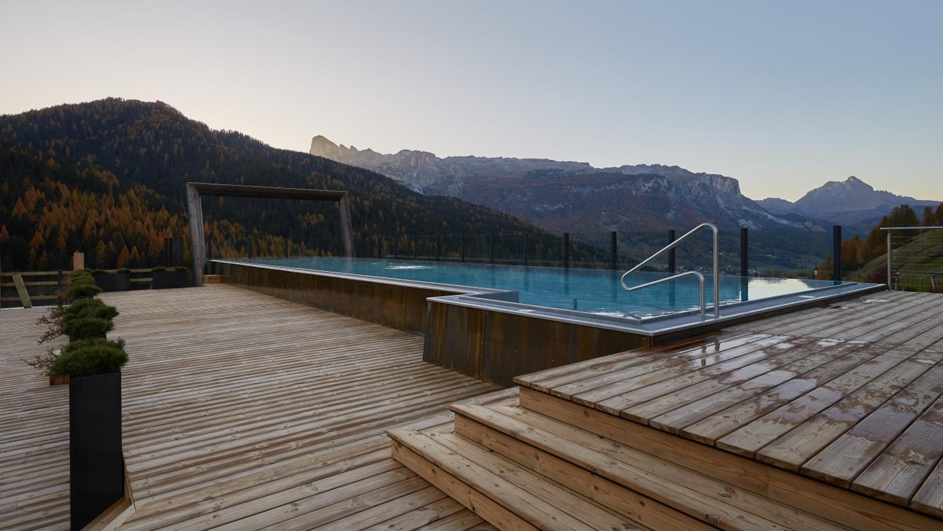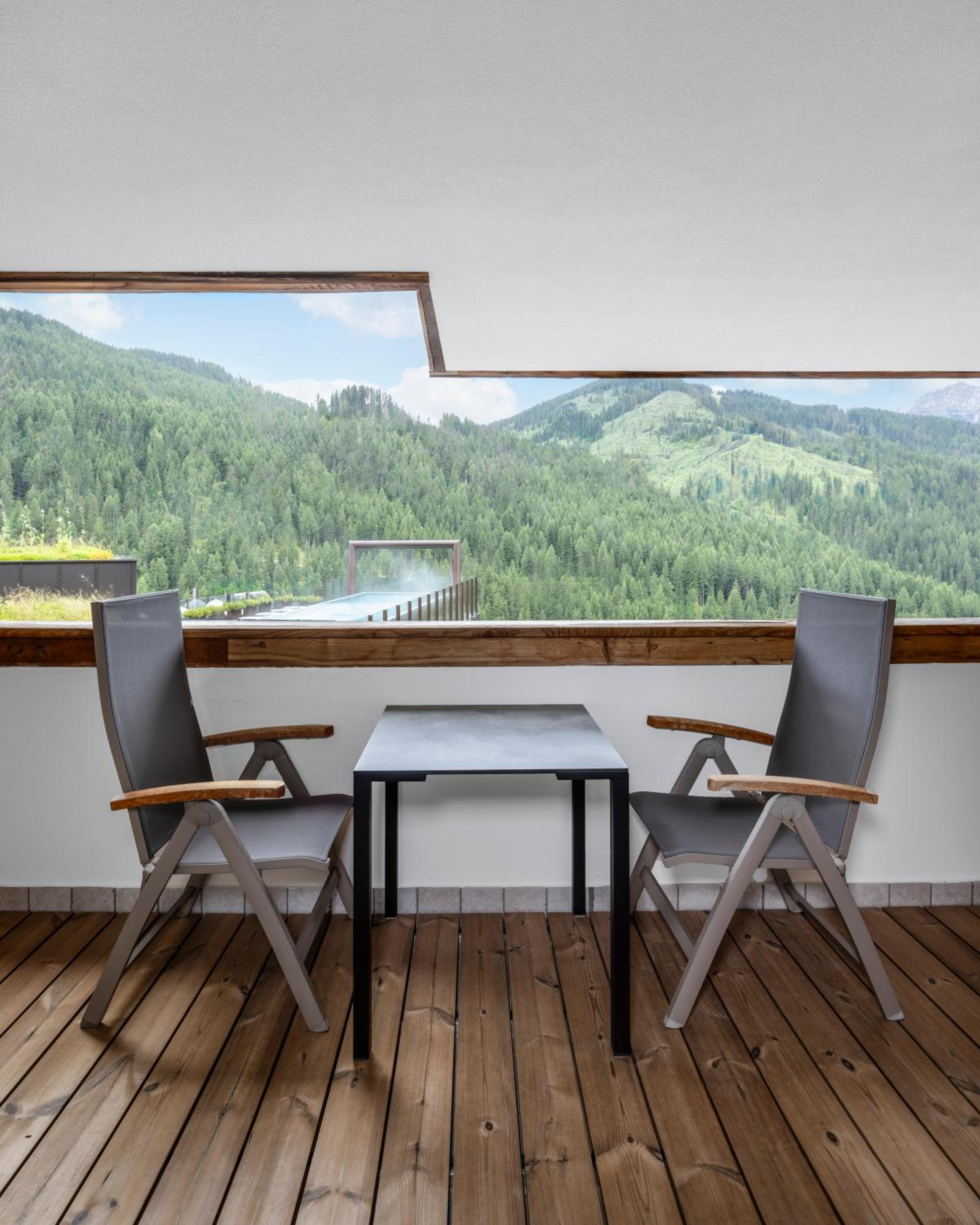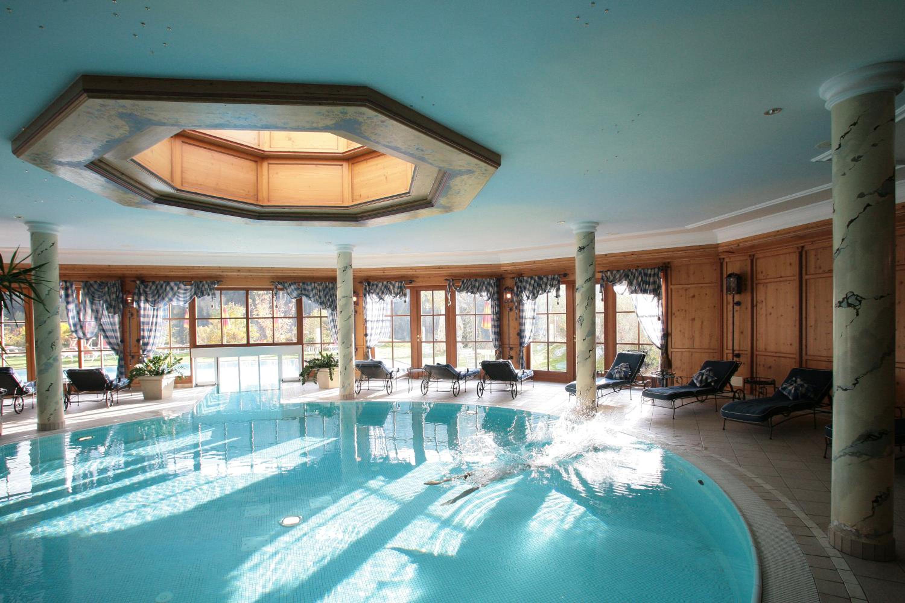 Stunning Views of the Dolomites: Enjoy breathtaking views from the comfort of your room or while taking a dip in one of the hotel's 2 swimming pools.