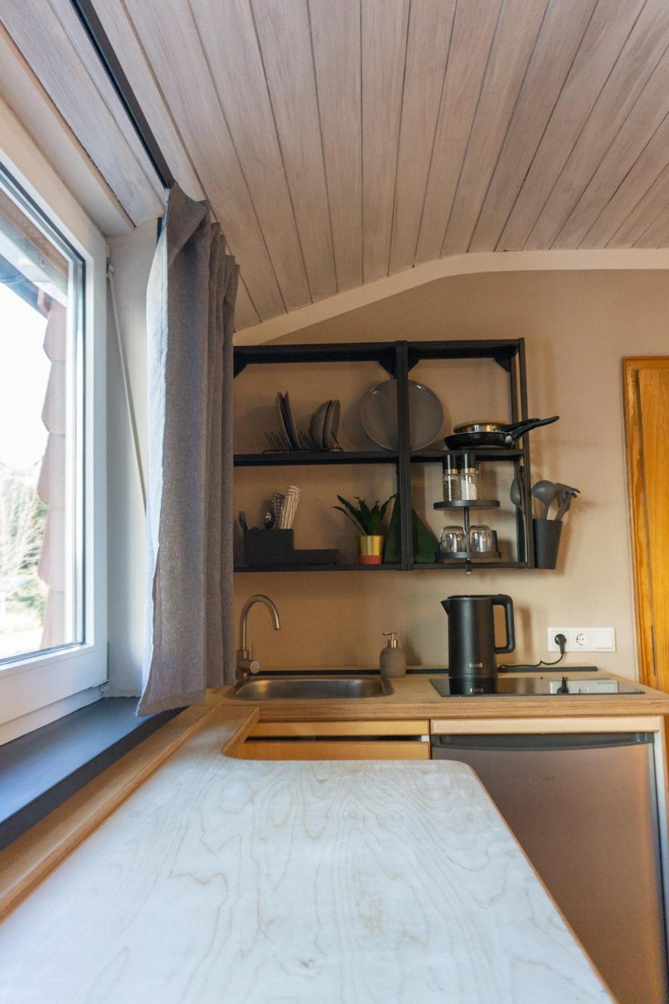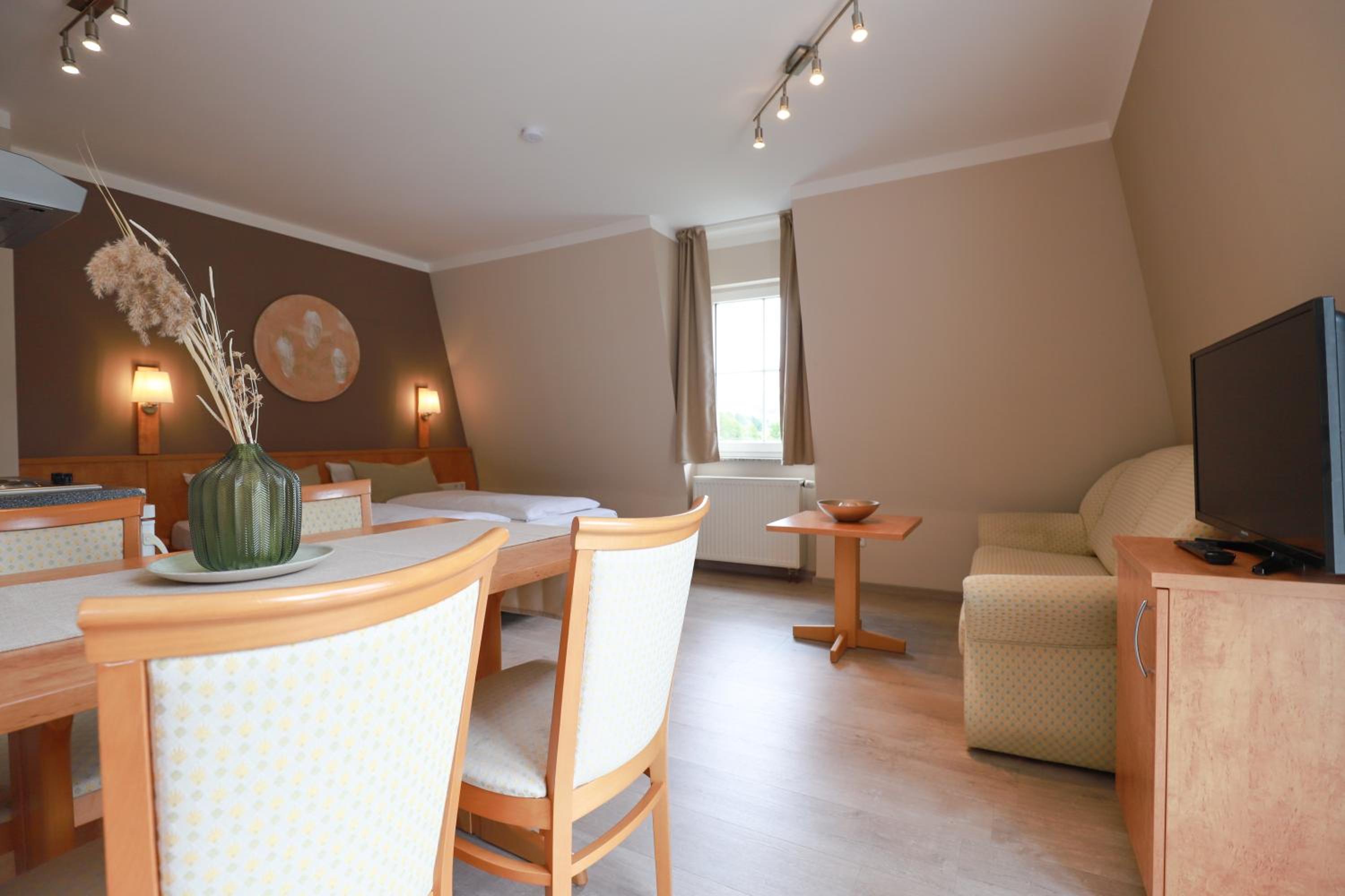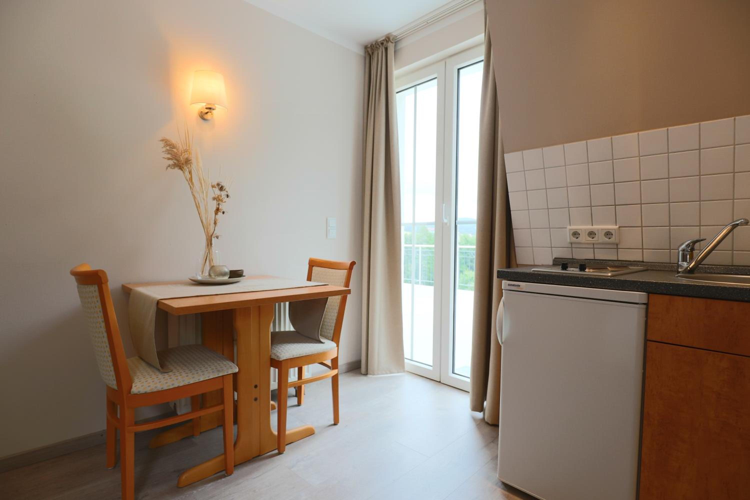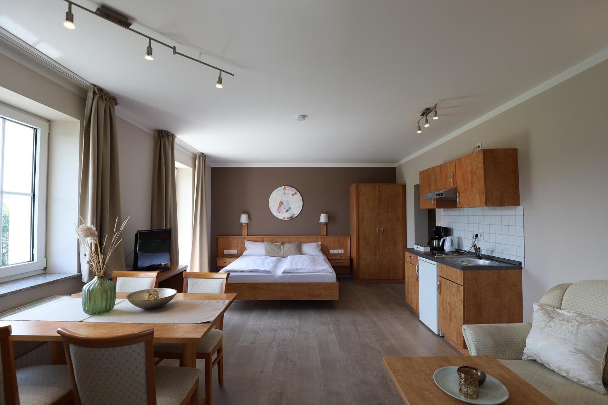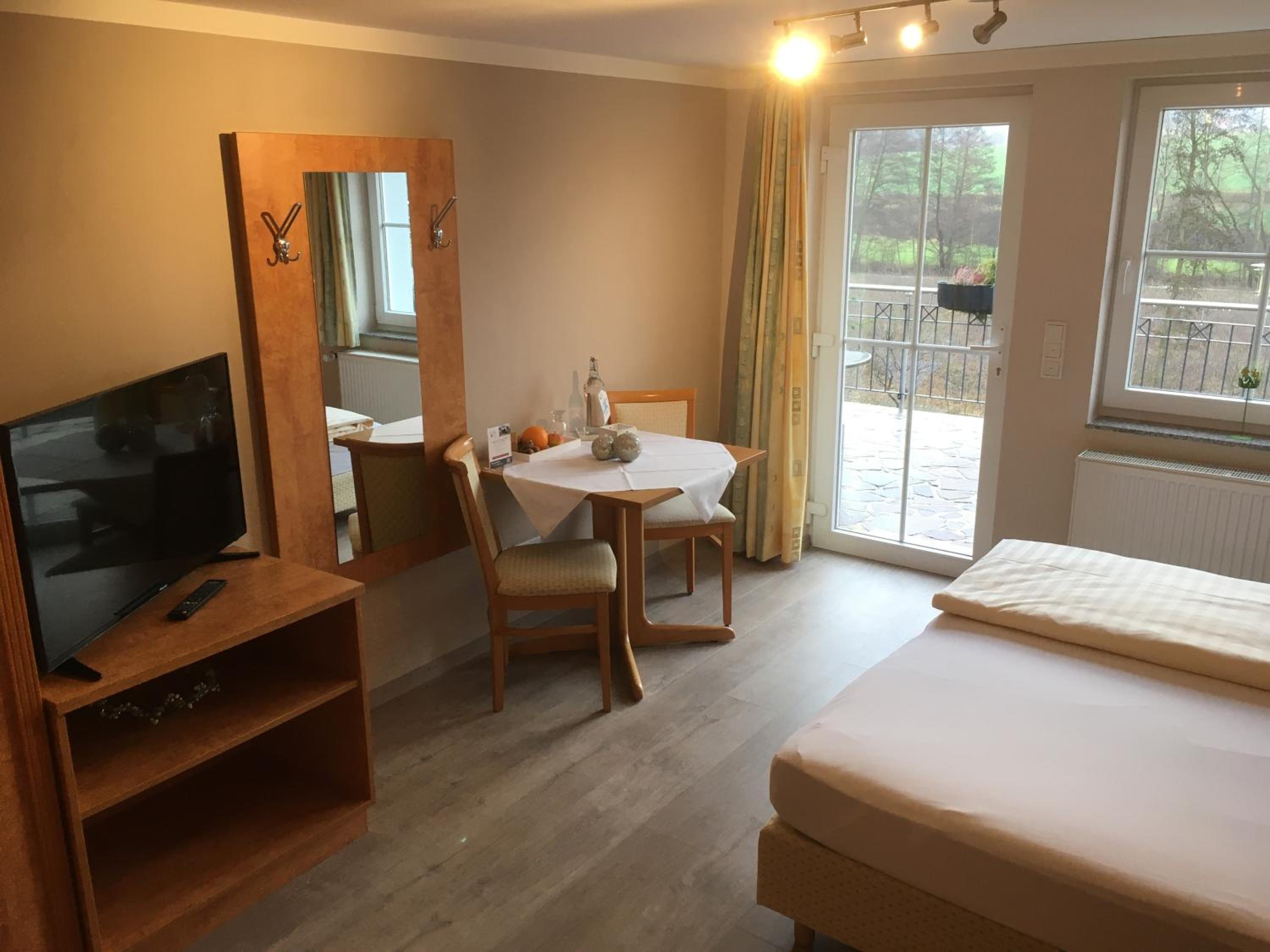 Frühstück kein Buffet aber erst klassig! Kleine Küchenzeile, gut ausgestattet. Daunenkissen im Bett! Einkaufsmöglichkeiten in der Nähe.