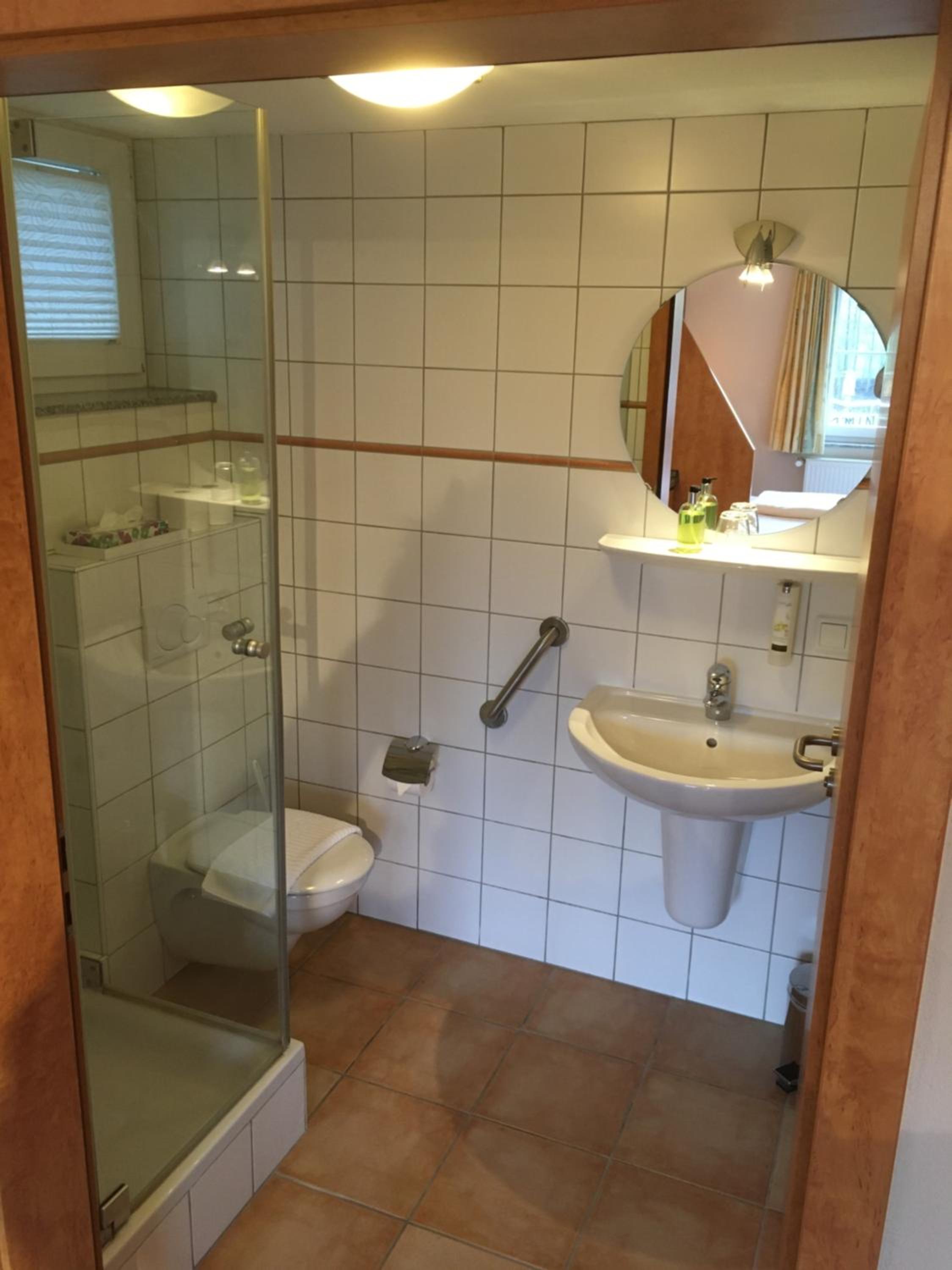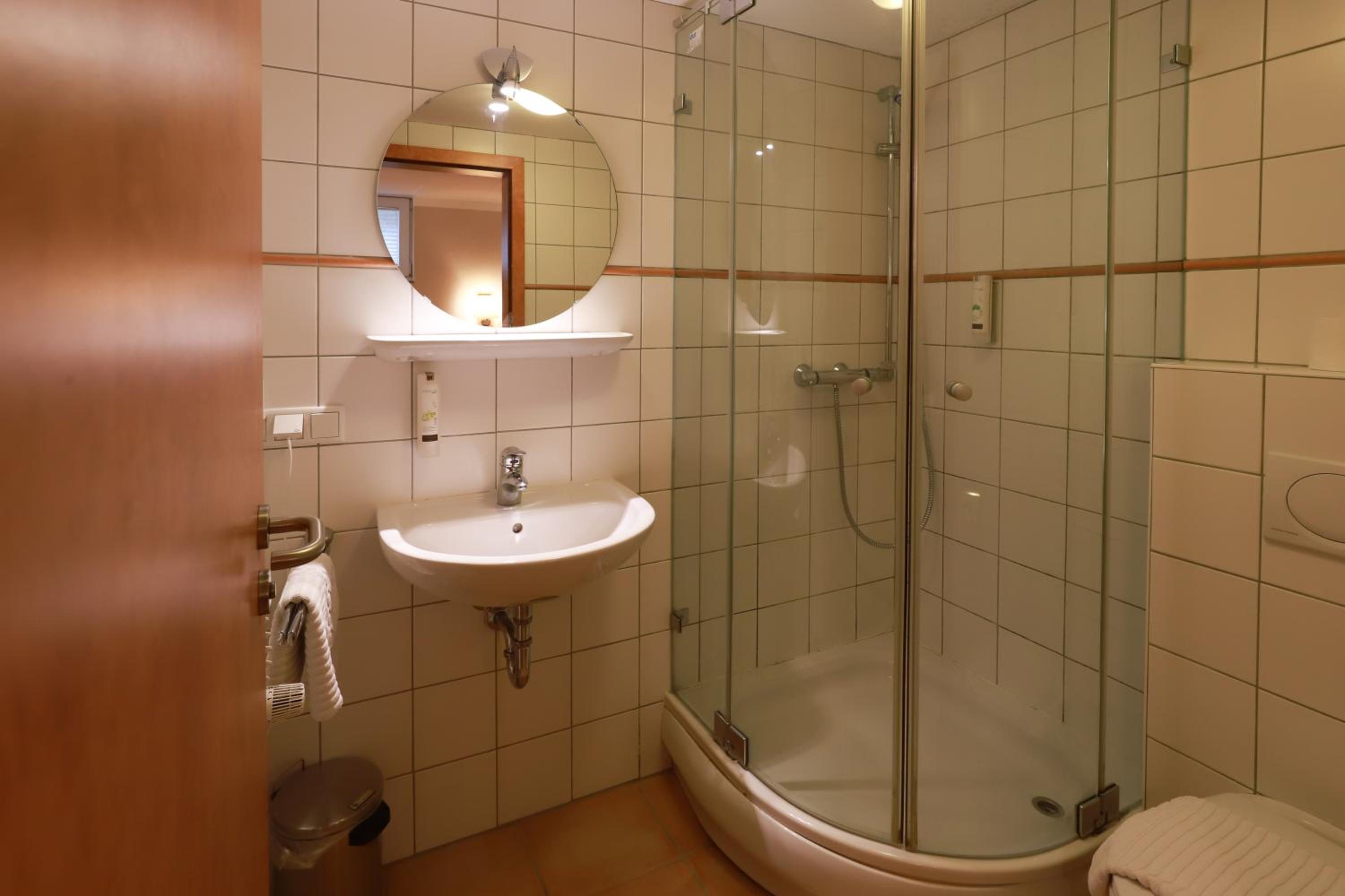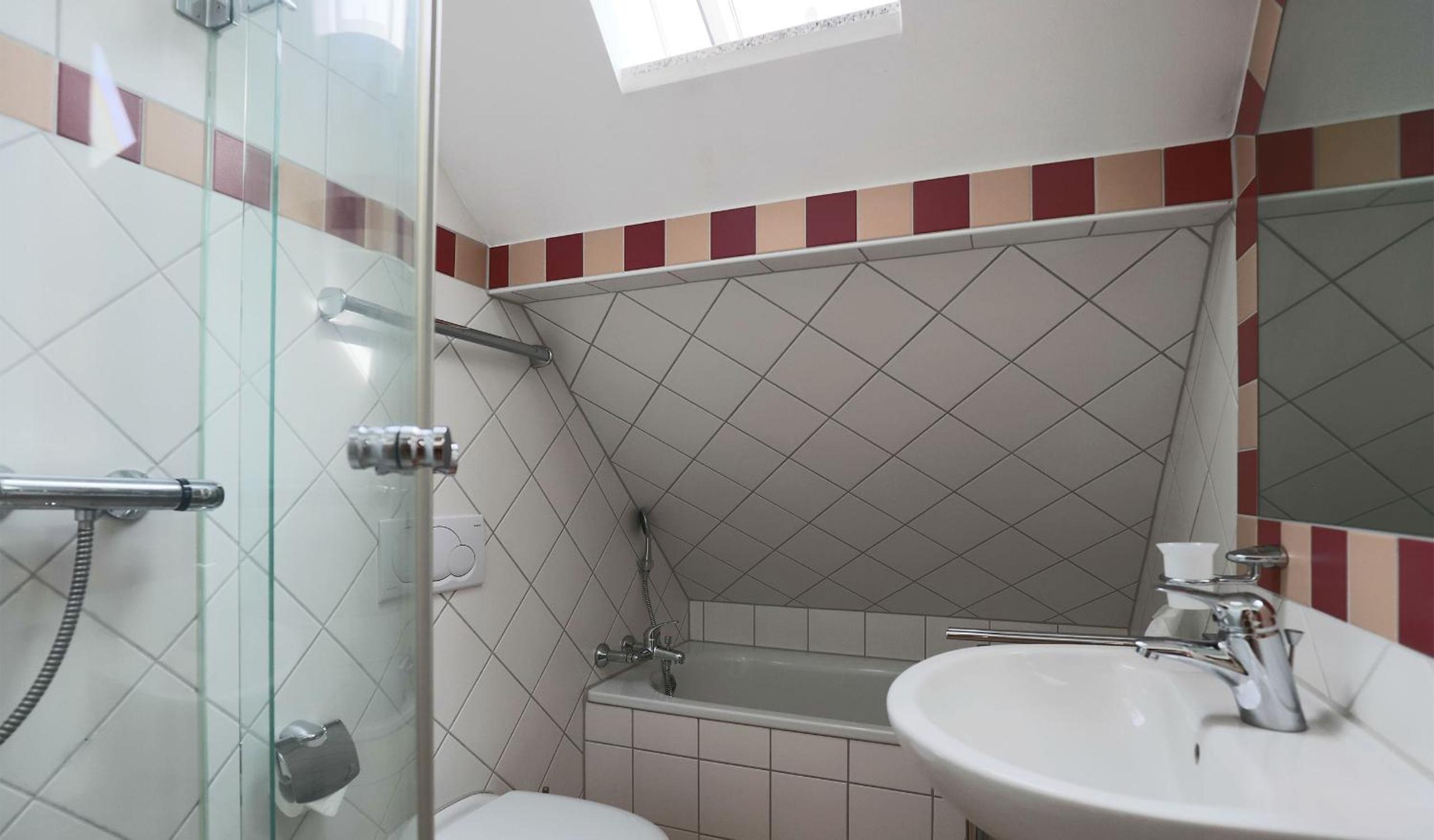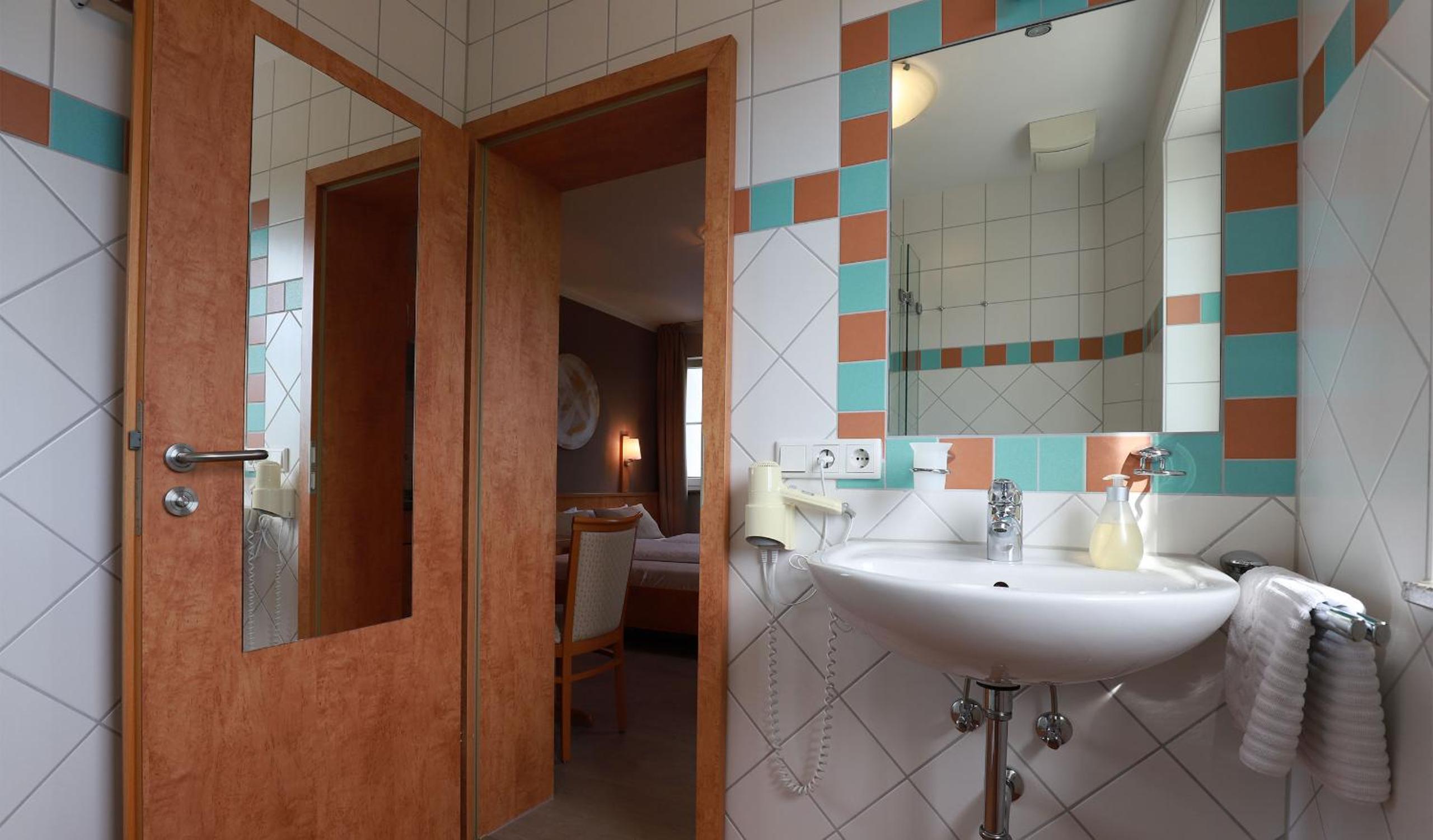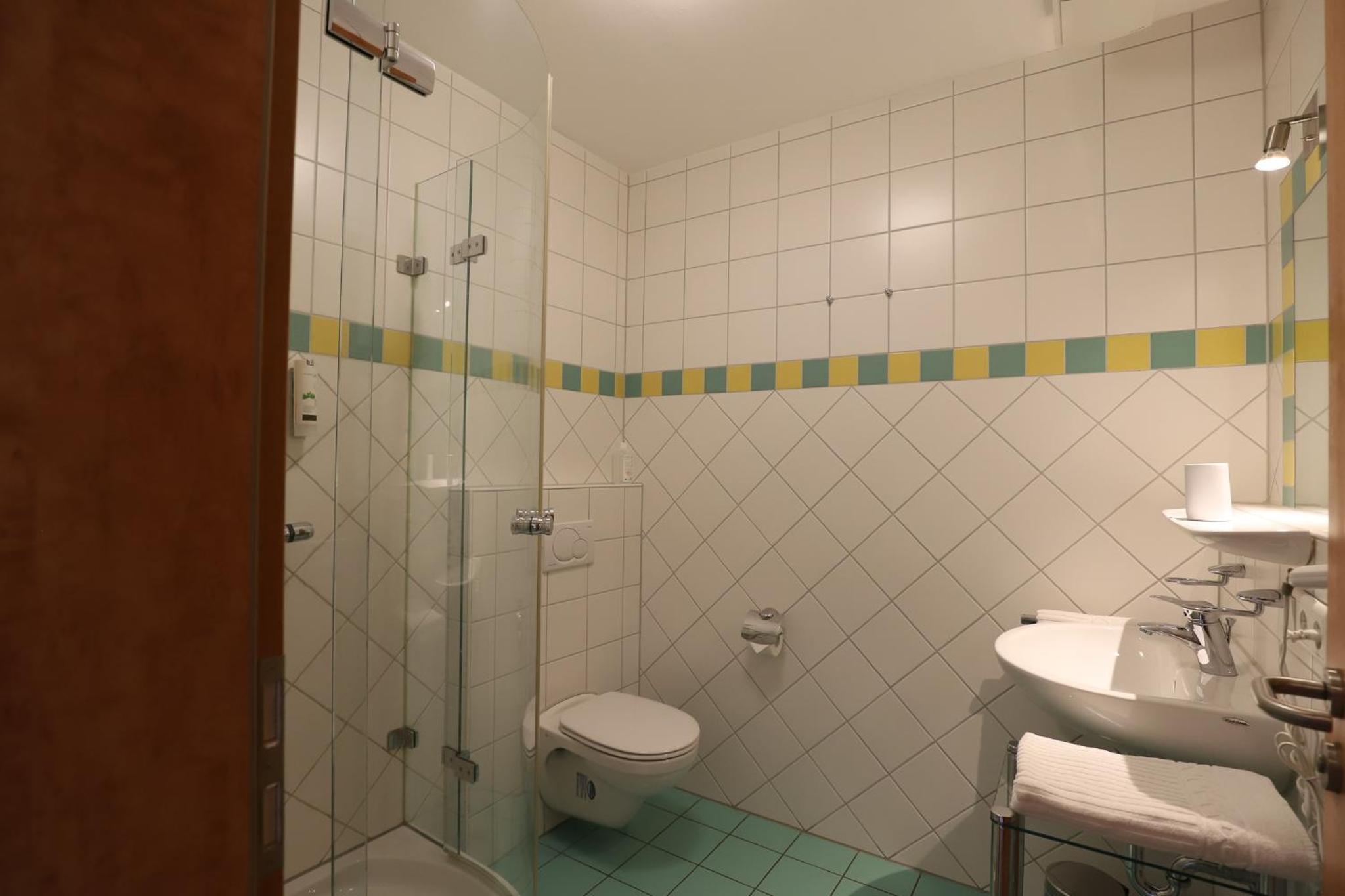 Sehr kleines Bad, extrem kleines Waschbecken, bei Ankunft ungeheiztes Zimmer im Winter