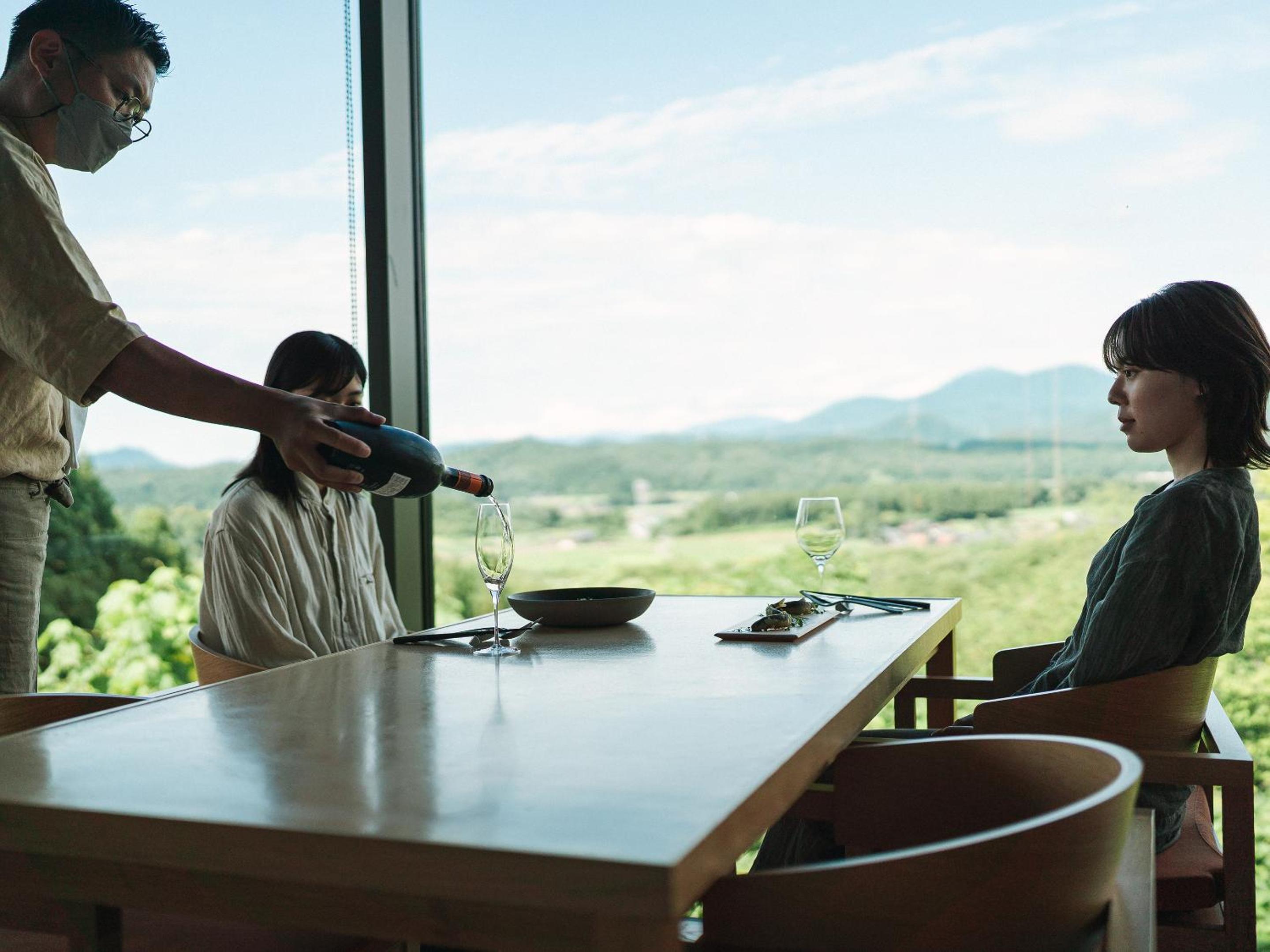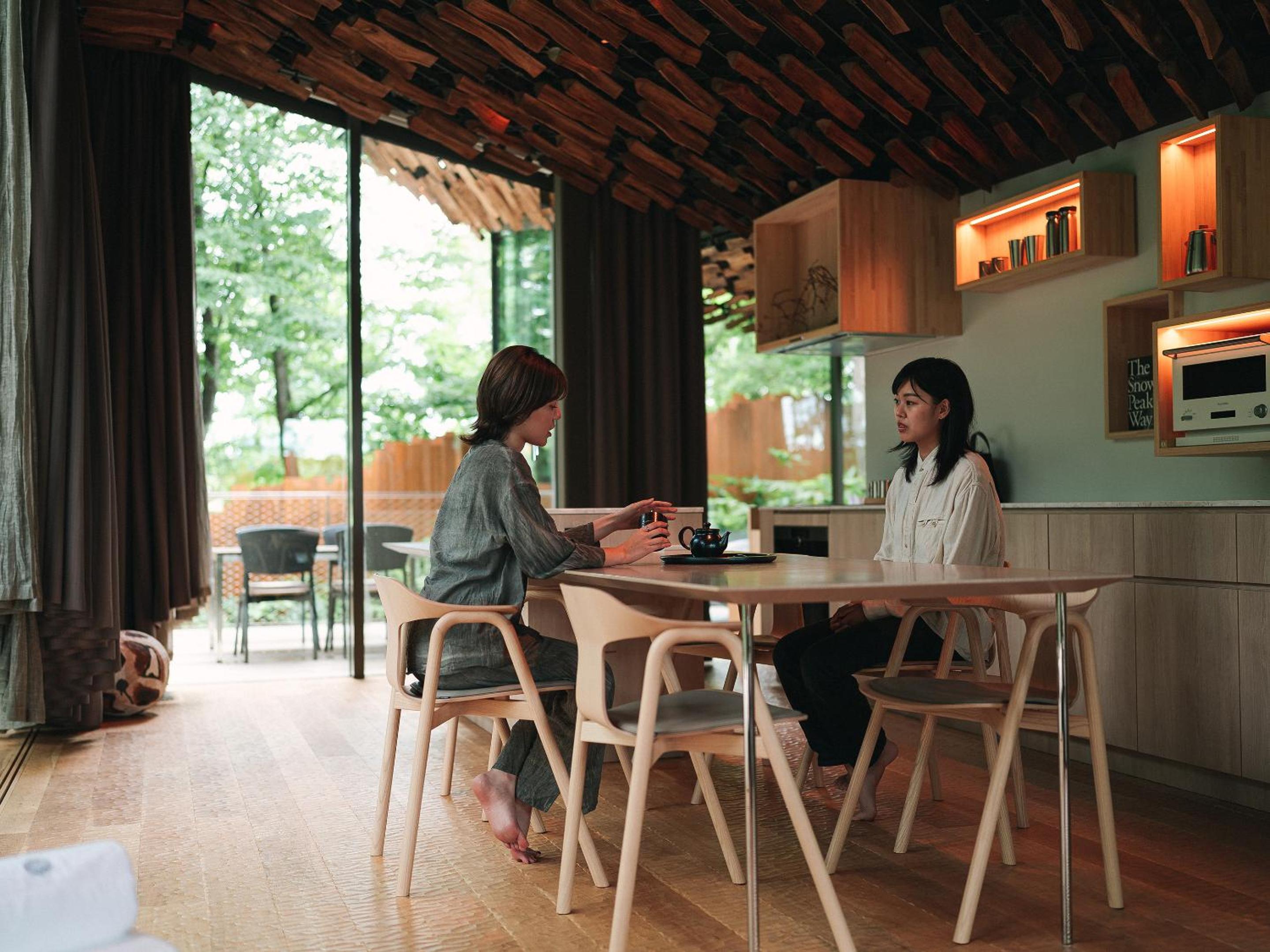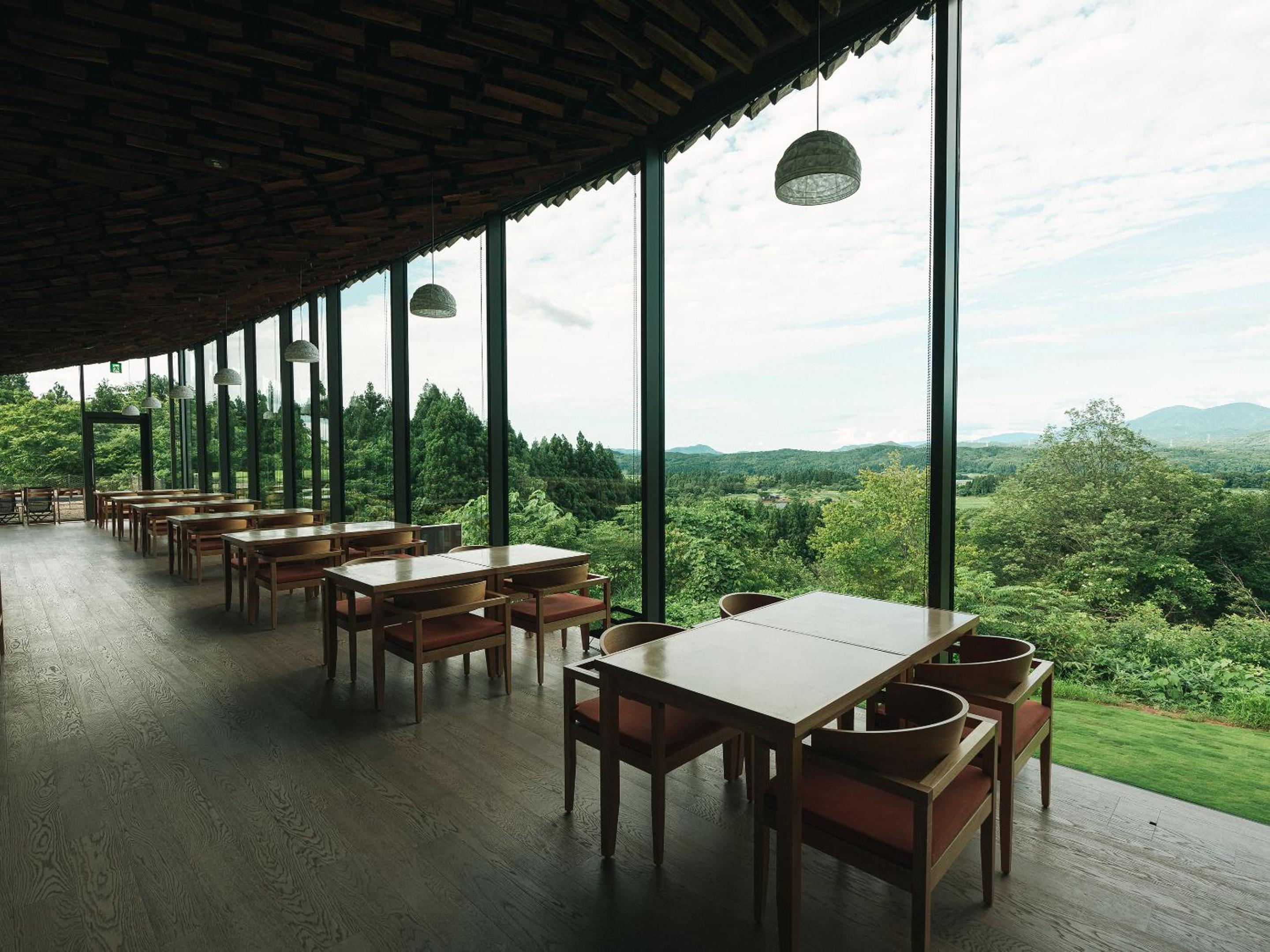 Enjoy breathtaking mountain views at SNOW PEAK FIELD SUITE SPA HEADQUARTERS while indulging in delicious French cuisine at the on-site restaurant.