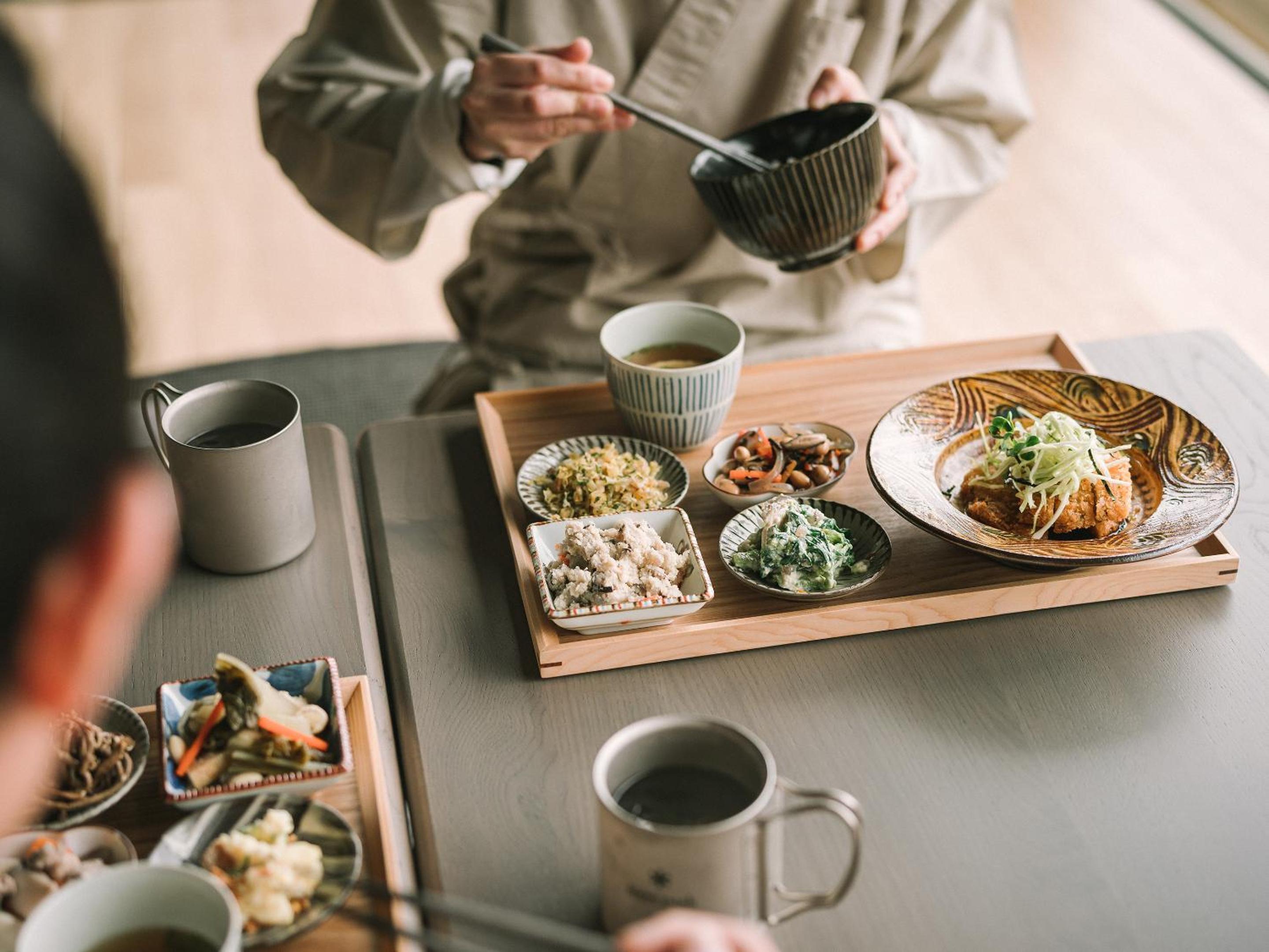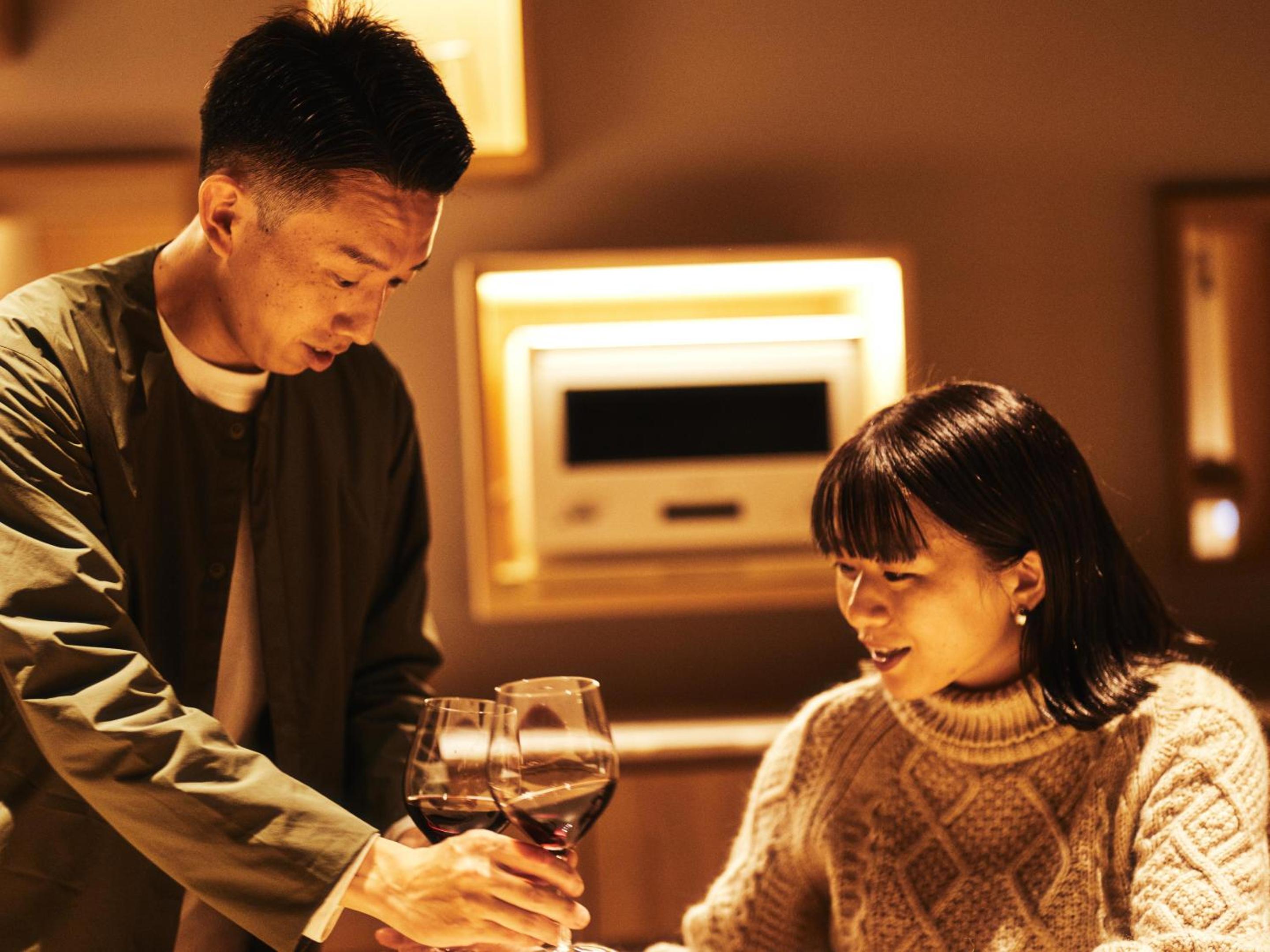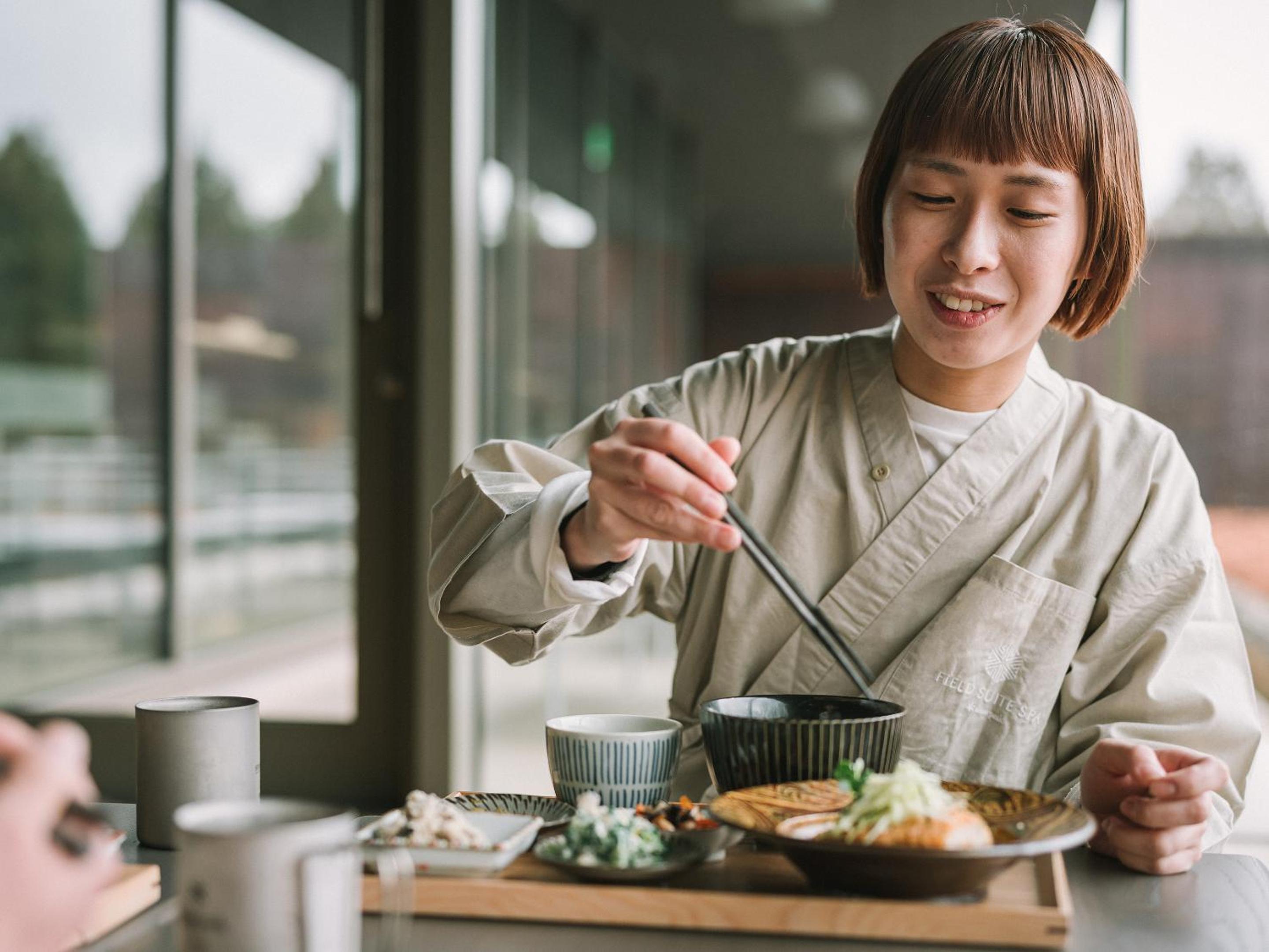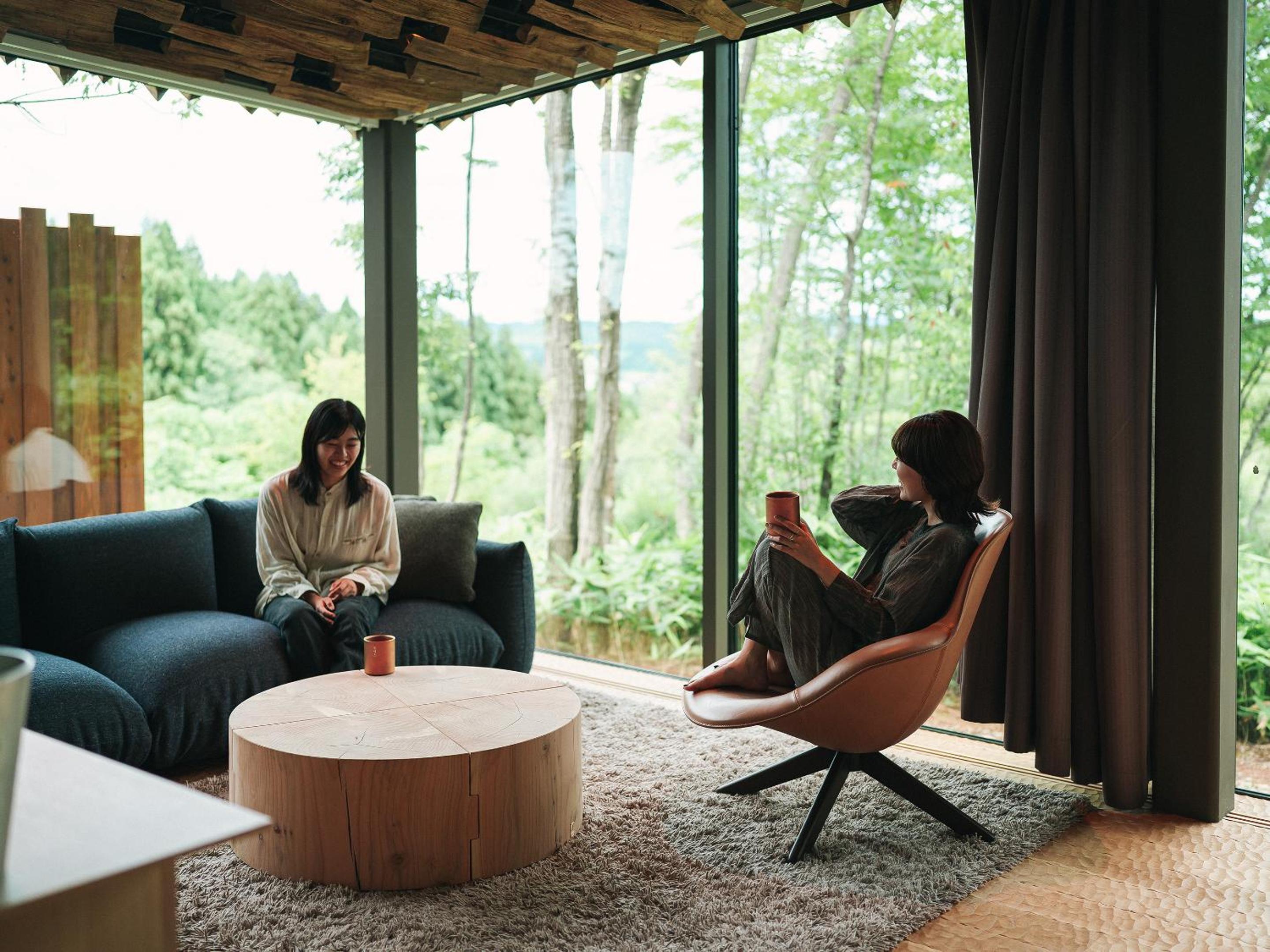 Enjoy breathtaking mountain views at SNOW PEAK FIELD SUITE SPA HEADQUARTERS while indulging in delicious French cuisine at the on-site restaurant.