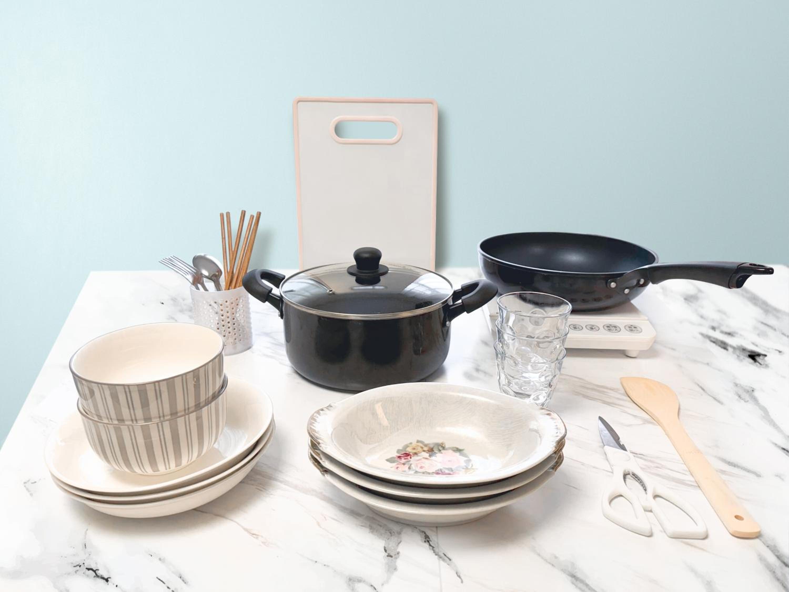 カトラリーが全くなく、乾燥機が無いので洗濯したものをコインランドリーに結局持っていかないといけない