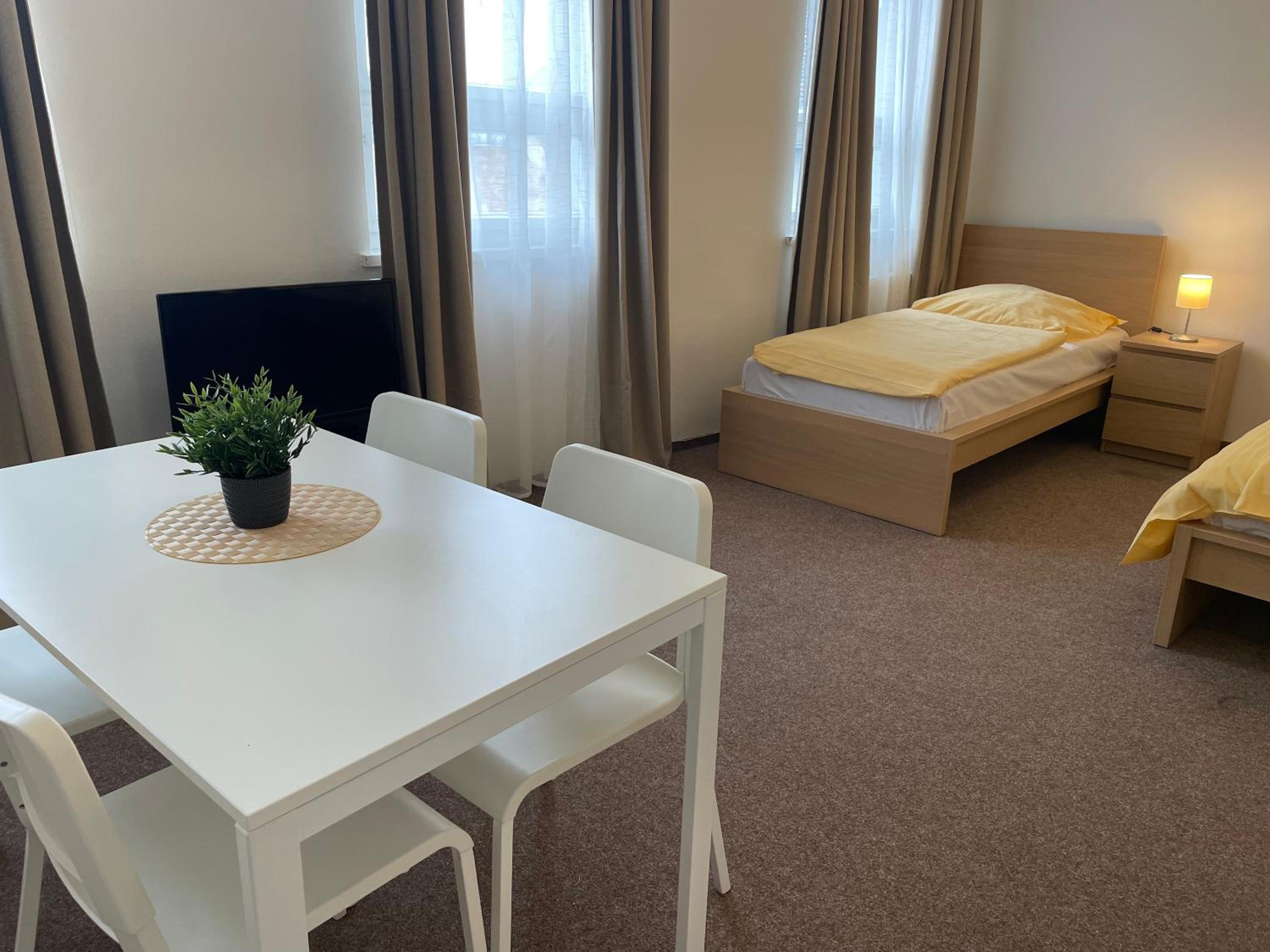 Functional large room (the studio apartment). Fine for an overnight with the bicycles parked securely in the hotel lobby.