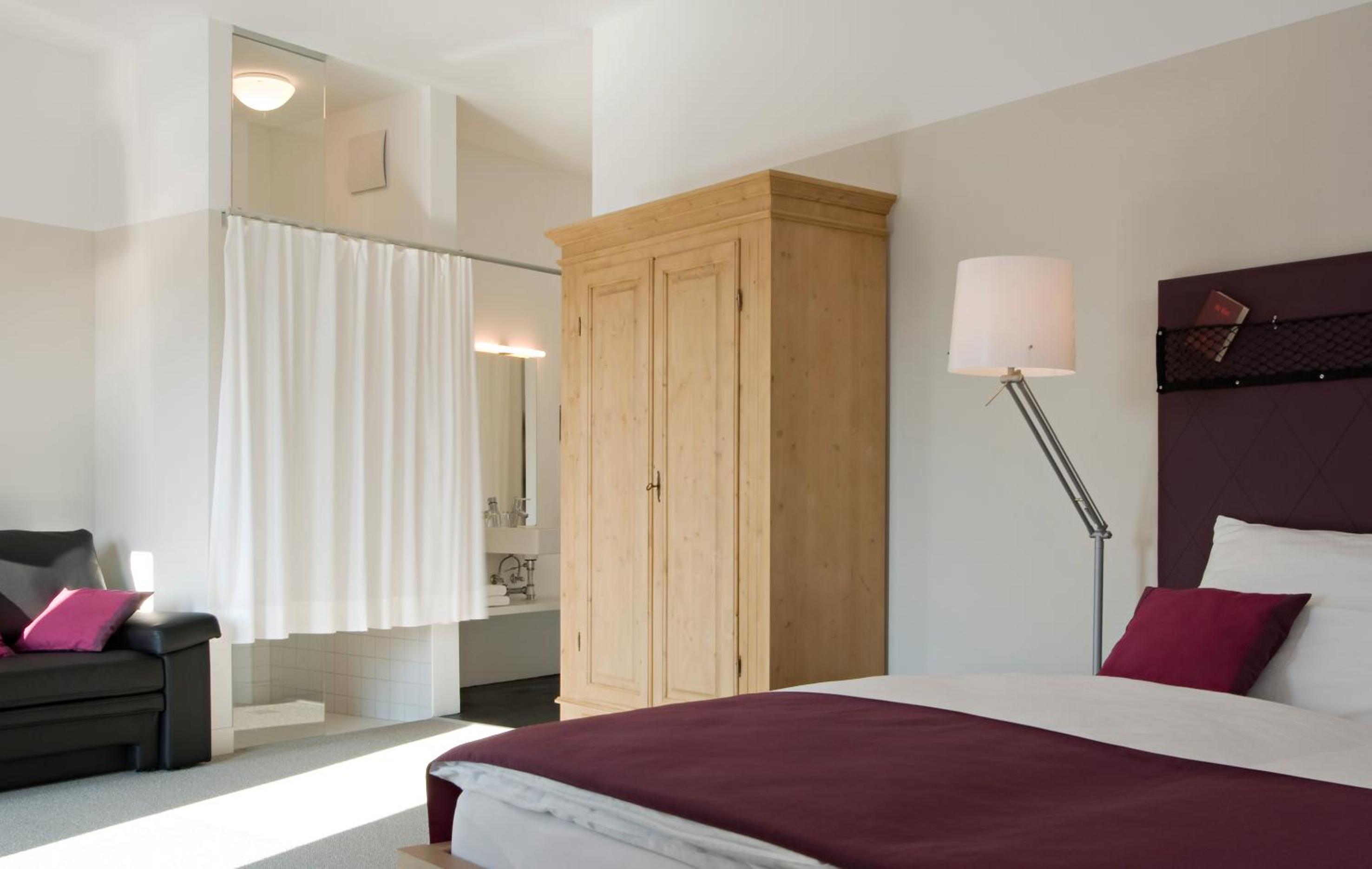 Tolles Frühstücksbuffet! Das Personal ist ausgesprochen freundlich. Große Zimmer mit einem offenen Badezimmer, die Dusche kann aber mit Vorhängen blickdicht gemacht werden. Kurzer Weg zur gegenüberliegenden Vinothek in der alten Schmiede. Auch mit der Bahn sehr gut erreichbar, Bahnhof ist 5 Minuten entfernt