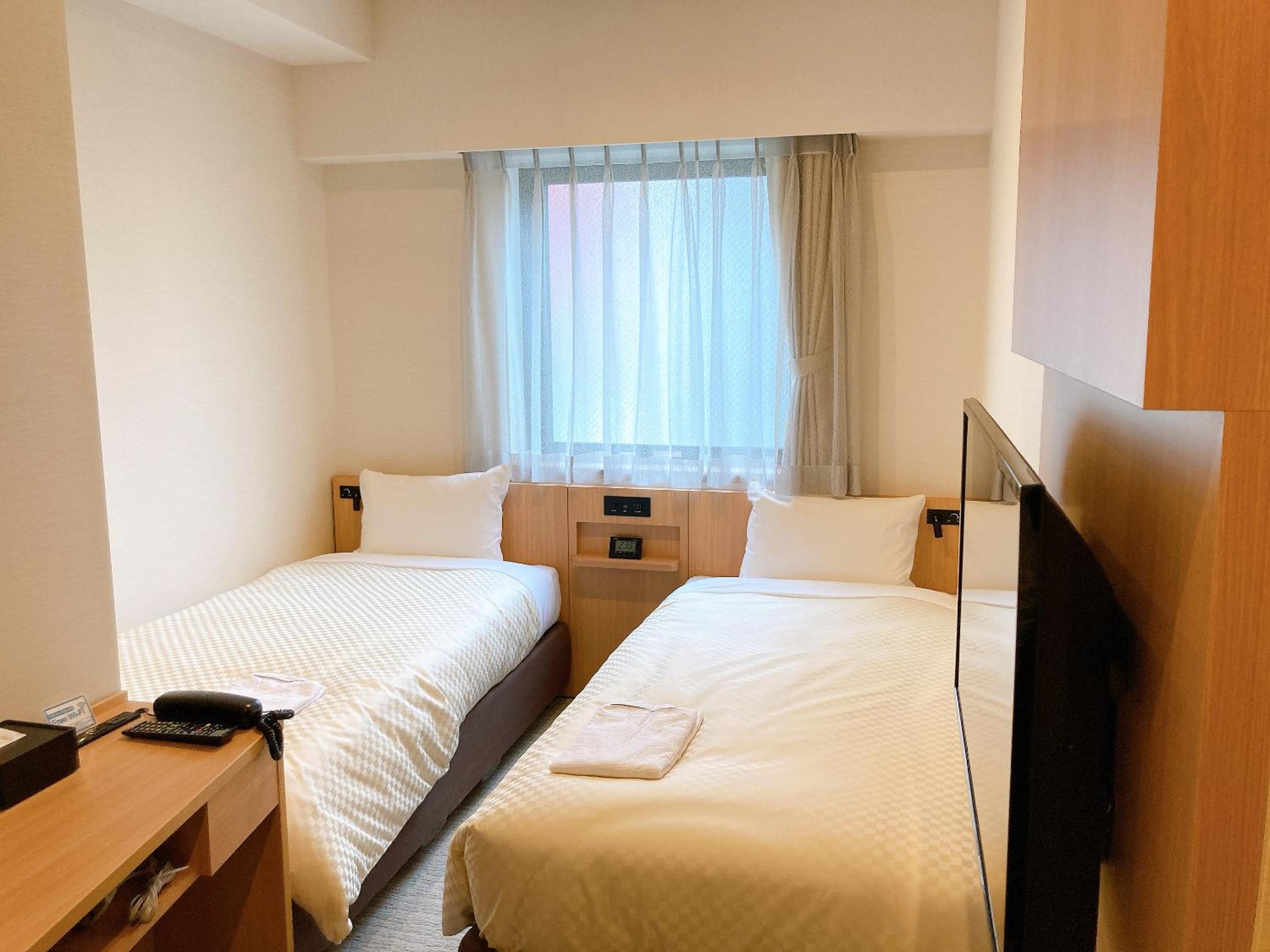 Aún sabiendo que es frecuente que las habitación en Tokio suelen ser pequeñas, las habitaciones para dos personas con sus camas individuales se hacen muy pequeñas. No hay ningún tipo de armario y apenas hay espacio para colocar las maletas, porque ni siquiera las puedes meter debajo de la cama. El baño es claustrofóbico y estoy seguro que una persona más corpulenta que yo no cabe.