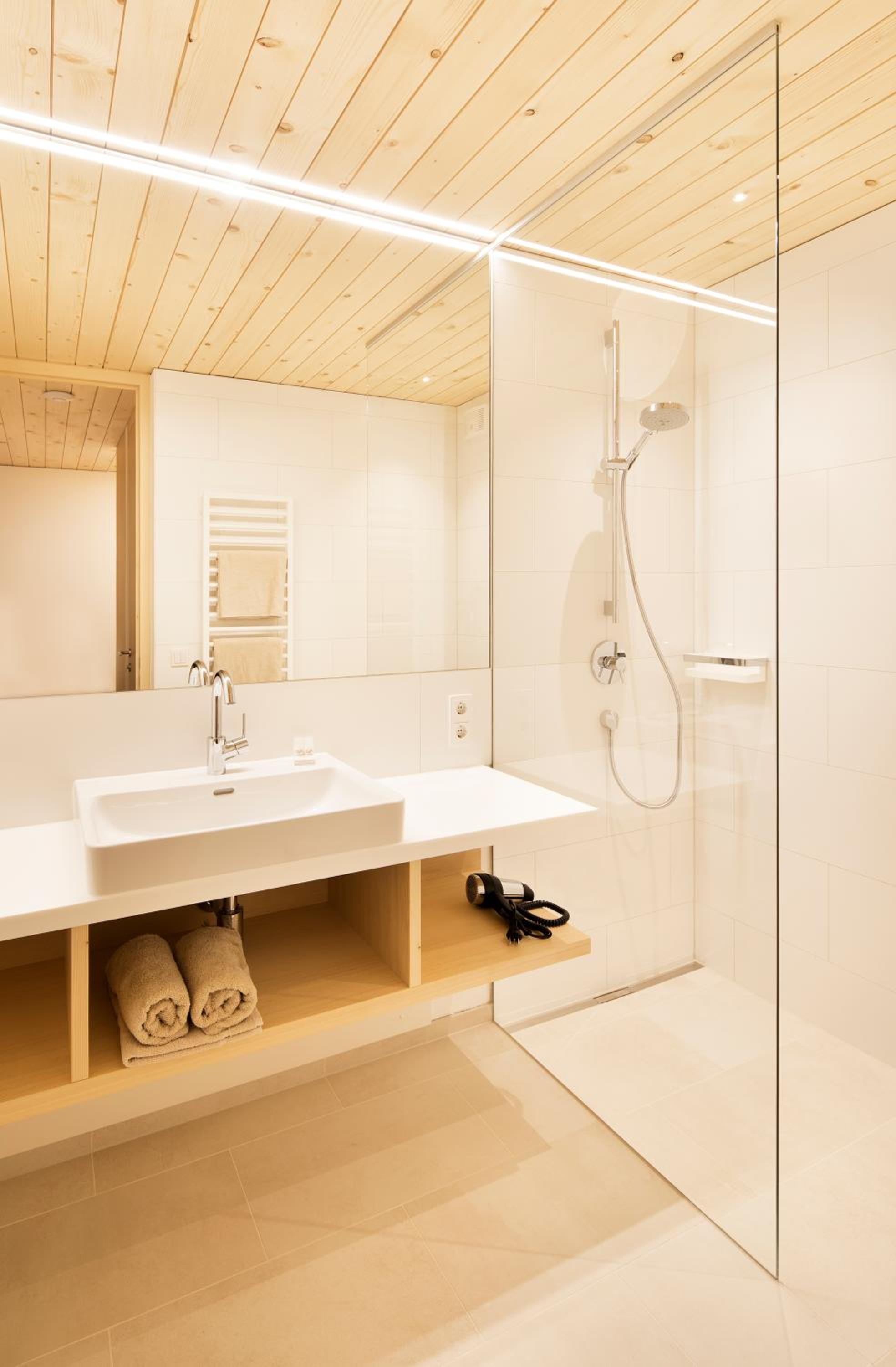 Stilvolle Einrichtung, gut geführtes Familienhotel, warmer Skikeller. Schöner Blick auf die Dorfkirche. Leckeres Frühstück. Regionale Produkte. Stimmiges Konzept.