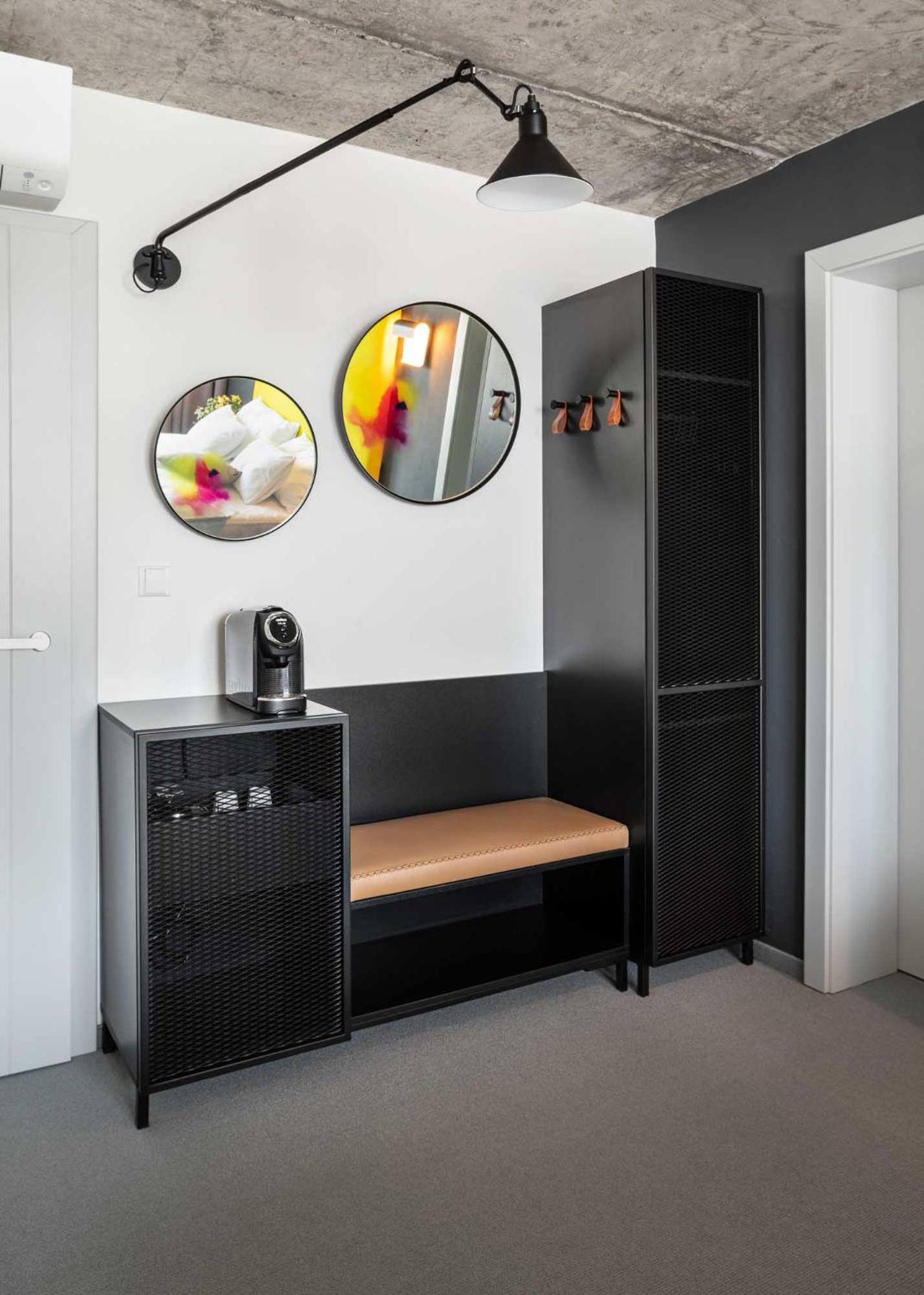 Hotel je moc hezký, líbil se mi koncept, kdy firma na výrobu má i vlastní hotel s bistrem a prodejnou. V ubytování je pak hezky vidět, co vlastně ve výrobě dělají. Přístup je velice moderní, kdy si všechno otevřete přes NFC v mobilu a aplikaci.