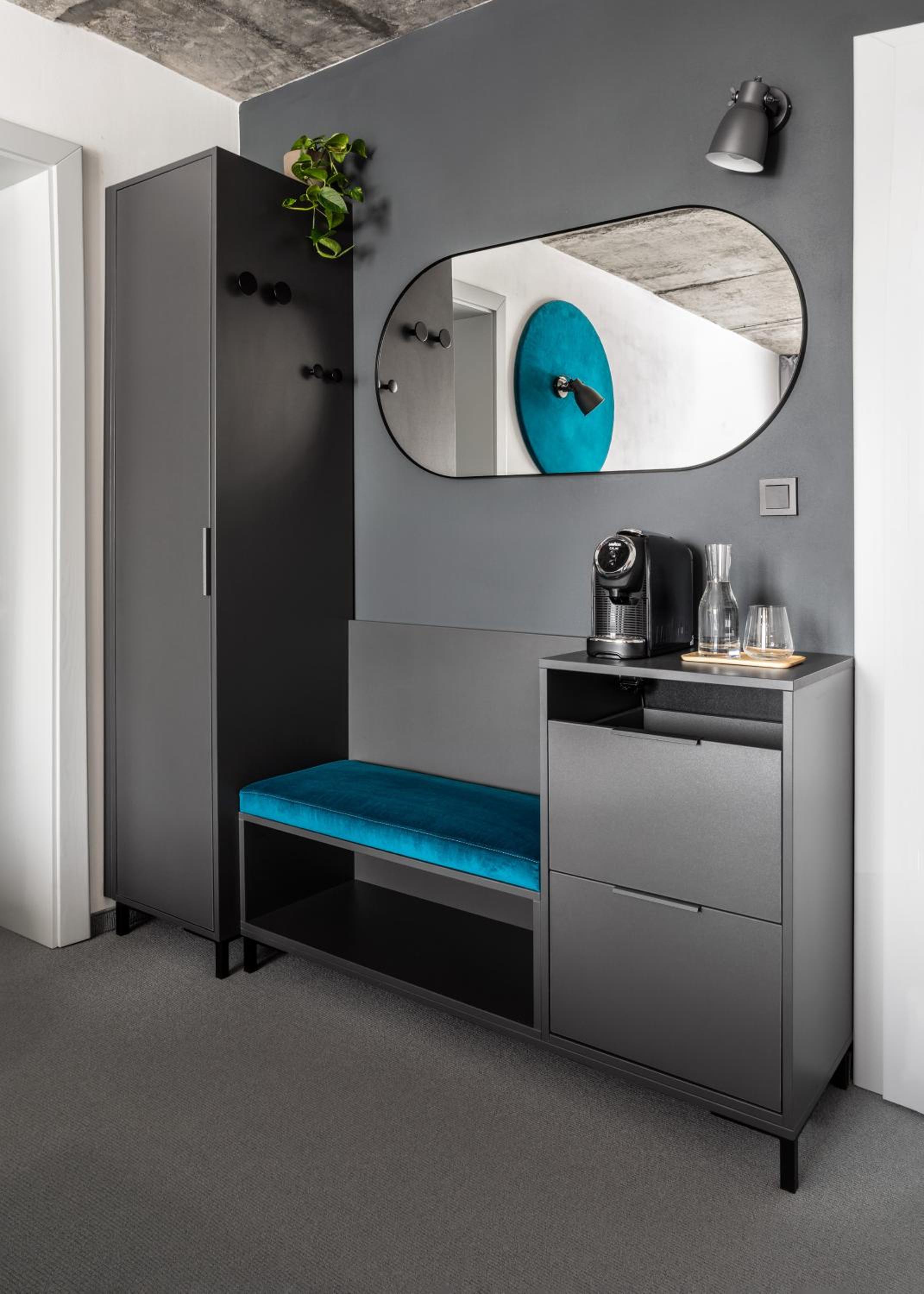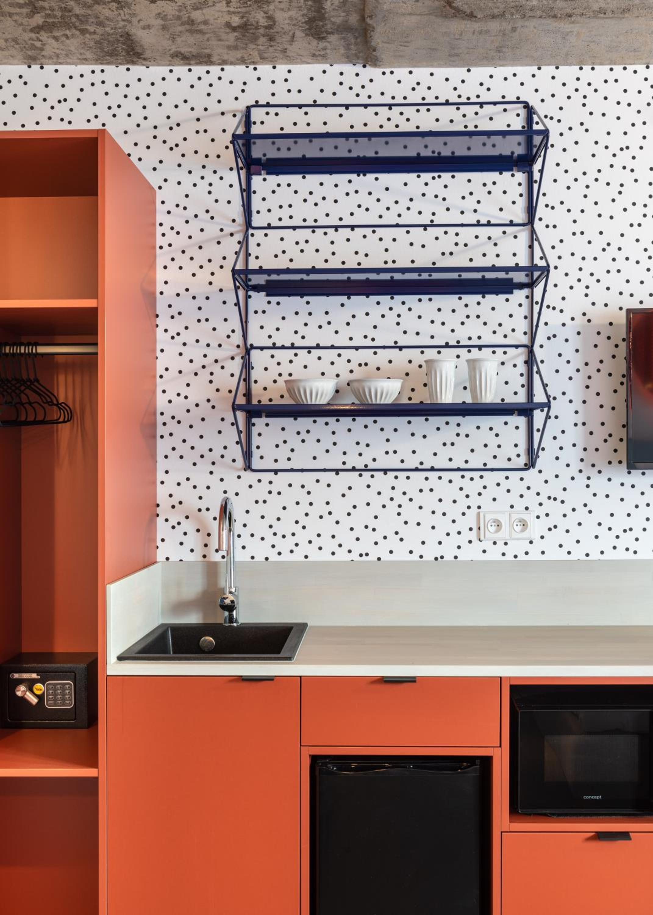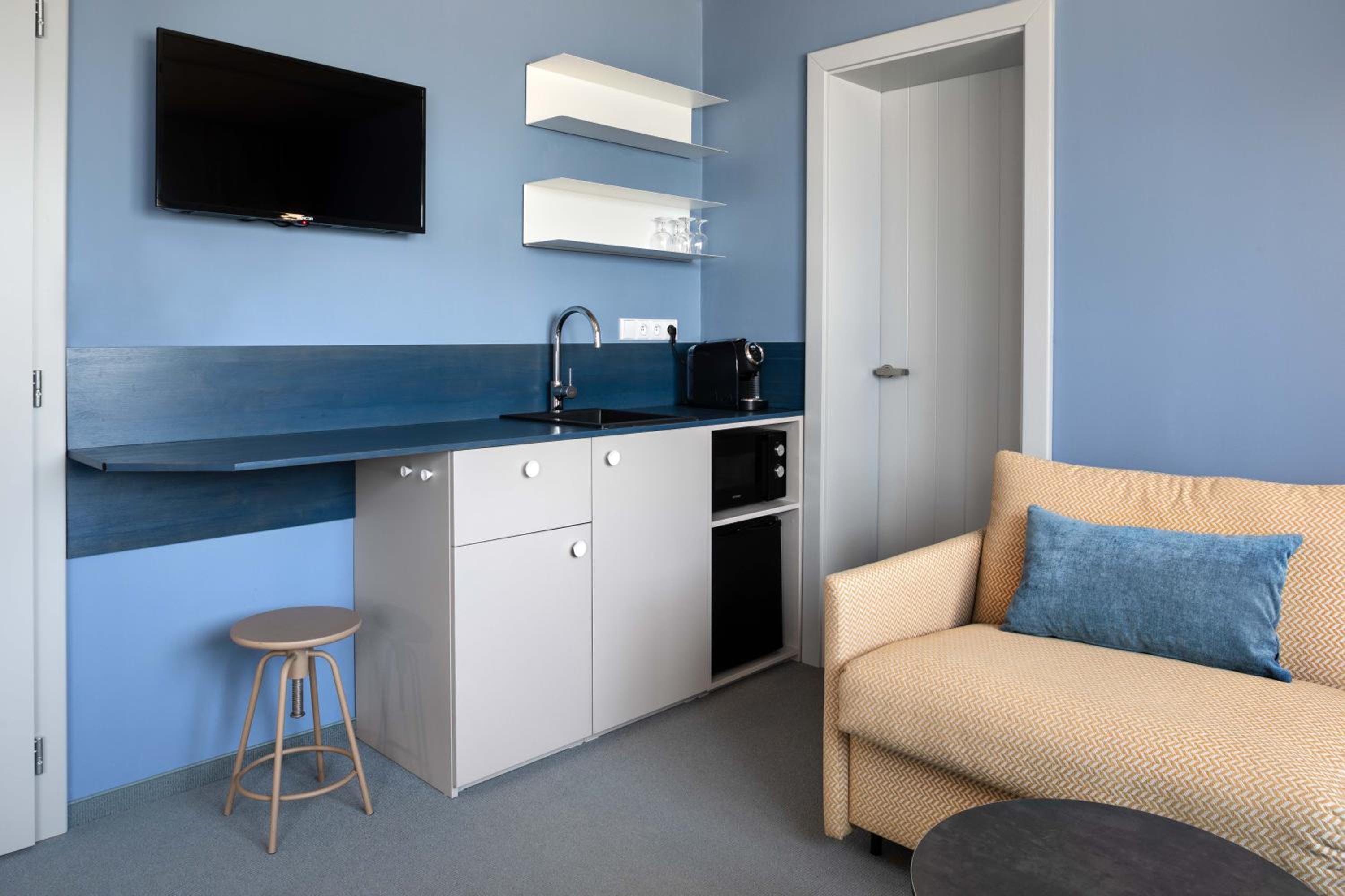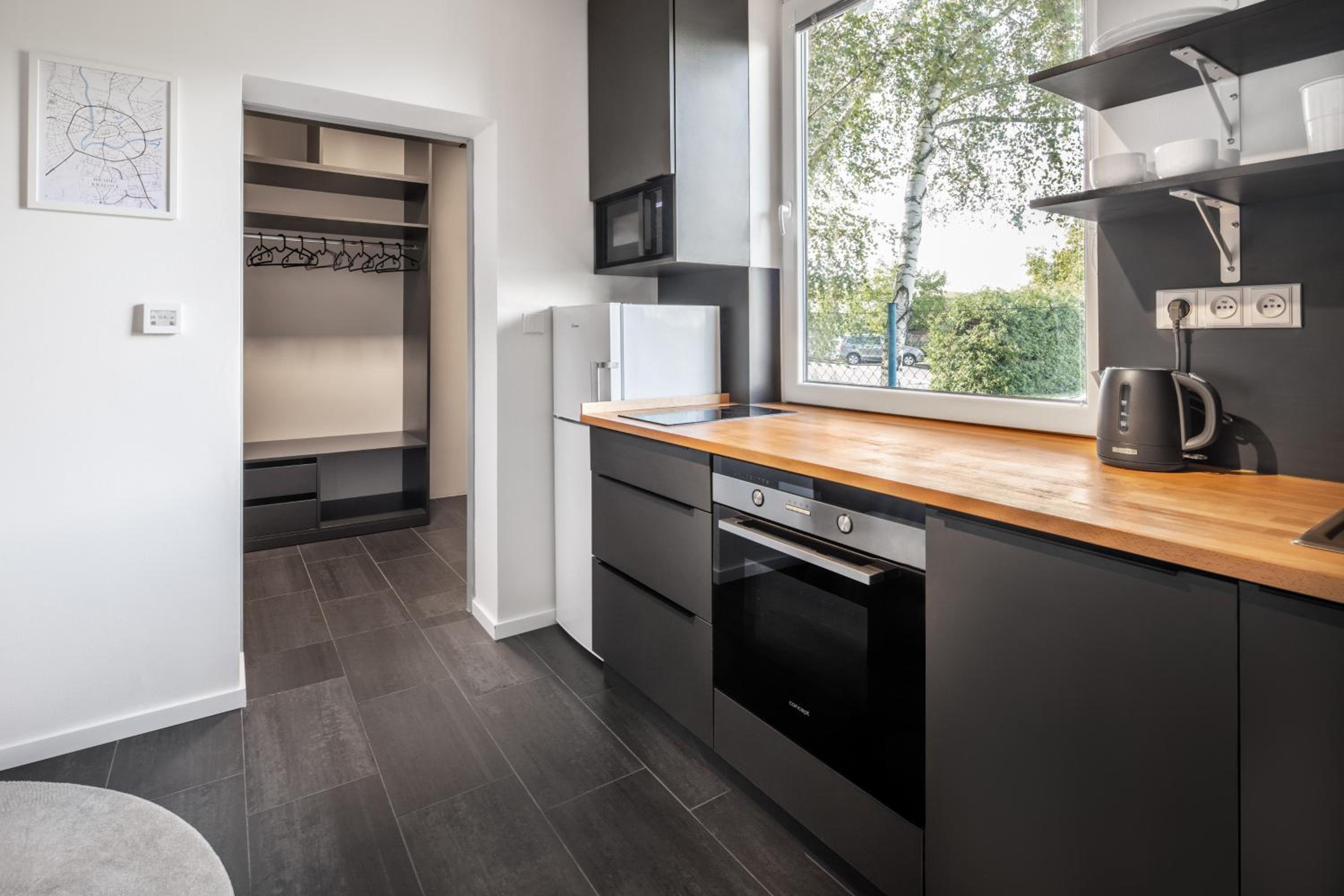 V pokoji vše prakticky a funkčně do detailu vyřešeno, nikde nechybí možnost na uložení potřeb nebo zavěšení čehokoliv. Zároveň v provedení sladěném s celým designem pokoje/hotelu. Pokoj útulný, pohodlný, klidná lokalita. Snídaně výborná, bohatá, podávaná s úsměvem.