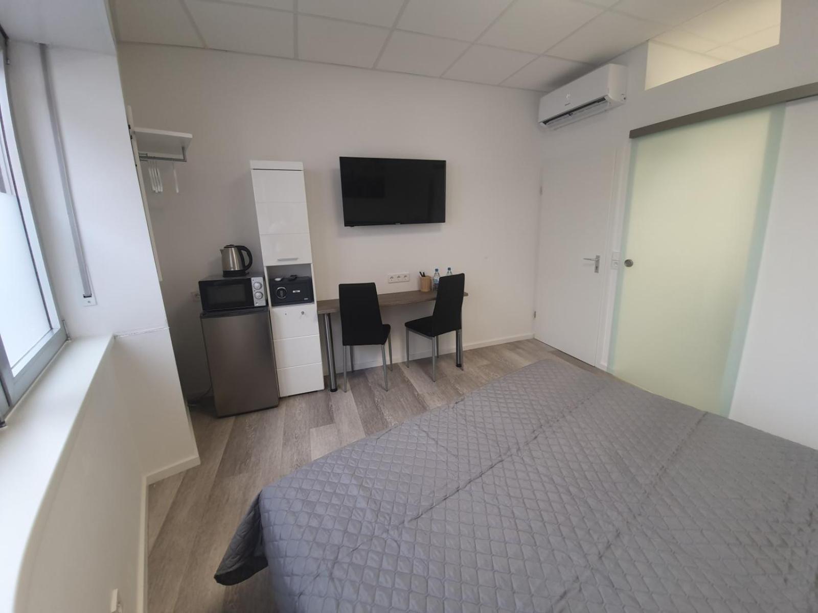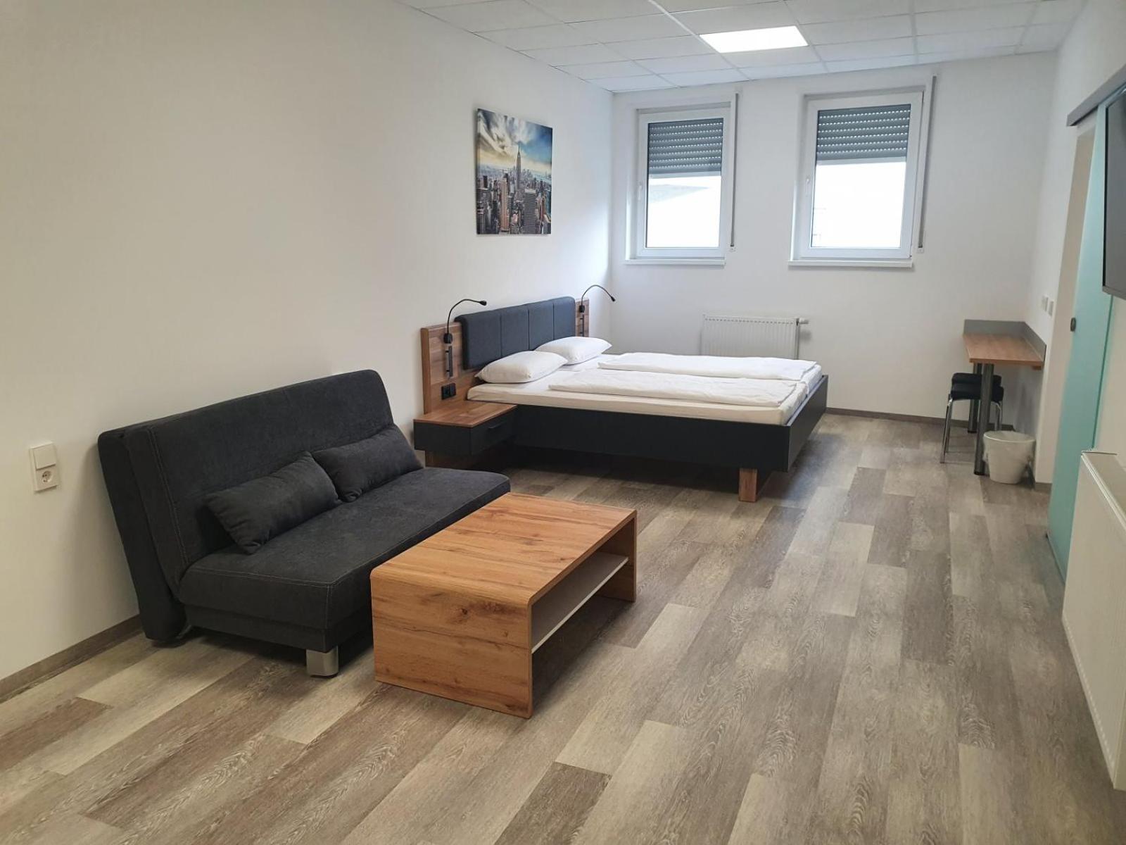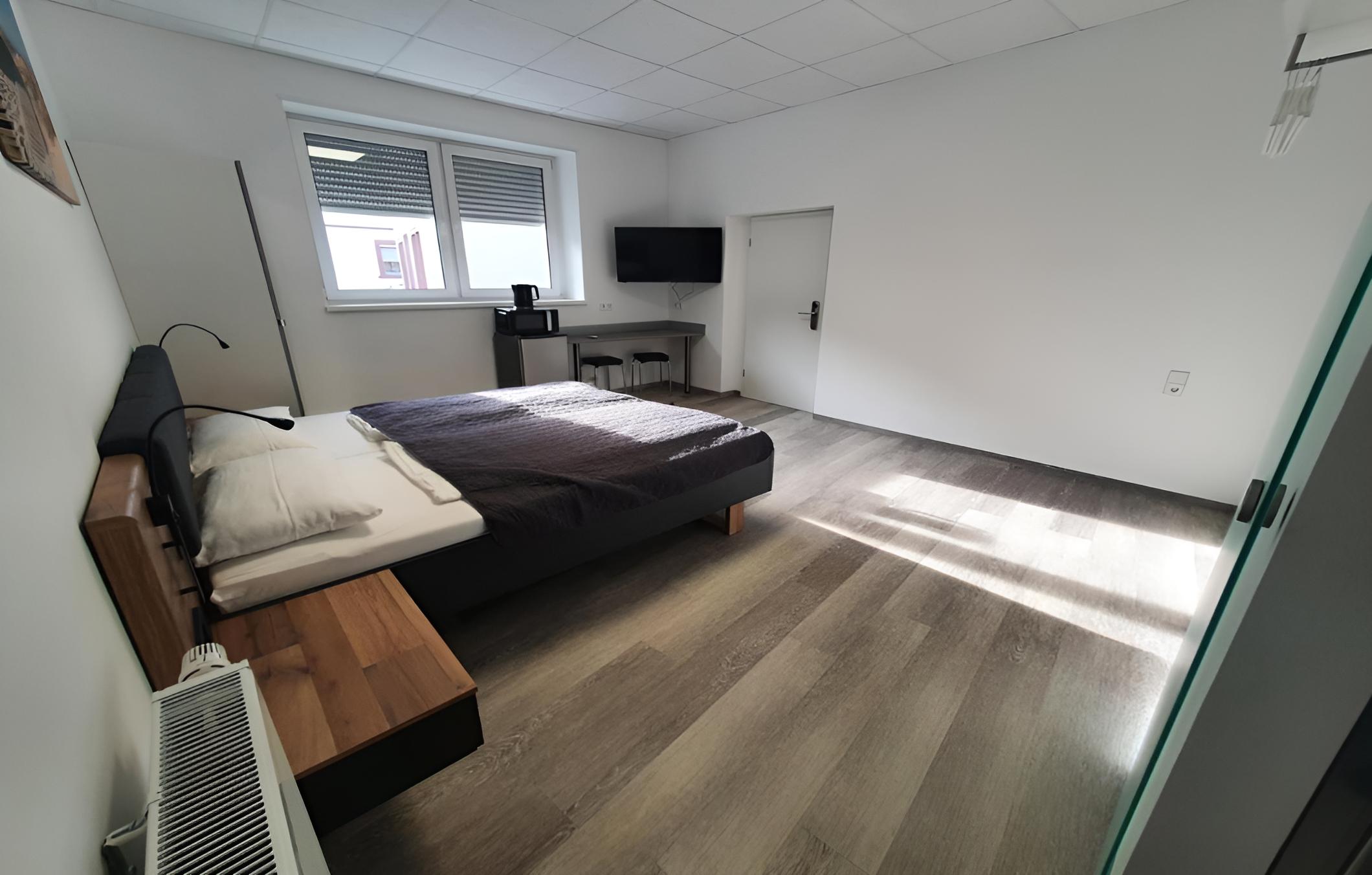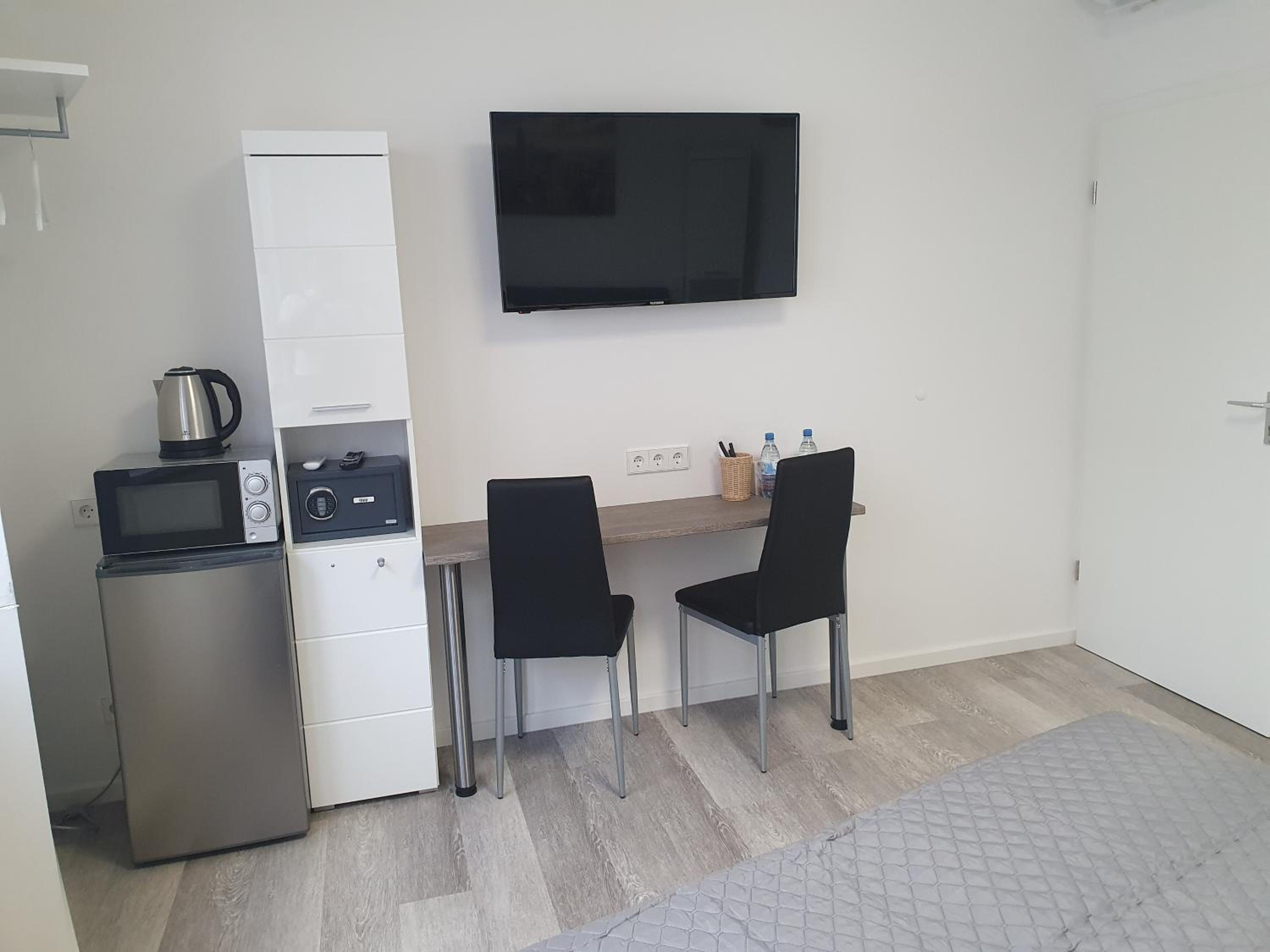 Modern Amenities - Hotel FeWo-HM offers air-conditioned rooms with essential amenities like a desk, kettle, and flat-screen TV. The rooms also come with a safety deposit box and a private bathroom, ensuring a comfortable stay for all guests.