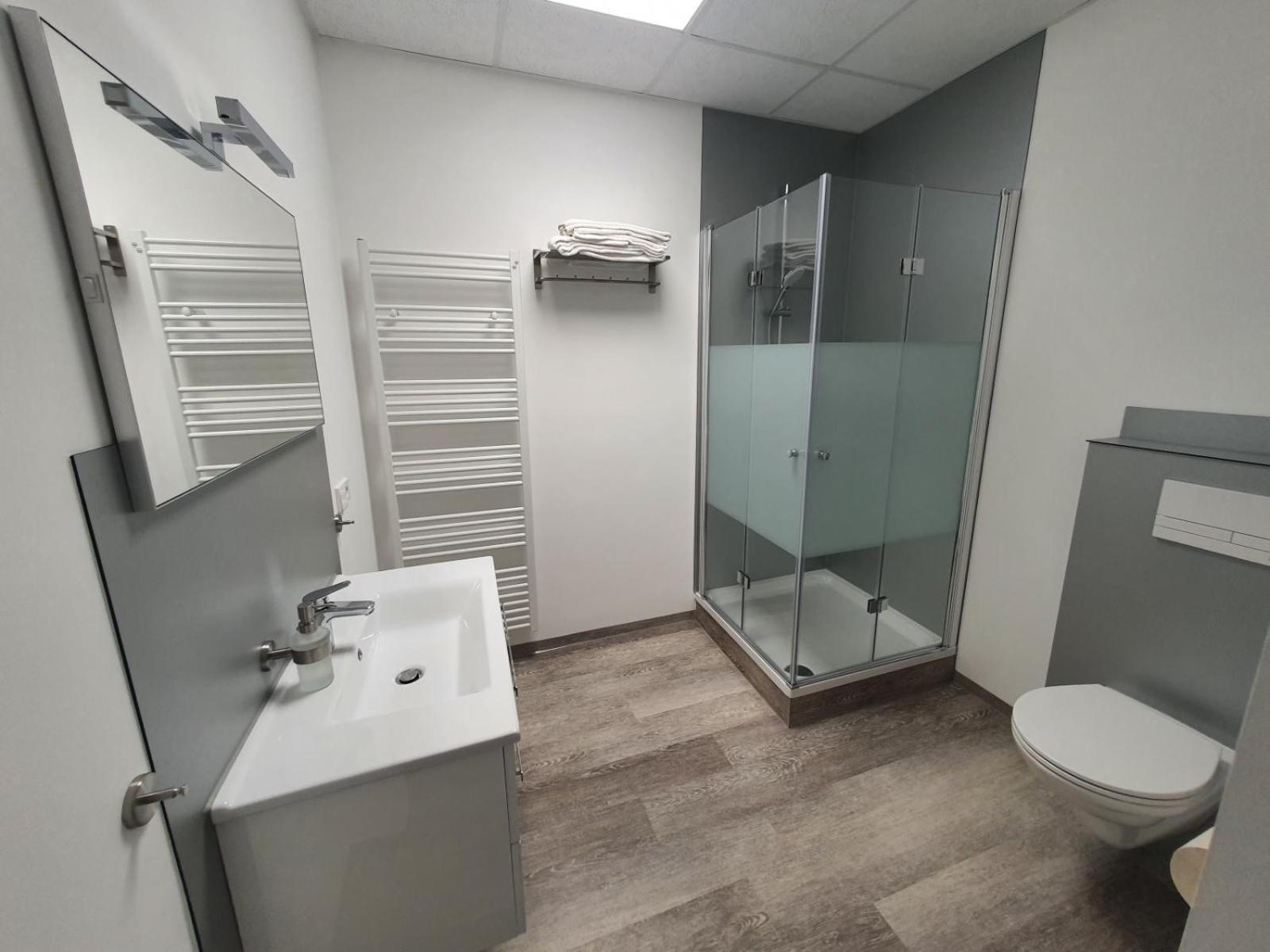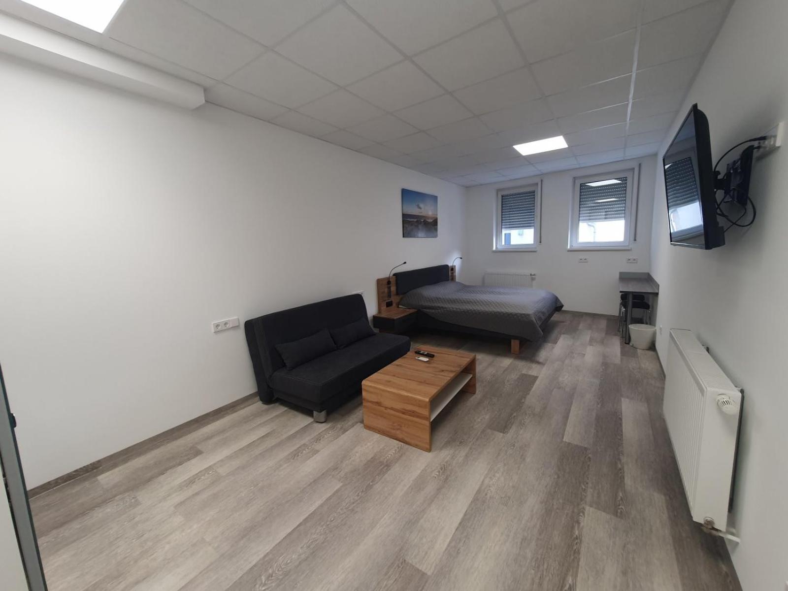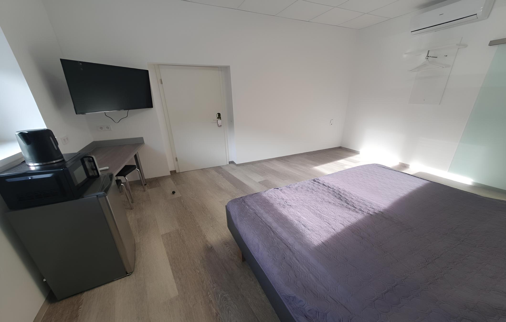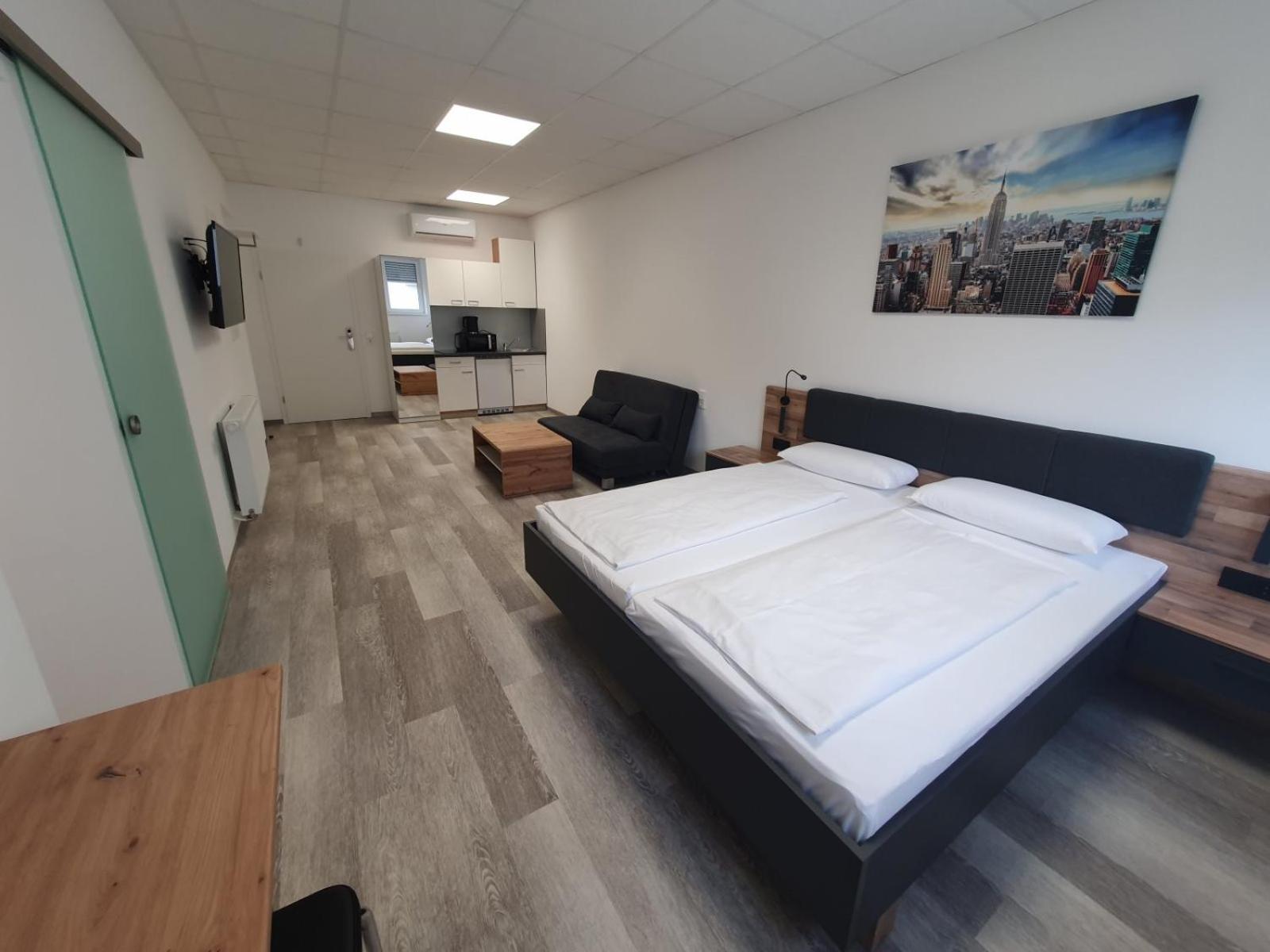Modern Amenities - Hotel FeWo-HM offers air-conditioned rooms with essential amenities like a desk, kettle, and flat-screen TV. The rooms also come with a safety deposit box and a private bathroom, ensuring a comfortable stay for all guests.