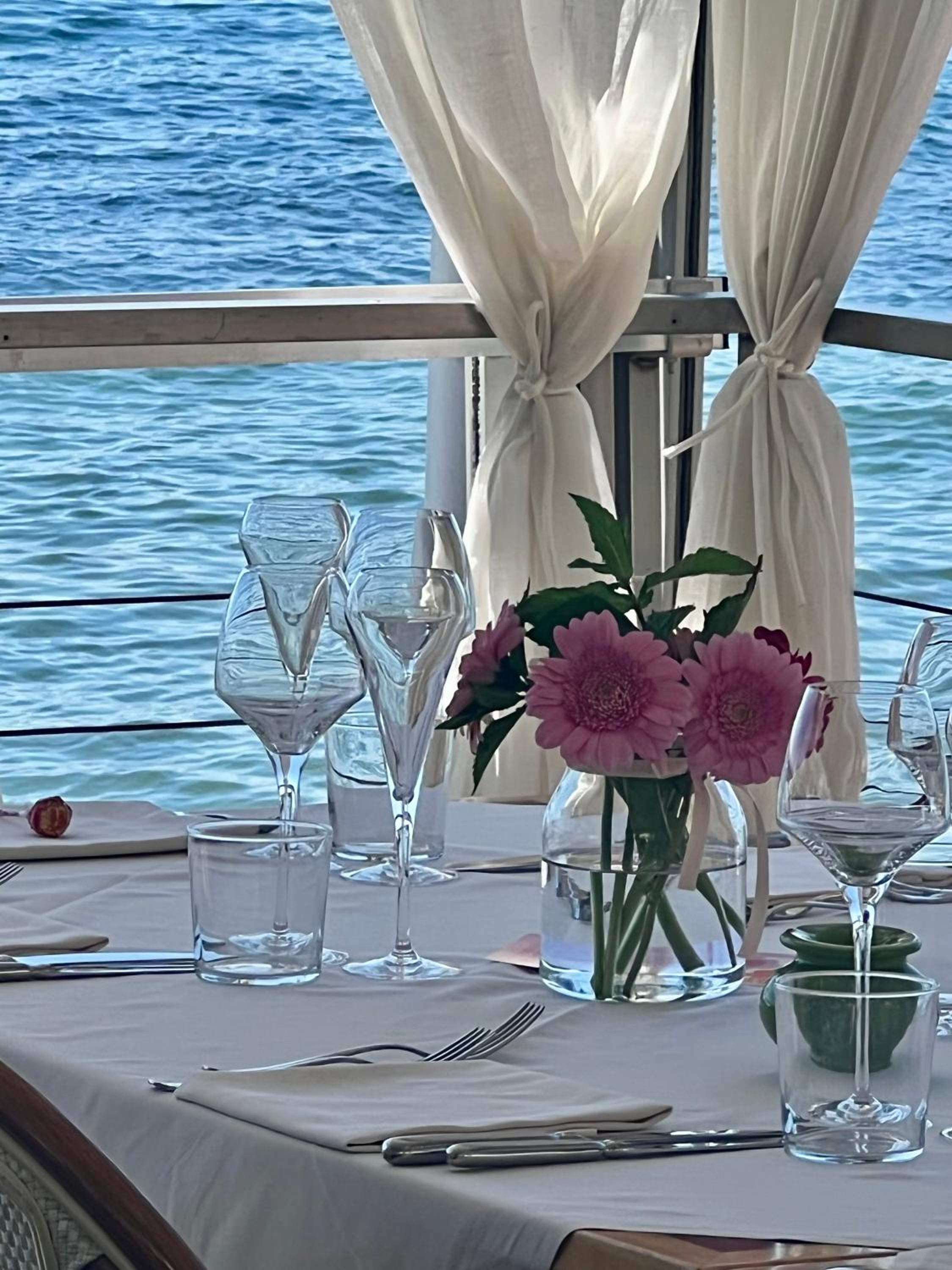 Abendessen mit wirklich gutem Fisch , guter Weisswein aus der Gegend. Das Restaurant ist in den See hinaus gebaut, haben es toll empfunden !