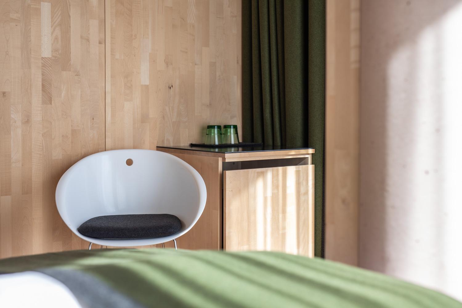 Das Zimmer hätte etwas größer sein können, um wenigstens Platz für den Koffer zu haben. So muss dessen Inhalt in das kleine Regal (Schrank gibt es nicht) gepackt werden und für die Zeit des Aufenthaltes im Auto verstaut werden, um sich frei bewegen zu können.