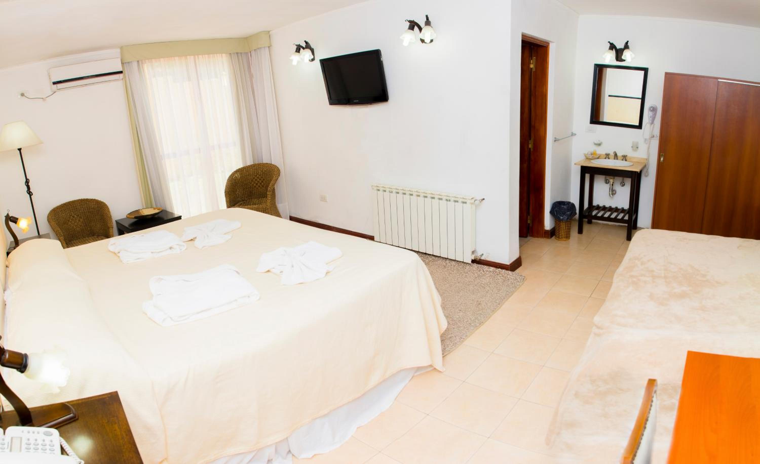 Esta muy bien ubicado, tiene salida al rio por detras para salir a caminar y a la noche estas a una cuadra del centro...Las habitaciones son grandes y las camas tambien, Es un hotel que ya tiene sus años, pero precio calidad muy bien. El personal muy amable.