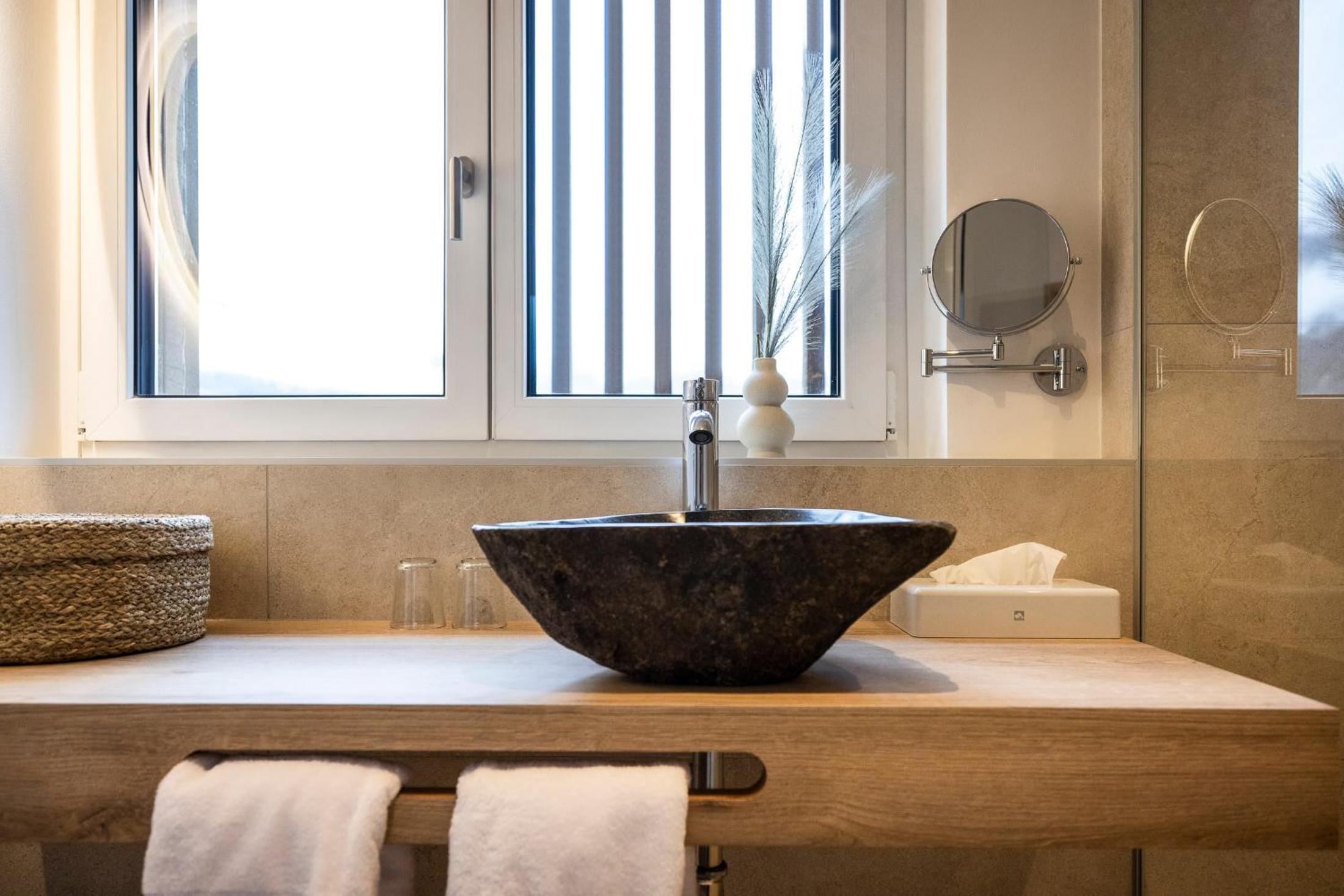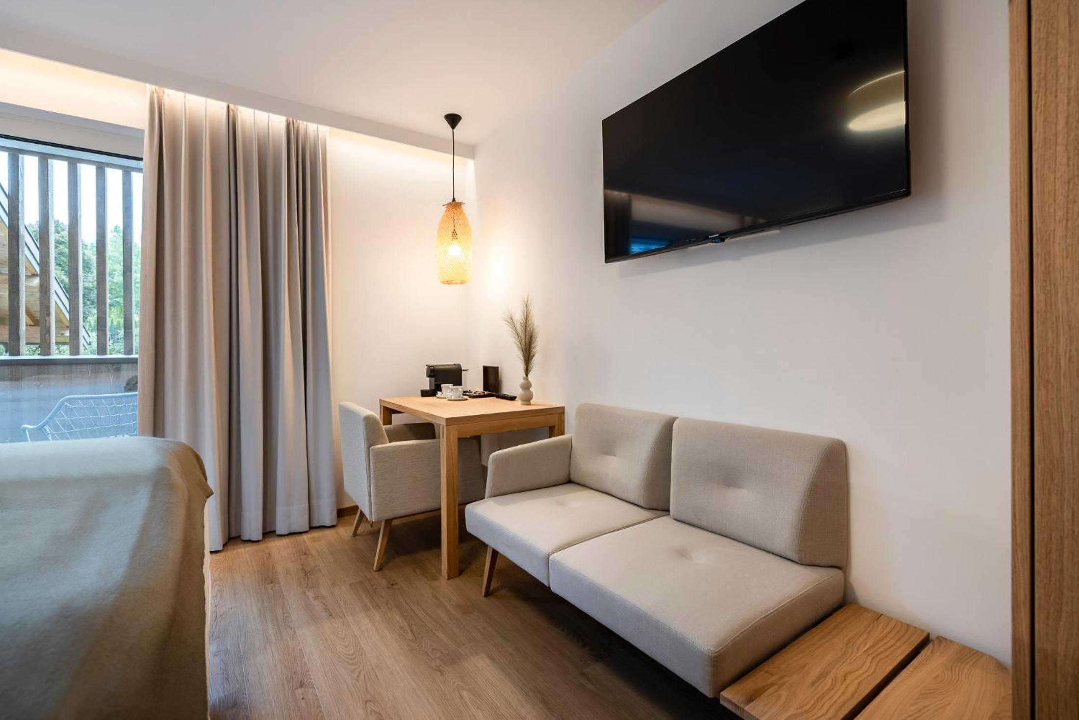 The room was not huge but well designed and a nice sized balcony facing the town was a pleasant place to sit even in damp weather. The glass fronted toilet shower room gave a little less privacy than most hotel facilities but the shower delivered a good amount of hot water. A bit more information would have made the stay perfect.