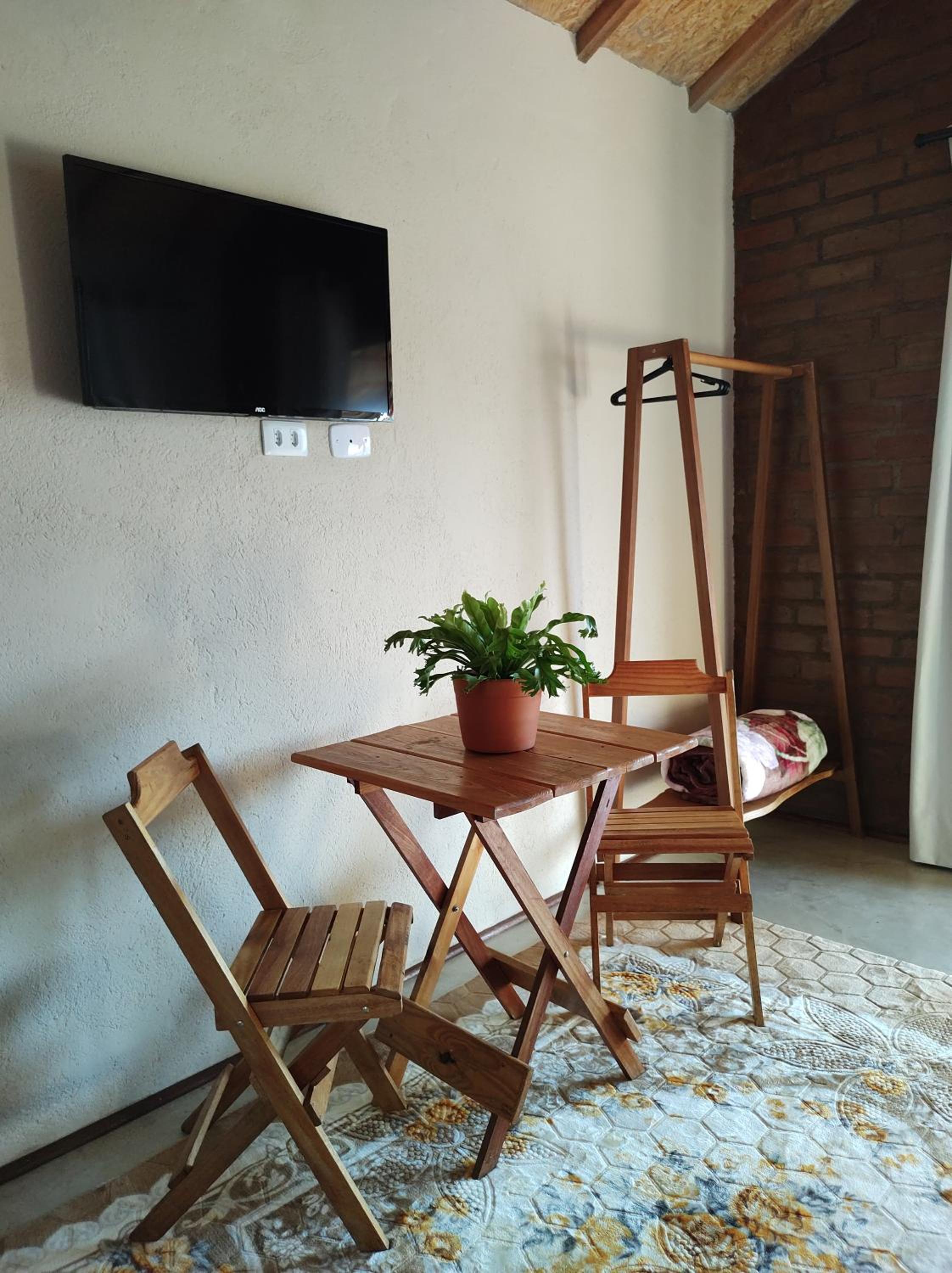 Chale muito limpo cama travesseiros e cobertores limpos e café da manhã bom