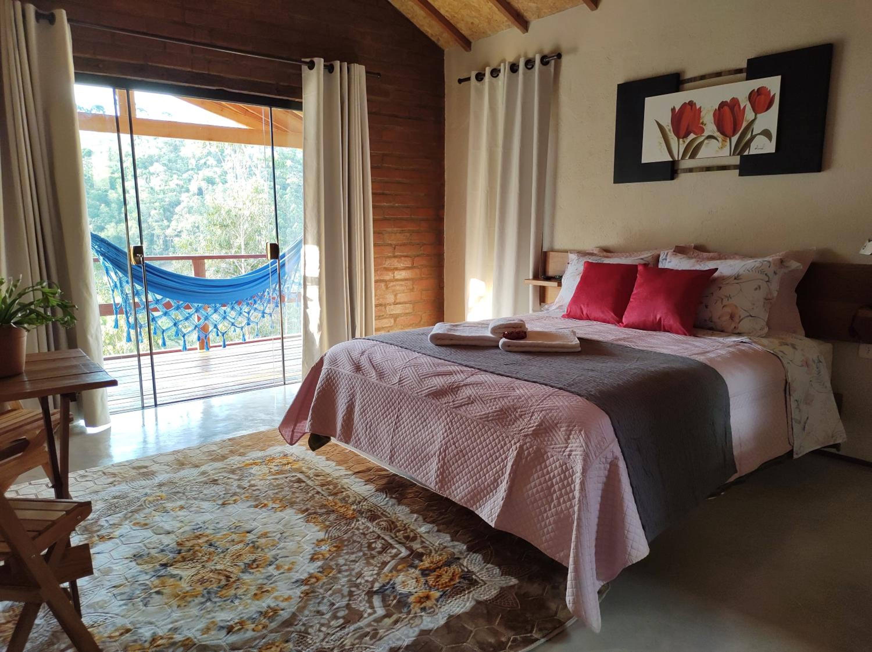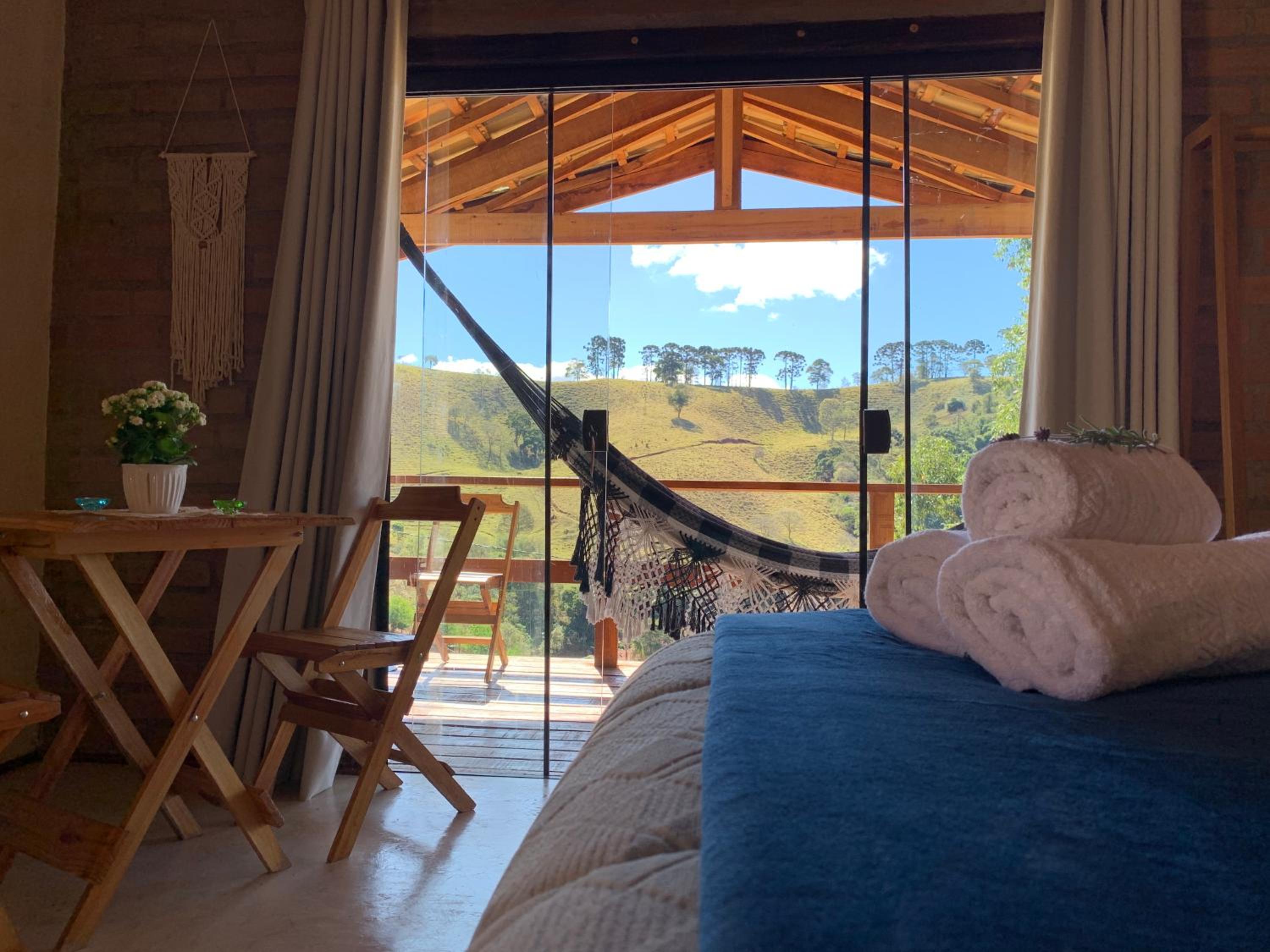 Chalé lindo e confortável, no alto da colina. Ouviamos apenas a sinfonia dos pássaros, quando as janelas e porta do chalé estavam abertas. A paisagem é realmente privilegiada, chegando até a icônica Pedra do Baú. As nossas anfitriãs, A dona Eunice e sua filha Tânia, fizeram com que nos sentissemos parte da familia, muito atenciosas e queridas.