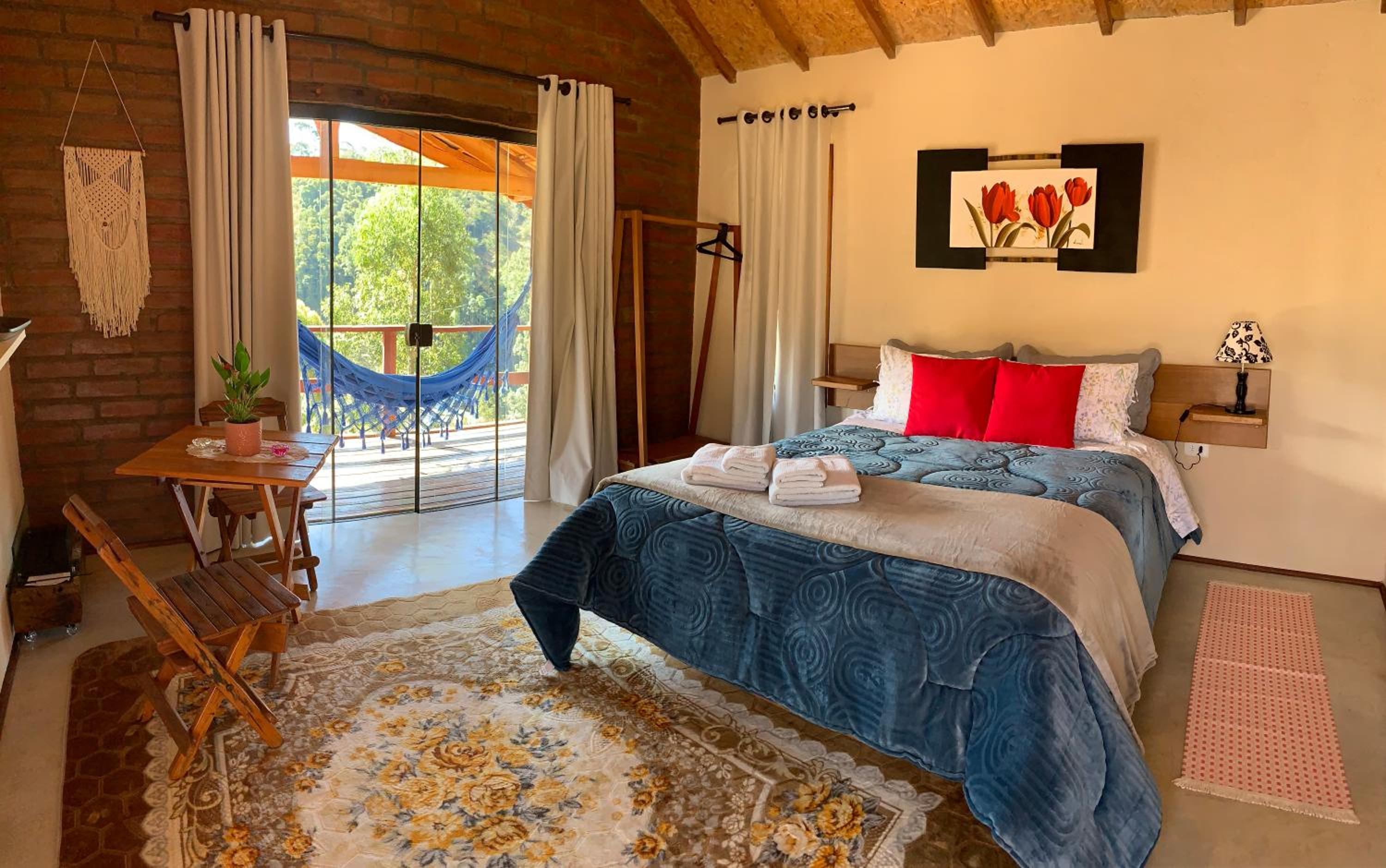 Amei tudo, bem limpinho, tudo cheiroso, a vista linda, o café maravilhoso... impecável, recomendo... chalé azul estão de parabéns..🫶