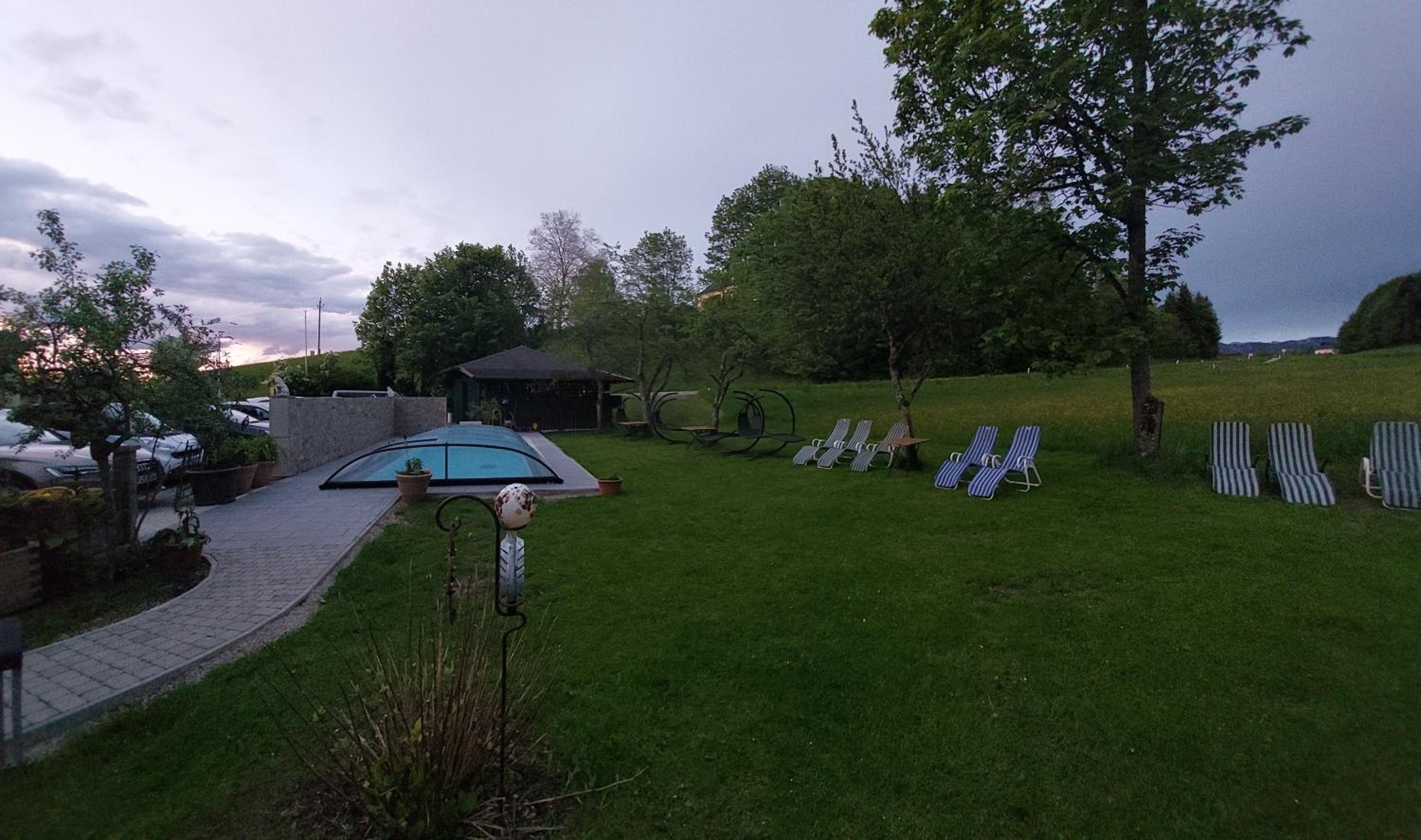 I liked that they have horses, ducks, bunnies, cats and a doggo. Love how friendly and helpful and accommodating the entire staff is. The host family is lovely! The location is beautiful, behind the mountains, so close to the lake Atersee...5min by car, Wolfgangsee is 26min by car and Mondsee also something like 28min by car. The breakfast is served buffet style and from the croissant to the omelette to the yogurt to the juice to the bread...oh the bread.....so so so good. The fruits as well, everything fresh and deliciously prepared. Very comfortable and cozy outside with the chairs and swings, me and Lucky sat there outside enjoying the nice weather and beautiful view. The beds are comfortable and the shower is ok, maybe a tiny tiny bit box would be great, but the shower pressure was good too....The bed was comfortable for me who like a bit more to softer side....was great I slept like a baby... The hotel is decorated in a very cozy and nice style. I forgot..the balcony has no light but is solved by leaving the bedroom light on...I loved everything about this hotel and I cannot wait to come again asap. Book early cus is always sold out...we got so lucky to get this hotel in high season for an affordable price.