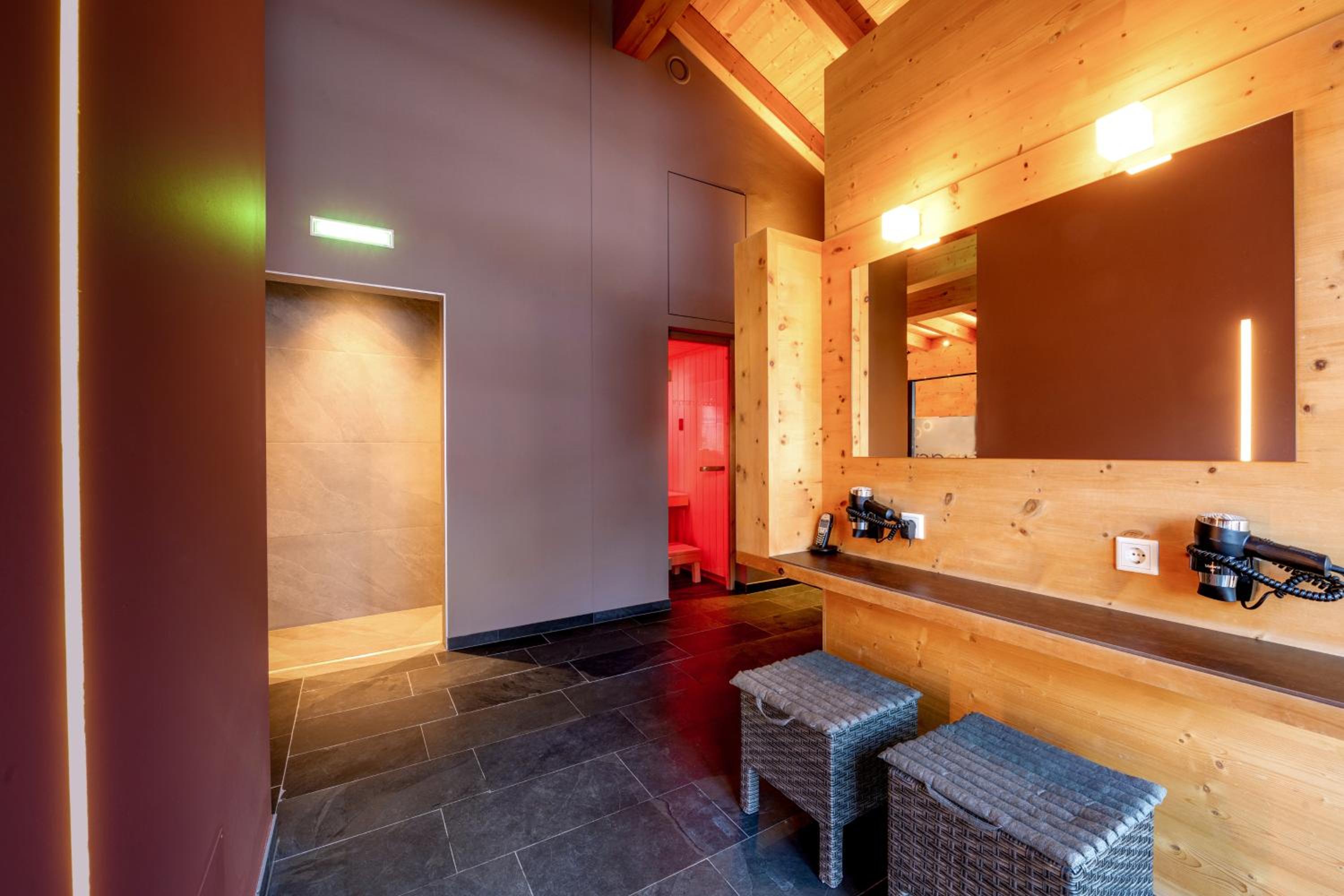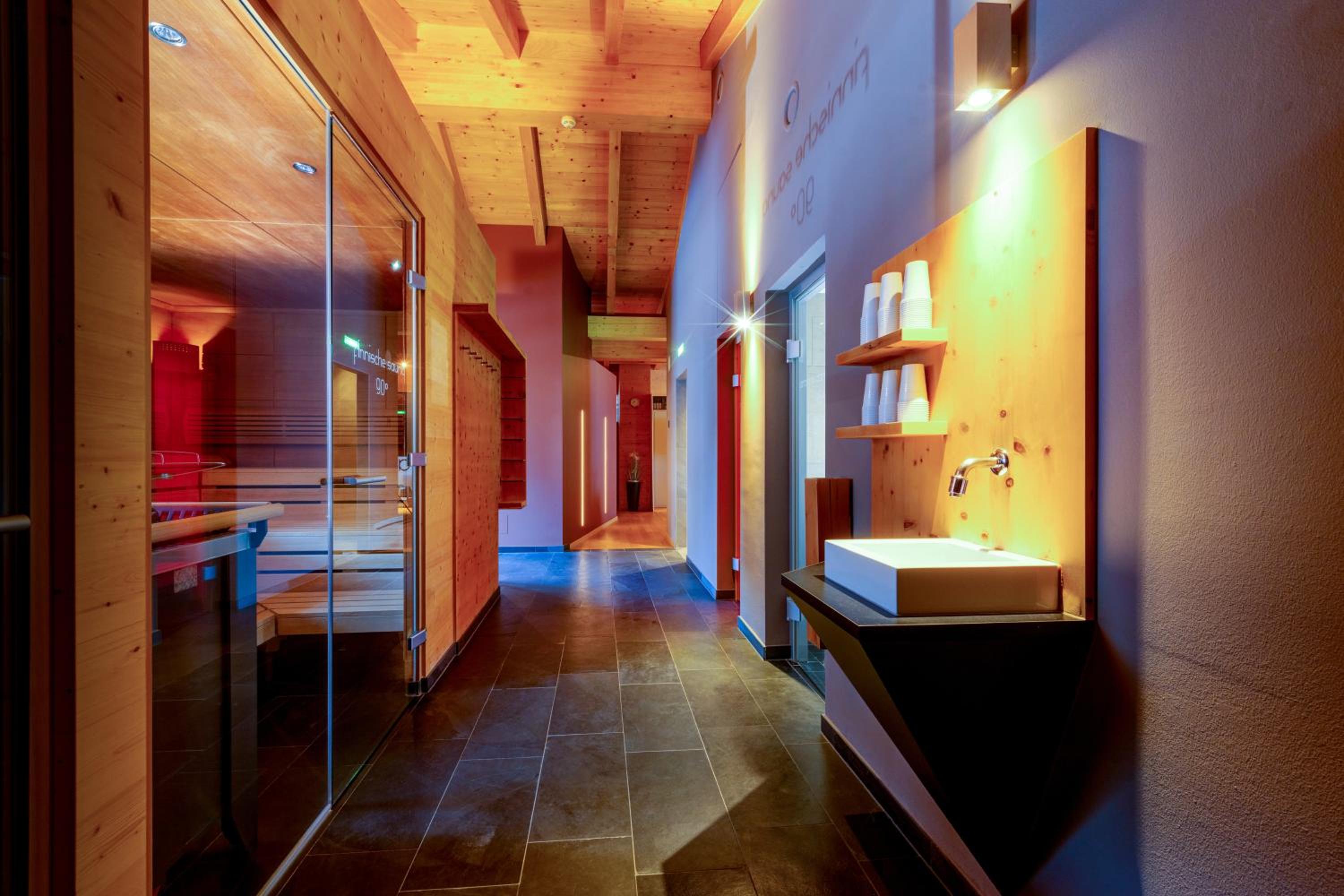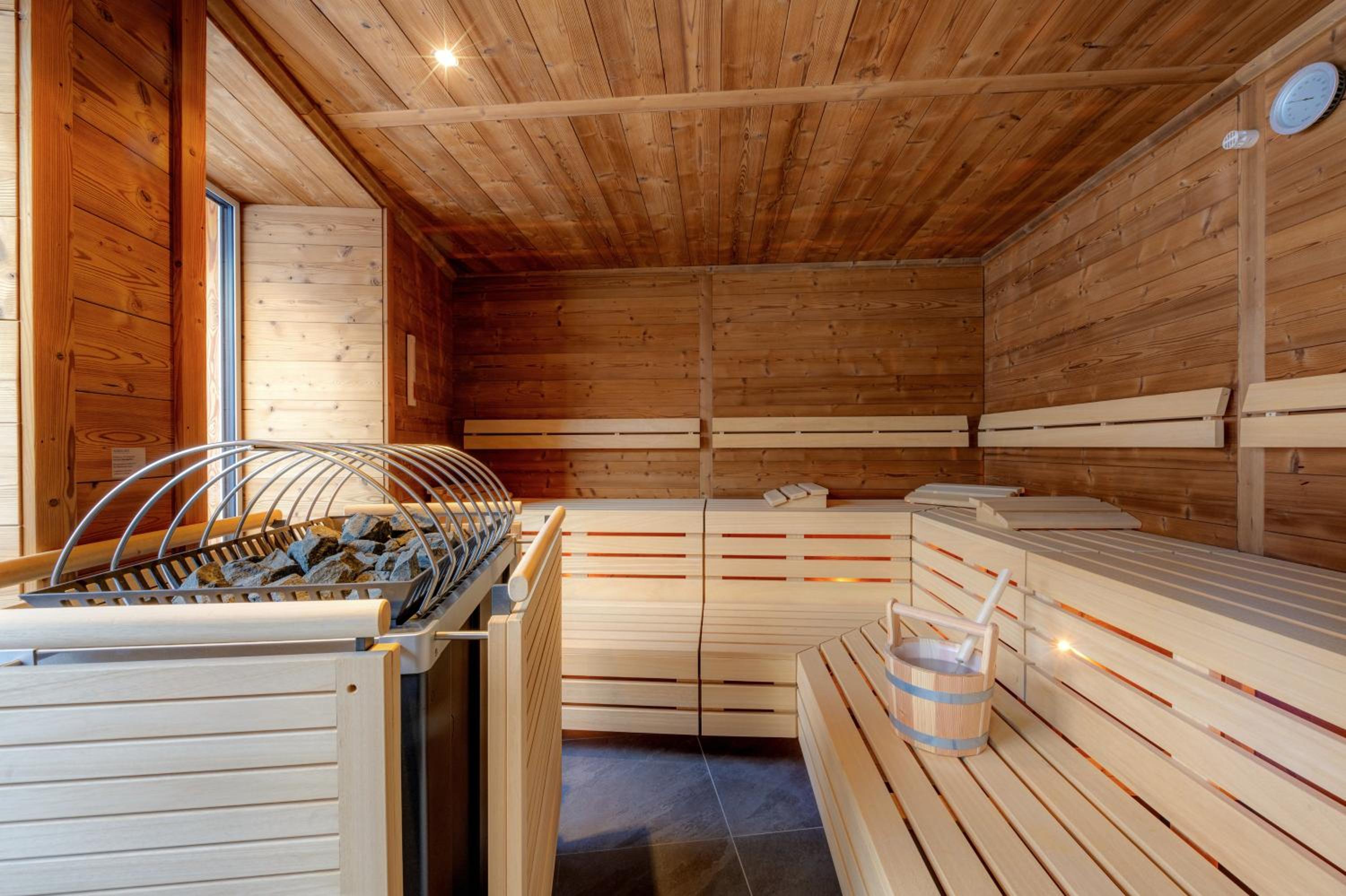 Experience half-board with a hearty breakfast, afternoon tea, and a delightful 5-course dinner. Unwind in the Finnish sauna, Bio sauna, infrared cabin, and steam bath. Don't forget to bask in the sun on the spacious roof terrace.