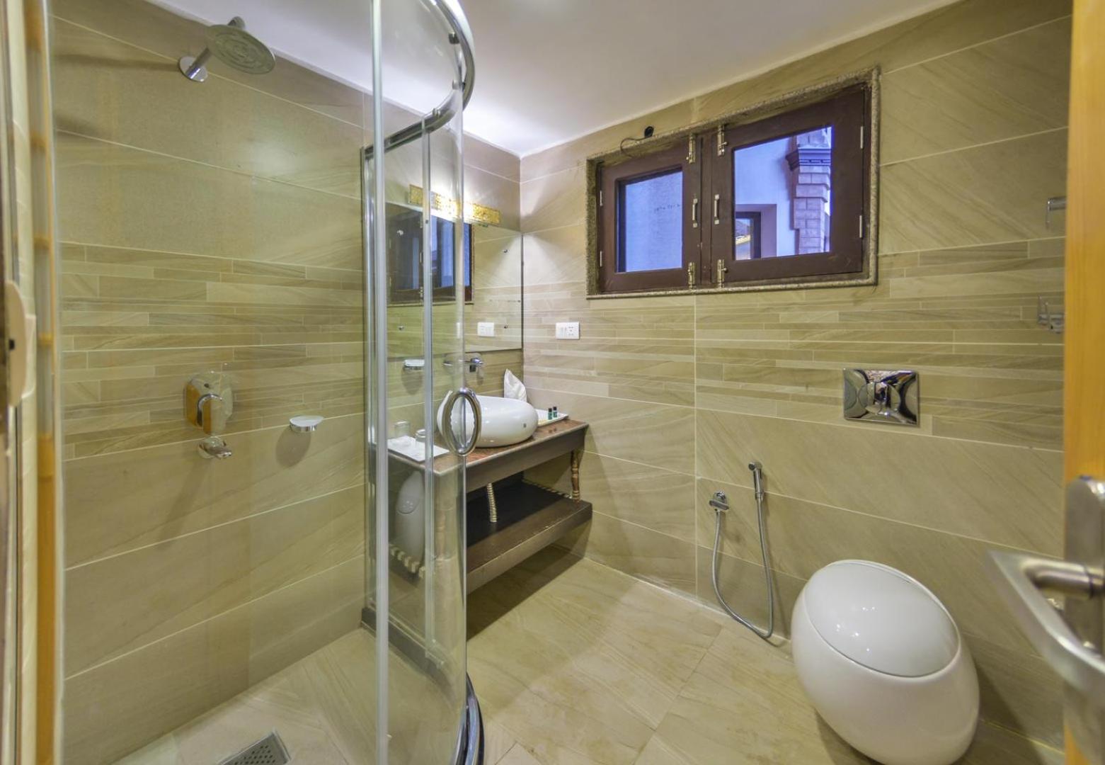 Beautiful property with amazing views of the mountains. We had booked 4 rooms and they upgraded 2 rooms. Bathroom was clean and spacious. They have restaurant. Food is a bit overpriced but very delicious. So, no complaints.